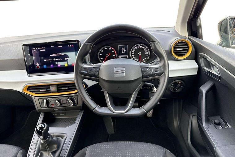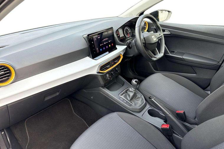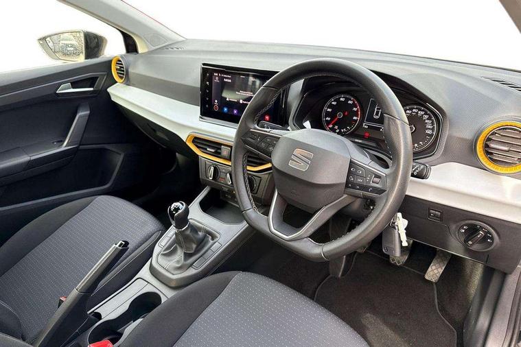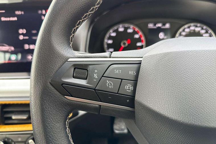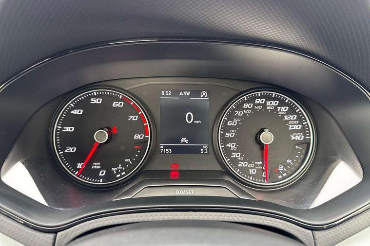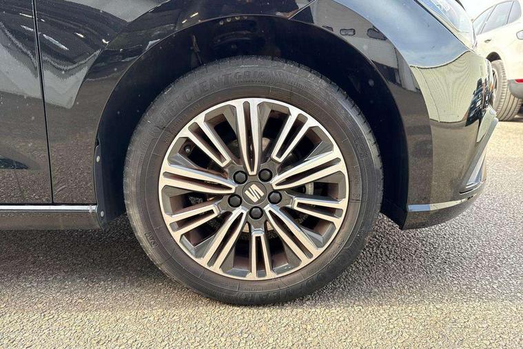 'Lights On' Reminder warning buzzer, 9.2" touchscreen navigation system with type C USB socket, Voice control and DAB/AM/FM radio, Auto start and stop system, Bluetooth audio streaming with handsfree system, Cruise control, Digital clock, E-call, Full link smartphone integration with mirror link, wireless apple carplay, Google android auto + USB Type C cable for apple and android devices, Lane assist, Low fuel warning light, Outside temperature gauge, Power Steering, Seat connect with safety, service, remote and online, SEAT logo boot release, Speed limiter, Trip computer, Comfort suspension, Auxiliary input socket, Radio/MP3 player, SD card slot, Steering wheel mounted controls, Anti theft roof antenna, Body colour bumpers, Body colour door handles, Body colour door mirrors, Dimming interior rear view mirror, ECO LED automatic headlights and LED daytime running lights, Electric front windows, Electric headlight adjustment, Electrically adjustable door mirrors, Front/rear fog lights, Halogen tailights, Rain sensor, Rear side wing doors, Rear wiper, Third brake light, 3 seat bench in 2nd row, 60/40 split folding rear seat, Air conditioning with dust and pollen filter, Chrome interior detailing and grey headlining, Cloth upholstery, Comfort seats, Front courtesy lights, Front cupholders x 2, Front reading lights, Gear shift indicator, Glovebox, Height adjustable front and rear headrests (five), Height adjustable front seats, Height/reach adjust steering wheel, Illuminated boot, Instrument lighting with brightness control, Isofix, Leather multifunction flat bottomed sports steering wheel, Passenger sunvisor, Single front passenger seat, Sunvisors with mirror and driver side card holder, 3 point seatbelts on all 3 rear seats, ABS, Active front headrests, Child locks on rear doors, Electronic stability control, Energy recovery system, Front assist forward collision warning and autonomous emergency braking, Front driver and passenger side airbags with curtain airbag and front passenger airbag deactivation, Hill hold control, Multi-Collision braking, Seat belt reminder for front and rear seats, Tiredness recognition system, Tyre pressure monitoring system, Electronic engine immobiliser, Locking wheel bolts, Remote central locking + deadlocks, 16" Design machined alloy wheels in Nuclear grey,