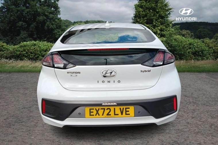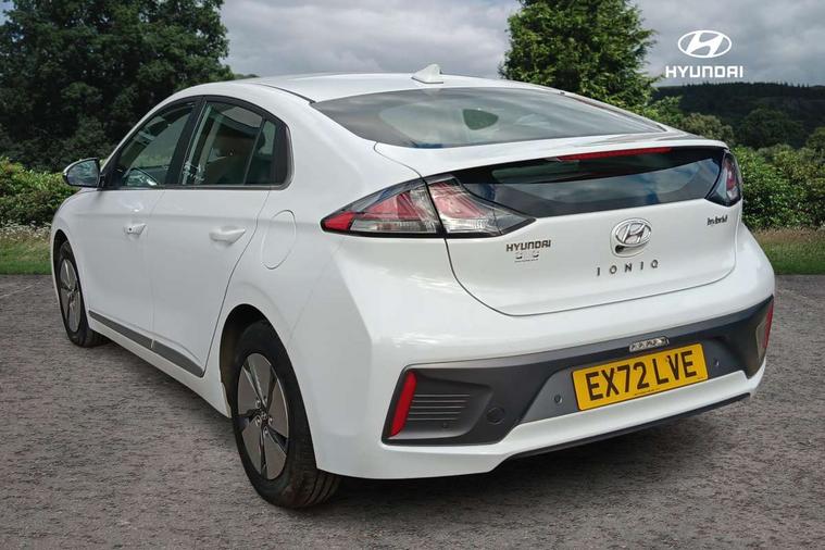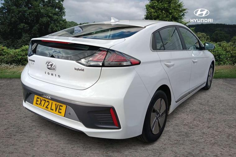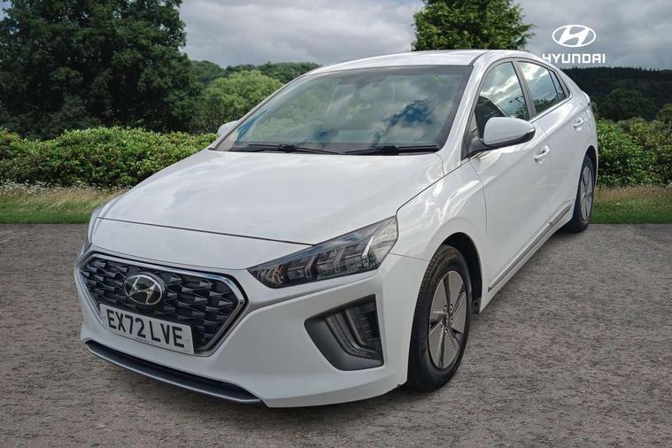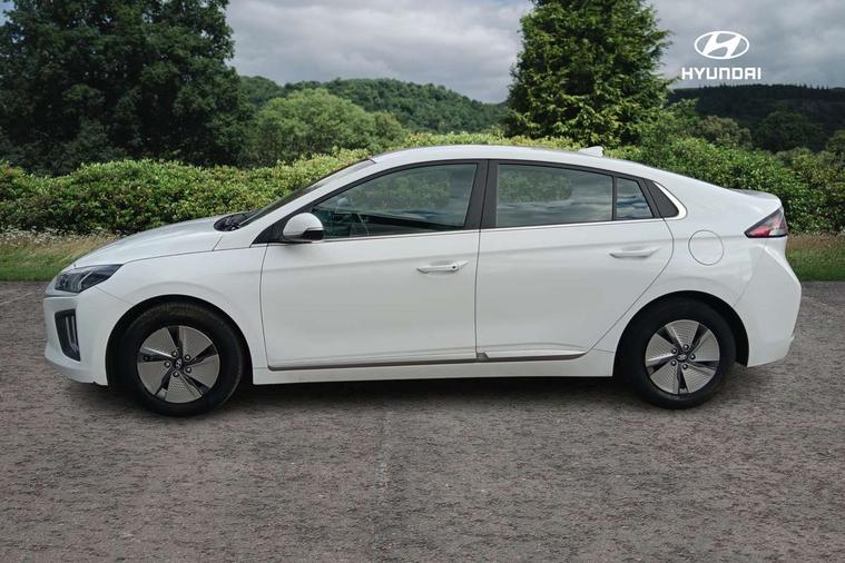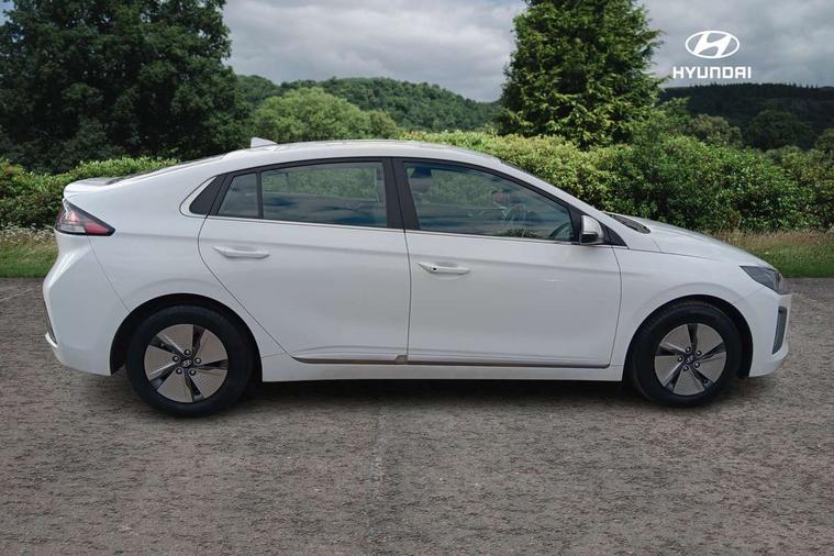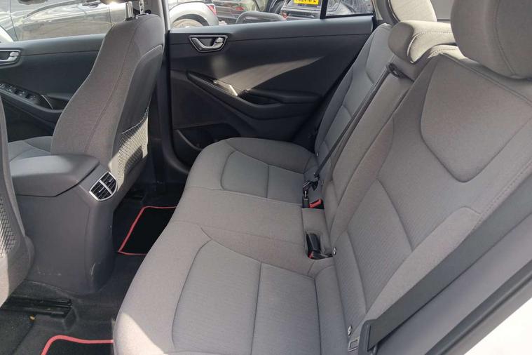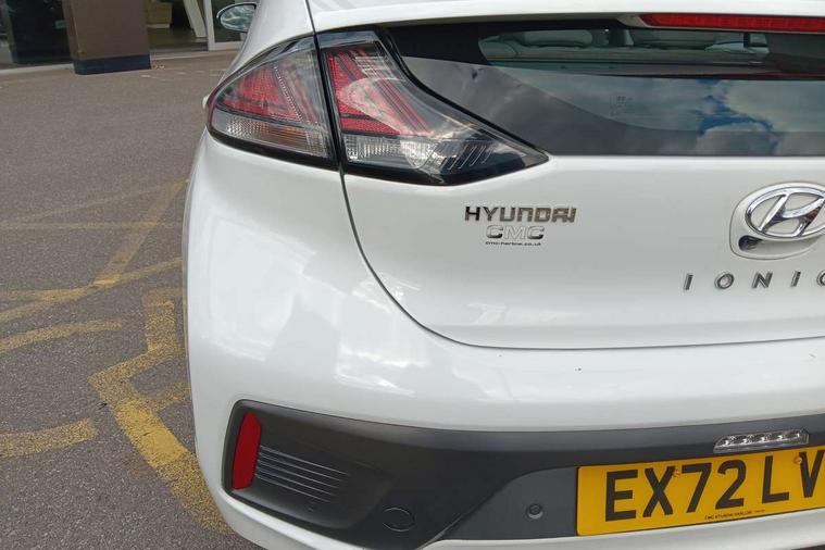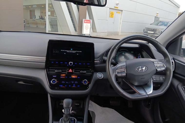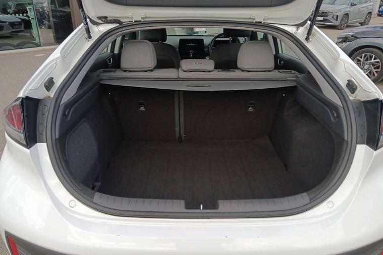 10.25" touchscreen satellite navigation includes traffic messaging channel, mapcare, live services and bluelink, Apple car play/Android Auto, Bluetooth system, Cruise control, Driver attention alert system, E-call, Eco driving assistant system (ECO DAS), Electric power steering with variable drive modes, Gear lever drive mode selector, Lane departure warning system with lane keep assist - LKAS, Parking Brake - Foot Brake, Parking system with rear camera and guidance system, Rear parking sensor, Rear view monitor, Roadside assistance, Supervision cluster with 7" high resolution TFT LCD, Voice recognition, Windscreen washer fluid sensor and warning indicator, Wireless phone charging pad, DAB Digital radio, Infinity sound system includes 1 centre, 2 tweeters, 2 front, 2 rear and 1 ext amp, Radio data system, Steering wheel audio, phone and cruise controls, USB and aux connection in front, Active air flap radiator grille, Auto dimming rear view mirror, Automatic headlights with dusk sensor, Body colour bumpers, Body colour door handles with chrome inserts, Body colour door mirrors, Bodyside mouldings, Chrome door scuff with ioniq logo, Chrome finish window surround, Chrome radiator grille, Door mirror puddle lights, Electric adjustable door mirrors, Electric front windows - anti trap + one touch, Electric heated door mirrors, Heated rear windscreen, High beam assist, LED daytime running lights, LED Headlights, LED indicators in door mirrors, LED rear fog light, Positioning Lights - LED, Power folding door mirrors, Rain sensor, Rear electric windows, Rear LED lights, Rear roof spoiler with integrated LED brake light, Rear side wing doors, Rear wiper, Solar glass with windscreen shade band, Tinted windows, Two tone rear bumper, Variable front intermittent wipers, 12V power outlets, 3 rear seats, 60/40 split folding rear seat, Centre console storage, Centre interior light, Chrome interior door handles, Cloth upholstery, Driver seat height adjust, Driver's electric adjustable lumbar support, Driver/passenger sunvisors with illuminated vanity mirrors, Dual zone climate control, Front centre armrest with storage compartment, Front cupholder, Front head restraints with vertical and horizontal adjustment, Front seat and rear pockets, Heated front seats, Heated steering wheel, Illuminated luggage compartment, Interior mood lighting, Leather wrapped steering wheel, Luggage net, Manual height adjustable front passenger seat, Map and reading lights, Paddle shifter, Rear centre console with air vents, Single front passenger seat, Sunglasses holder, USB - driver arm rest (charging only), Vertical adjustment rear head restraints, 3x3 point rear seatbelts, Airbags - front, front side, curtain and drivers knee airbags, Anti-lock brake system (ABS), Autonomous emergency braking, Electronic stability control, Front passenger airbag deactivation switch, Hill start assist control (HAC), Manual child lock in rear doors, Regenerative braking system, Traction control, Tyre pressure monitoring system with individual tyre pressure display, Deadlocks, Immobiliser, Keyless smart entry with push button start, Remote central locking, 15" Design B alloy wheels, Tyre repair kit,