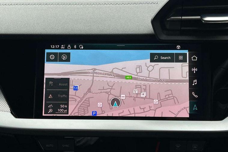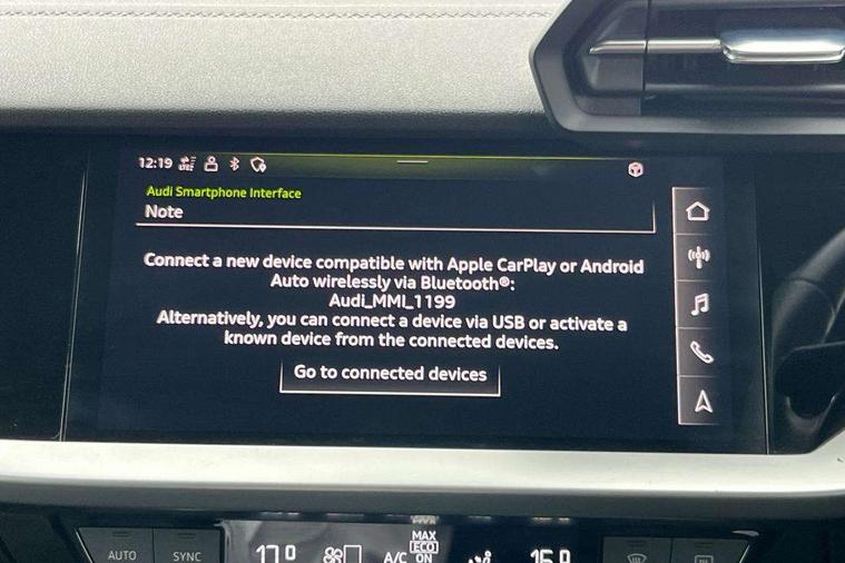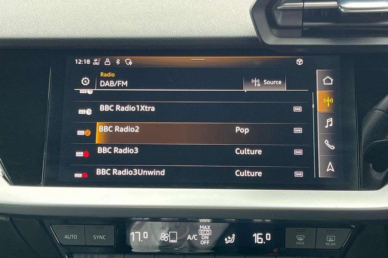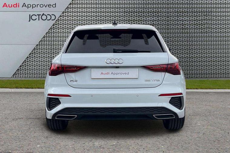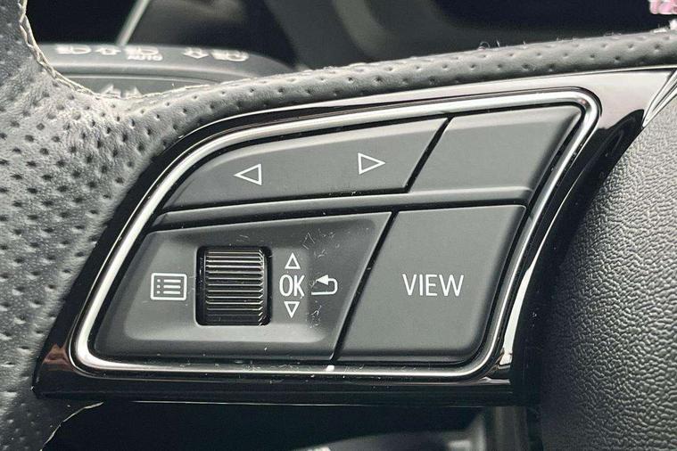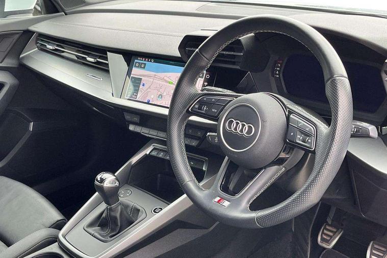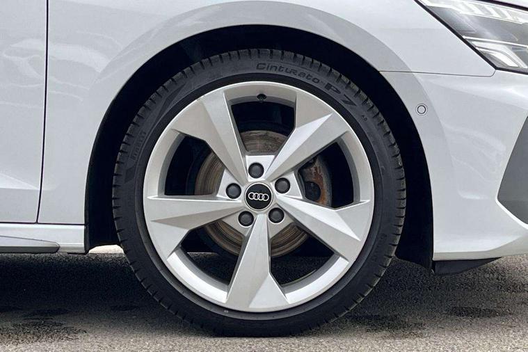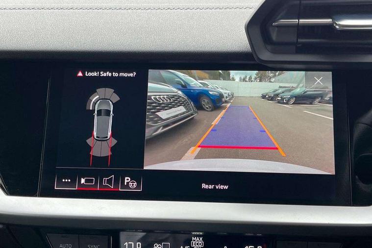 Audi connect emergency call and service, Audi drive select (Auto, Comfort, Dynamic, Efficiency and Individual), Audi smartphone interface, Audi Virtual Cockpit - 10.25" digital and colour instrument cluster, Automatic start/stop system with recuperation, Bluetooth interface, Collision avoidance assistant, Electromechanical power speed sensitive steering, Lane departure warning system, MMI Navigation Plus with high resolution 10.1" colour touch screen display, Service indicator, Trip computer, Voice control system with natural language interaction, 2xUSB-C connection with data and charging functions, 6 passive loudspeakers, DAB Digital radio, 3rd brake light, Acoustic glass windscreen, Aluminium window trim, Auto dimming frameless rear view mirror, Electrically adjustable/heated/folding/auto dimming door mirrors with integrated LED indications + kerb view function for passenger side, Front electric windows, Illuminated aluminium inserts front door sills with S logo, LED daytime running lights, LED headlights with LED rear lights and dynamic rear indicators, Light and rain sensors, Privacy glass - dark tinted rear window, rear door and side windows, Rear electric windows, Rear side air outlets in grained matt black, Rear side wing doors, Rear wiper, S line bumpers, S roof spoiler, 12V socket and storage compartment in front centre console, 3 seat bench in 2nd row, 40/20/40 split folding rear seat bench with cupholder, Black cloth headlining, Dual zone electronic climate control, Front and rear centre armrest in leather, Front and rear headrests, Front/rear floor mats, Height and reach adjustable steering wheel, Illuminated vanity mirror, Interior lighting - glove compartment light and right hand side, Luggage compartment floor covering, Manual boot compartment lid, Manually adjustable front seats, Seat side bolsters, Single front passenger seat, Stainless steel pedals and front footrest in black, Twin leather upholstery with front sports seats S embossed logo, Aluminium interior elements pack - A3 Sportback, S line styling pack - A3 Sportback, 3x3 point rear seat belts, Driver and front passenger airbag with passenger airbag deactivation, Electronic Stabilisation Control (ESC) including ABS, ASR and EDL, First aid kit with warning triangle and 2 safety vests, Front side airbags with head airbags and interaction airbag, Pre-sense front with pedestrian and cyclist detection, Seatbelt monitoring, Tyre pressure loss indicator, Anti theft alarm, Anti-theft wheel bolts, Immobiliser, Manual child locks, Remote control central locking, Accent surfaces in the dashboard and centre console in platinum grey silk effect paint finish, Dark spectrum aluminium inlays,
