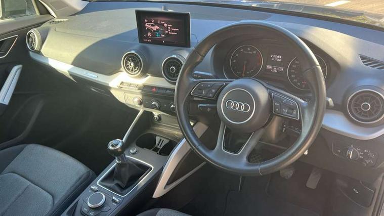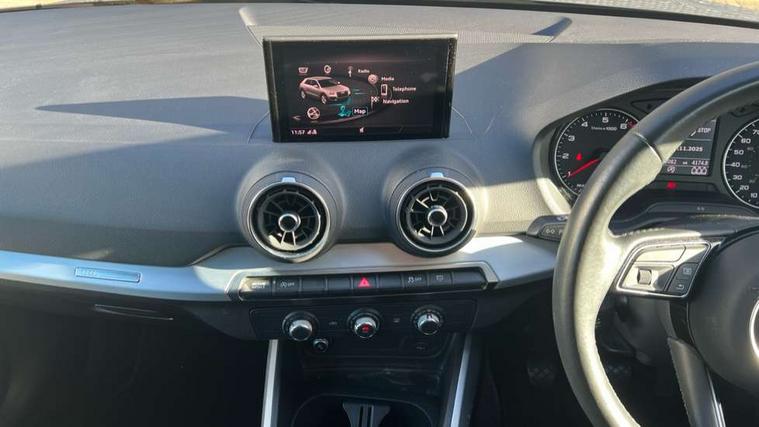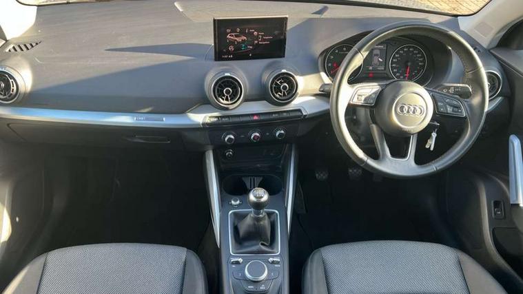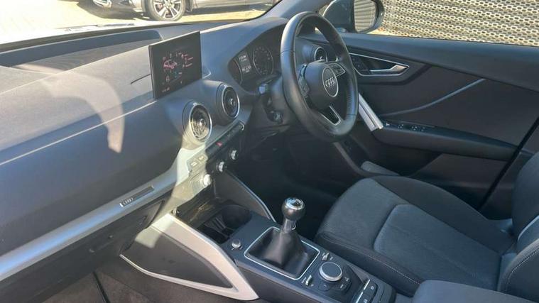 Audi drive select, Audi smartphone interface, Automatic start/stop system with recuperation, Bluetooth interface includes bluetooth audio streaming, Cruise control, MMI - Multi Media Interface control system, MMI SD card integrated nav with 3D map display, dynamic route guidance with TMC, MMI search, natural voice recognition and myAudi special destinations, Power operated tailgate, Progressive steering, Service interval indicator, Dynamic suspension, 2 x SDXC card reader, Audi music interface - apple iPod, apple iPhone, USB storage media, compatible MP3 players, 2 x USB charging points and 1 x Aux-in, CD Drive, DAB digital radio and AM/FM radio, MMI radio plus with 7" colour MMI screen and MMI controller, Air inlet in manhattan grey metallic, Black window trims, Body colour door mirrors, Chrome exhaust tailpipe, Electrically adjustable and heated door mirrors with integrated LED side indicators, Front and rear electric windows, Front underbody guard and rear diffuser trim in selenite silver, Front windscreen with grey tinted sunband, Halogen headlights including headlight range adjustment, High gloss black radiator grille, Interior mirror, LED indicator lights, Manual folding door mirrors, Rain and light sensors, Rear wiper, Side skirts in manhattan grey, Wheel arch trims in manhattan grey, 60/40 split folding rear seat bench, Door sill trims with aluminium inlay, Electronically operated child locks, Front centre armrest, Front headrests, Front sports seats, Front/rear floor mats, Height/reach adjust steering wheel, ISOFIX child seat mounting for front passenger with airbag deactivation and outer rear seat including top tether attachment point for outer rear seats, Manual seat adjustment including seat height adjustment for front seats, Storage compartments - Glovebox, cupholder compartment in centre console, storage compartment in rear centre console, front and rear door pockets, Three rear headrests, Titanium grey cloth headlining, Non smoking pack - Q2, 3x3 point rear seatbelts, 6 airbags - Front, curtain and front side airbags, Electromechanical parking brake, Electronic stabilisation control including ABS, ASR and EDL, Extended and proactive pedestrian protection, Hill hold assist, Multi collision brake assist, Pre-sense front with pedestrian recognition, Seatbelt monitoring, Tyre pressure warning light, Warning triangle and first aid kit, Anti theft alarm, Anti theft wheel bolts, Central locking system with remote control key, Aluminium interior element,