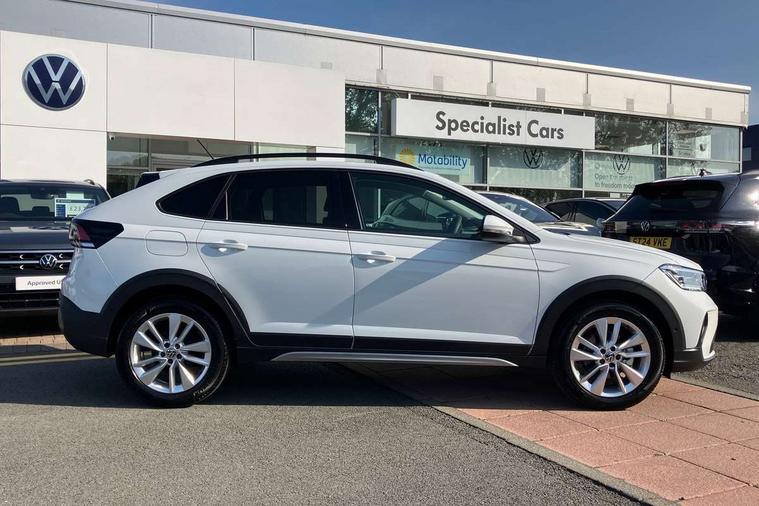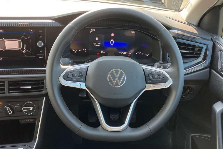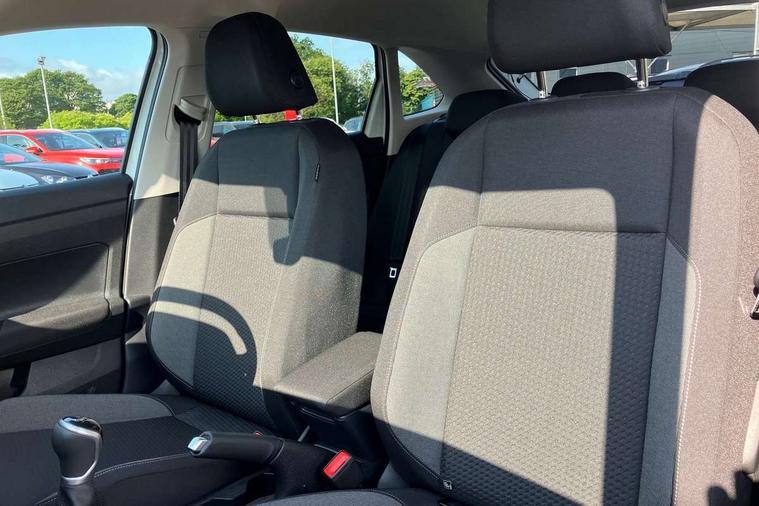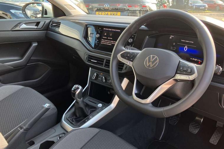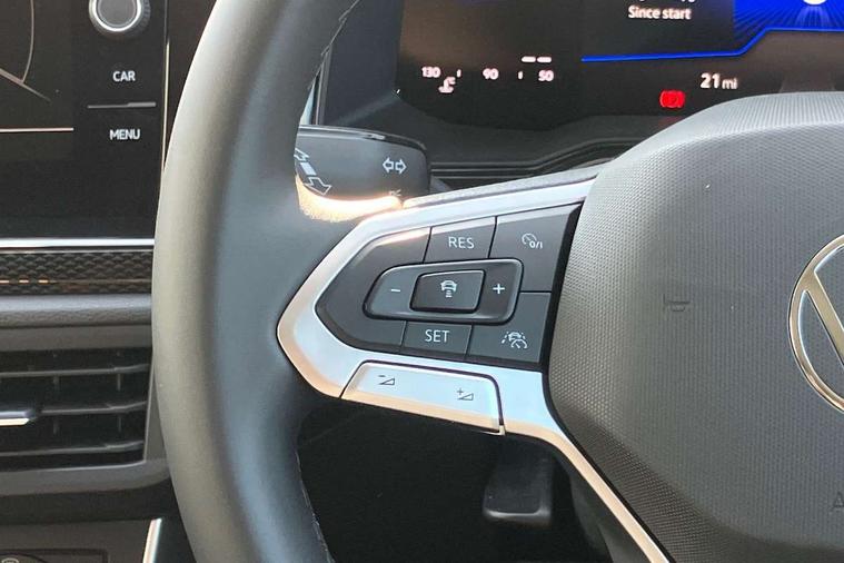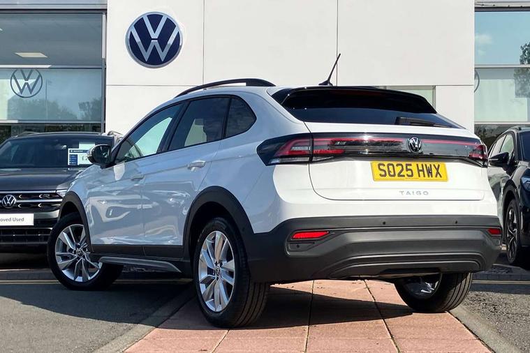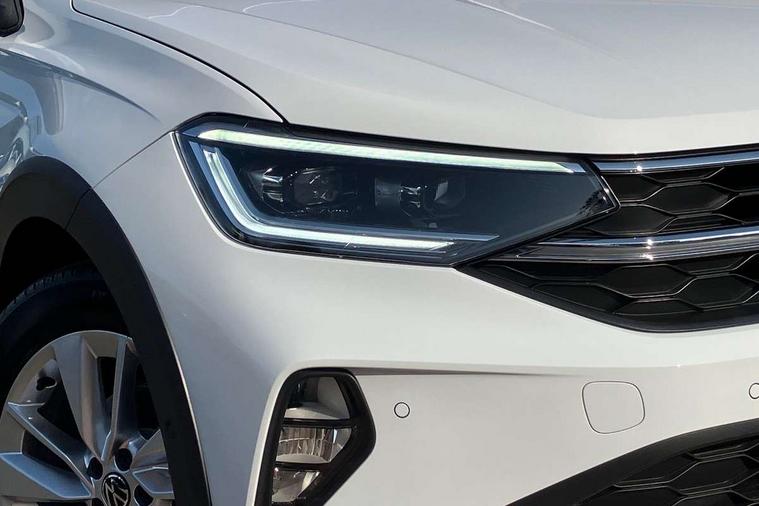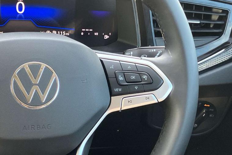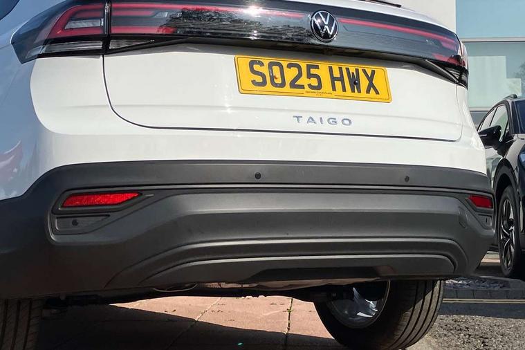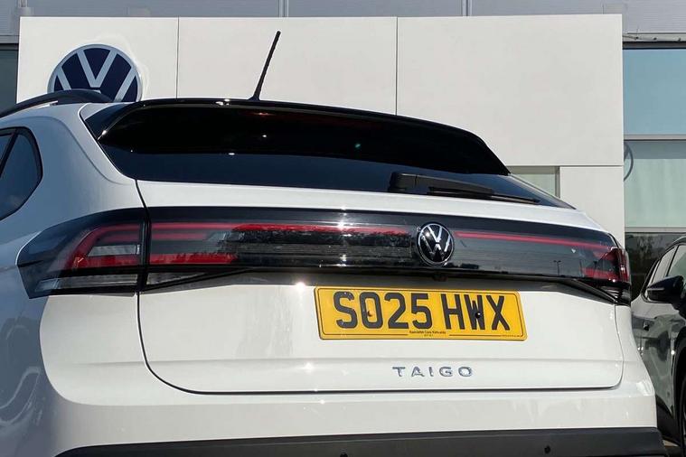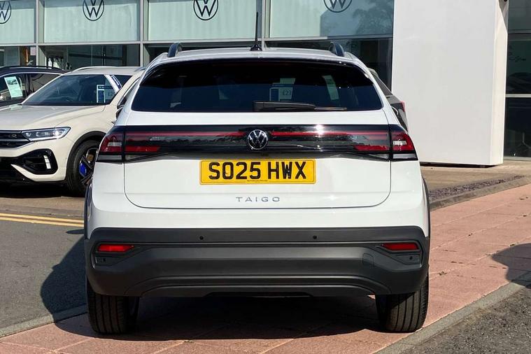 8" Digital cockpit basic display, Advanced driver attention and drowsiness monitor, Dynamic road sign display, e-Call (emergency call), Power Steering, Predictive adaptive cruise control, Rear view camera, Travel assist including emergency assist, Washer fluid level indicator, Wireless Charging including Bluetooth, Start-stop system with battery regeneration (recuperation - energy recovery during braking), Digital radio reception (DAB+), WeConnect plus, Ambient lighting with logo projection, Aspherical driver's exterior mirror, Body coloured bumpers, Body coloured exterior mirror housings and door handles, Electric windows, External USB type C socket and charging sockets, Heat insulating glass windscreen, LED rear combination lamp, LED third brake light, Left convex exterior mirror, Power folding adjustable/heated exterior mirrors and front passenger exterior mirror lowering function, Rear fog light on one side, reversing light on both sides, Rear side wing doors, Rear wash/wipe with intermittent wipe setting, Side windows in heat-insulating glass, from B-pillar and rear window dark tinted, 'Slash/ Austin' Cloth upholstery, 12V socket in centre console, 2 front reading lights, 3 rear head restraints, 3 seat bench in 2nd row, Black carpets, Ceramique headliner, Child seat anchor for child seat system i-Size, 2x top tether and child seat anchor in front on front passenger side, Door and side trim panels in titan black, Driver and front passenger seat height adjustment, Front centre armrest, Handbrake lever handle in leather, Height and reach adjustable steering wheel, Leather trimmed gear knob, Leather wrapped multifunction steering wheel, Luggage compartment floor, Luggage compartment light, Lumbar support for driver's and front passengers seat, Seat covers in titanium black, Single front passenger seat, Split folding backrest with centre armrest and unsplit rear seat bench, Storage compartment under front seats, Sun visors with illuminated vanity mirrors, Titanium black instrument panel, Chrome Package - Taigo, Drivers assistance package - Taigo, Light and sight pack - Taigo, 2 x 3-point seatbelts/outer rear seats with ECE label, 3-point seat belts in front with pretensioner and height adjustment, 3-point seatbelt for centre rear seat, Driver and front passenger airbag with front passenger airbag deactivation, Driver and front passenger safety-optimised head restraints, Electronic stability control, Extended and predictive pedestrian/ cyclist protection, Front and rear disc brakes, Front curtain and side airbags with center airbag, Hill start assist, Manual rear child locks, Single tone horn, Tyre pressure loss indicator, Anti-theft alarm system with interior monitoring, backup horn, and towing protection, Keyless locking and starting system keyless access with safelock, Black (slush) Dashboard, Lava stone black gloss/matt decorative inserts in dash and front door panels, Low rolling resistance tyres,