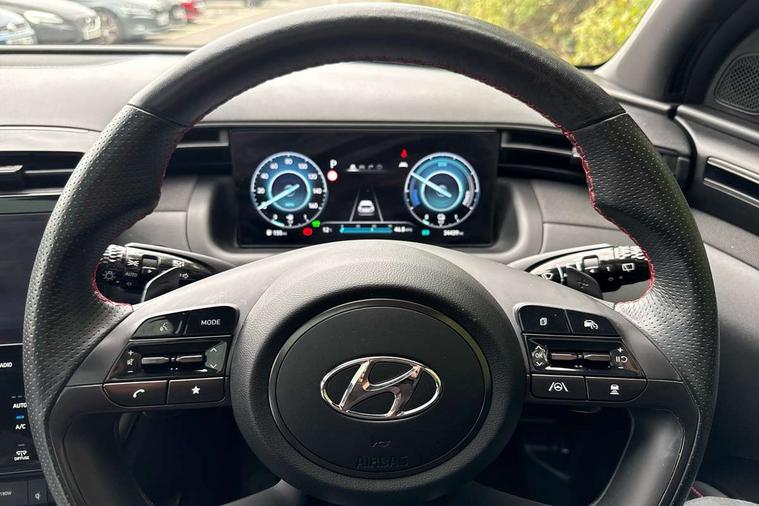 10.25" super vision instrument cluster, 10.25" touchscreen satellite navigation with mapcare and live services, Apple car play/Android Auto, Blind spot collision avoidance assist, Blind spot Collision Warning (BCW), Bluetooth system, Cruise control - smart adaptive speed control with stop and go function, Digital clock, Drive mode selector, Driver attention warning, E-call, Emergency stop signalling system, Forward Collision Avoidance Assist (FCA) - Car, Pedestrian and Cycle, Forward Collision Avoidance Assist Junction Turning (FCAJX), Front and rear parking sensors, Intelligent speed limit assist, Lane follow assist, Lane keep assist, PAS, Rear cross traffic collision avoidance (RCCA), Rear cross traffic collision warning (RCCW), Rev counter, Reversing camera, Roll over sensor, Smart power tailgate, Tailgate open warning light, Trip computer, Trip odometer, Voice recognition, Water temperature gauge, Windscreen washer fluid sensor and warning indicator, Wireless phone charging pad, DAB Digital radio, Krell premium audio system with 8 speakers and subwoofer, Steering wheel mounted audio/phone controls, USB connections in front and rear, Adjustable intermittent front windscreen wipers with aero wiper blade, Auto dimming rear view mirror, Automatic defog system, Automatic headlights with dusk sensor, Automatic windscreen wipers with rain sensor, Black headlamp bezels, Body colour bumpers, Body colour door mirrors with integrated indicators, Body colour exterior door handles, Body coloured wheel arches, Dark chrome effect radiator grille, Electric tilt/slide panoramic sunroof, Electrically adjustable, heated and power folding door mirrors, Follow me home headlights, Front and rear electric windows with anti-trap mechanism and one touch control, Front fog lights, Gloss black door frame moulding, High beam assist, High level third brake light, LED daytime running lights, LED rear lights, MFR - LED headlight with static bending light, N Line body coloured side mouldings, N Line design front grille, N Line Exclusive front and rear bumpers, N Line rear spoiler with fins, Positioning Lights - LED, Privacy glass - Rear windows and tailgate, Rear side window blinds, Rear side wing doors, Rear wash/wipe with intermittent wipe setting, Roof rails, Silver front and rear skid plate, Sports twin tip exhaust and diffuser, Tinted glass with windscreen shade band, Trailer stability assist, 12V power outlets in front console and luggage compartment, 3 seat bench in 2nd row, 40/20/40 split folding rear seat, Adjustable head restraints (Up and down), Alloy pedals, Ambient lighting, Black headliner, Cupholders in rear armrest, Door courtesy lights, Driver and passenger sunvisors with illuminated LED vanity mirrors, Driver's seat electric lumbar support, Driver's seat manual height adjust, Front and rear door pockets, Front armrest with storage box, Front door pocket bottle holders, Front passenger seat lumbar adjustment, Heated front seats, Heated steering wheel, Height/reach adjustable steering column, Illuminated/air conditioned glove compartment, ISOFIX child seat anchorage points attached on outer rear seats, Leather wrapped steering wheel, Leather/suede upholstery, LED personal and overhead console lamp, Luggage area underfloor compartment, Luggage compartment lighting, Luggage cover, Luggage hooks, Manual height adjustable front passenger seat, Map and reading lights, N Line logo on steering wheel, Retractable load cover, Single front passenger seat, Sunglasses holder, Three zone climate control, 3x3 point rear seatbelts, Active bonnet, Airbag - Front, front side, curtain and centre front airbags, Anti-lock brake system (ABS), Brake assist function, Childproof rear door locks, Downhill brake control, Electric parking brake with auto hold function, Electronic stability control, Front and rear seatbelt reminder, Front passenger airbag deactivation switch, Front seatbelt pretensioners, Hill start assist control (HAC), Multi-Collision braking, Outer rear seatbelt height adjustment, Seatbelt height adjustment for front seats, Traction control, Tyre pressure monitoring system with individual tyre pressure display - TPMS, Alarm, Deadlocks, Immobiliser, Locking wheel nuts, Remote control central locking, Smart key with keyless entry and engine start/stop button, Speed sensitive auto door locking, 19" Alloy wheels, Tyre repair kit,
