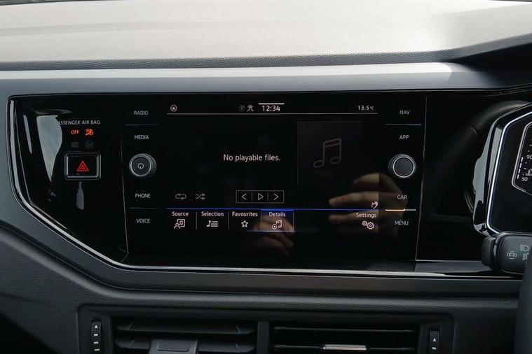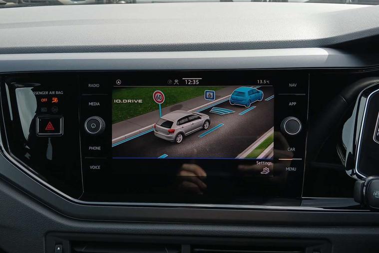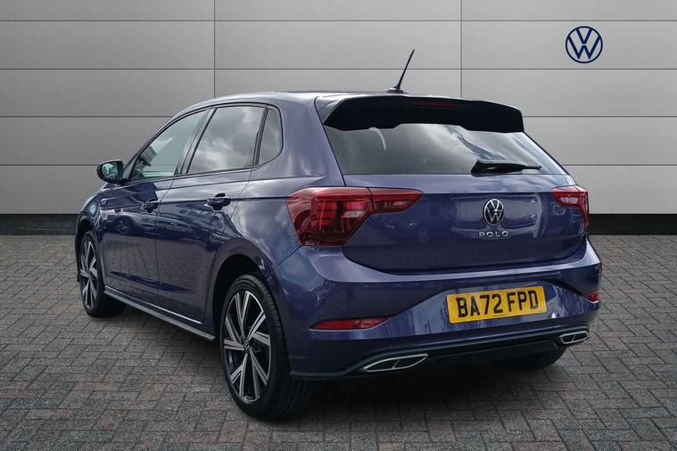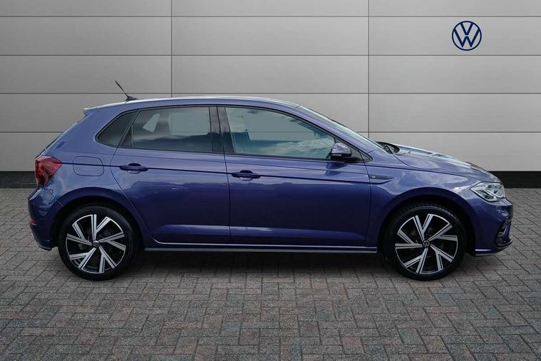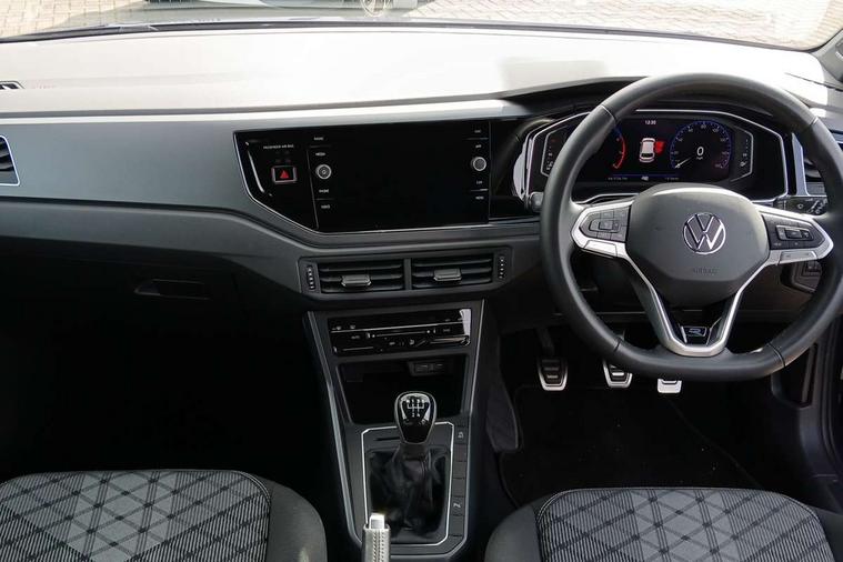 Adaptive cruise control without follow-to-stop and speed limiter, Bluetooth mobile phone interface, Digital Cockpit Pro with 10.25" Display, Driver alert system, Dynamic road sign display, Emergency call service, Power assisted speed sensitive steering, Preparation for We connect and We connect plus, Speedo and rev counter, electronic odometer, trip, service interval display and fuel gauge, Standard rear axle, Travel Assist - Lane keeping system and traffic jam assist, Travel assist including emergency assist, Trip computer, Warning signal and warning light for front and rear seatbelts not fastened, Washer fluid level indicator, Wireless app connect, Front wheel drive, Rear shock absorpion, Start-stop system with battery regeneration (recuperation - energy recovery during braking), DAB Digital radio, Diversity antenna for FM reception, Front and rear 6 speakers, Body colour bumpers, Body colour door handles, Body colour door mirrors, Electric front windows, Front scuff plates with R-Line logo, Heat insulating darkened glass in side and rear windows, Heat insulating glass windscreen, Power folding adjustable/heated exterior mirrors and front passenger exterior mirror lowering function, Rear electric windows, Rear fog light, Rear side wing doors, Rear tinted glass from B-pillar backwards approx 65% tinted, Rear windscreen washer and wiper with interval delay, Third brake light, 12V power socket in centre console, 2 USB-C ports in the front, 2 USB-C charging sockets on the center console in the rear, 3 rear head restraints, 60/40 split folding rear seat and rear seat bench not split, Air care climatronic air conditoning system with active combination filter and 2-zone temperature control, Black roof lining, Ceramique headliner, Chrome plated radiator grille inserts, air vent surrounds and light switch surrounds, Door and side trim panel, Driver and front passenger seat height adjustment, Driver/passenger sunvisors with illuminated vanity mirrors, Front + rear carpet mats, Front centre armrest, Front footwell illumination, Front seat backrest storage pockets, Front sports comfort seats, Handbrake lever handle in leather, Isofix child seat preparation easy-fit (for two outer rear seats, and front passenger seat) compatible with I-size, Karoso artvelours cloth upholstery, Leather trimmed gear knob, LED interior light with switch off delay and dimmer, 2 reading lights front and rear, Luggage compartment cover, Luggage compartment floor, Luggage compartment lighting, Lumbar adjustment for front seats, Multifunction steering wheel, Single front passenger seat, Stainless steel pedals, Standard pedal cluster, Light and sight pack - Polo R-Line/Black Edition, 3 point height adj front seatbelts + pretensioners, 3x3 point rear seatbelts, ABS, Driver and front passenger airbag with front passenger airbag deactivation, Drivers and front passengers safety optimised head restraints, ESC (Electronic stability control) + EDL (Electronic Differntial lock) and ASR (Traction control), Extended and predictive pedestrian/ cyclist protection, Front curtain and side airbags with center airbag, Hill hold control, Manual child lock in rear doors, Single tone horn, Tyre pressure loss indicator, Alarm with interior protection, Anti-theft alarm system with interior monitoring, backup horn, and towing protection, Anti-theft wheel bolts, Electronic engine immobiliser, Chrome applications on rotary light, mirror adjustment, window regulator switches, outlet with frame in black, Dark grey anodised matt decorative inserts in dash and front door panels, Low rolling resistance tyres,