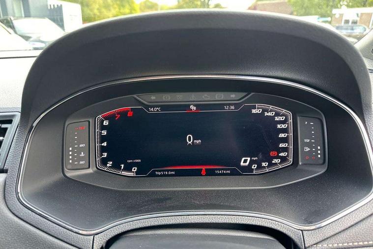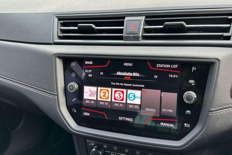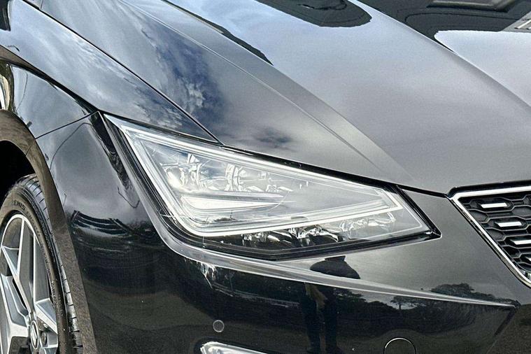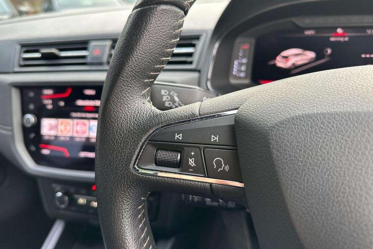 'Lights On' Reminder warning buzzer, Adaptive cruise control, Bluetooth Handsfree Phone Connection, Digital clock, Digital cockpit, Front parking sensors, Low fuel warning light, Outside temperature gauge, Rear parking sensor, Rear view camera, Satellite navigation system with 3D mapping, 8" touch screen, voice control and additional USB port, SEAT Drive profile, SEAT logo boot release, Speed sensitive power steering, Trip computer, Comfort suspension, 6 speakers, Auxiliary input socket, CD player, Digital Audio Broadcast (DAB) Tuner, Radio/MP3 player, SD card slot, SEAT USB media cable, Steering wheel mounted controls, USB port, Anti theft roof antenna, Atom grey door mirrors, Auto dimming rear view mirror, Automatic headlights, Automatic rain sensing wipers, Body colour bumpers, Body colour door handles, Chrome grille, Chrome side window trim, Coming/leaving home lighting function, Cornering front fog lights, Dark tinted rear windows, Electric folding door mirrors, Electric front/rear windows with one touch/auto up/down, Electric headlight adjustment, Electrically adjustable and heated door mirrors, Ice metal door side panels, LED daytime running lights, LED tail lights, Rear fog lights, 3 rear headrests, 60/40 split folding rear seat, Driver's sunvisor with ticket holder/vanity mirror, Dual zone climate control, Dust/pollen filter, Front centre armrest, Front courtesy lights, Front cupholders x 2, Front reading lights, Front seat and rear pockets, Gear shift indicator, Glovebox, Height adjustable driver's seat, Height adjustable front/rear head restraints, Height adjustable passenger seat, Height/reach adjust steering wheel, Illuminated boot, Instrument lighting with brightness control, Leather handbrake, Leather steering wheel and gear knob, Leather trim on side panels, Microsuede cloth upholstery, Passenger sunvisors with vanity mirrors and ticket holder, Rear top tether child seat ISOFIX attachment, Storage box under drivers seat, Full LED headlight pack - Ibiza, Full link media system pack with apple Carplay - Ibiza, 3 point seatbelts on all 3 rear seats, ABS, Active front headrests, Child locks on rear doors, Curtain airbags, Driver/Front Passenger airbags, ESP+EBA, Front assist (AEB), Front passenger airbag deactivation, Front side airbags, Hill hold control, Multi-Collision braking, Seatbelt warning, Tiredness recognition system, Tyre pressure monitoring system, 2 folding remote keys with window open/close function, Electronic engine immobiliser, Keyless entry and start, Locking wheel bolts, Remote central locking + deadlocks, Volumetric alarm with back up horn, Leather dashboard, 17" Dynamic alloy wheels,
