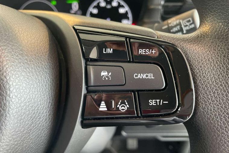 7" TFT instrument cluster, Adaptive cruise control, Adjustable speed limiter, Agile handling assist, Bluetooth hands free telephone connection, Drive modes select (Eco, normal and sport), eCall emergency system, Electric power steering, Emergency stop signalling system, Forward collision warning, Front parking sensors, Honda CONNECT with navigation, 9" touchscreen, AM/FM/DAB/Apple Carplay and android auto, Idle stop, Intelligent speed limiter, Lane departure warning, Lane keep assist, Low speed following, Multi info display, Power meter, Rear parking sensors and rear view camera, Road departure mitigation, Tachometer, Tailgate, Traffic sign recognition, WiFi connectivity, Vehicle stability assist, 'Shark fin' mobile antenna, 2x USB Front socket (1 data & 1 charge), 4 speakers, Steering wheel mounted remote controls, Auto folding door mirrors, Auto high beam, Automatic coming home lighting, Automatic headlights, Automatic rain sensing wipers, Body colour bumpers, Body colour tailgate spoiler, Body coloured door handles, Body coloured door mirrors, Body coloured front grille, Electric front and rear windows, Electrically adjustable and heated door mirrors, Exclusive styling in lower bumper non painting black, Fog garnish non paint gloss black, lower door garnish bumper skid garnish non paint silver, Front sequential turn, Headlight washers, Heated front windscreen, Heated rear window, High level third brake light, LED daytime running lights, LED headlamps, Low gloss window garnish, Manual headlight levelling, Rear side wing doors, Rear wiper, Red and clean lens LED rear lights, Variable front intermittent wipers, Windscreen shadeband, 3 rear headrests, 3 seat bench in 2nd row, 60/40 split folding rear seat, Ambient interior lighting, Automatic air conditioning, Cargo net hooks, Courtesy lights, Driver's seat height adjustment, Driver/passenger sunvisors with illuminated vanity mirrors, Front and rear map reading lights, Front head restraints, Front seat armrests, Heated front seats, Isofix points, Luggage area under floor storage box, Magic seat flexibility system, Manual height/reach adjust steering wheel, Meter illumination light, Paddle shift controls, Passenger seat back pocket, Rear centre armrest, Rear ventilation, Silver interior door handles, Single front passenger seat, Tonneau cover, Trunk light, 3x3 point rear seatbelts, ABS+EBD+Brake assist, Anti-whiplash front headrests, Auto hold function, Collision mitigation braking system, Collision mitigation throttle control, Deflation detection system, Dual front SRS airbags, Electric child locks, Electronic parking brake, Front and rear curtain airbags, Front and rear safety belts with Emergency Locking Retractor, Front side airbags, Hill descent control, Hill start assist, Low speed safety system, Paddle deceleration control, Passenger SRS airbag cut-off device, Regenerative braking system, Door deadlocks, Honda super locks, Immobiliser, Keyless smart entry with push button start, Remote central locking with 2 remote folding keys, Security alarm, Windows key fob operation, 18" Black cut alloy wheels, Tyre repair kit,