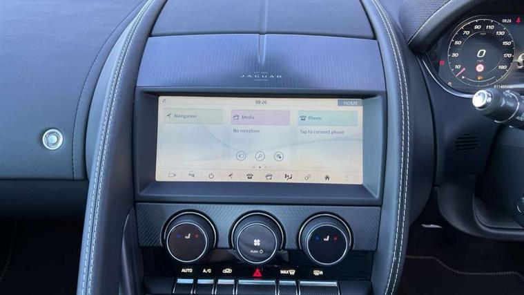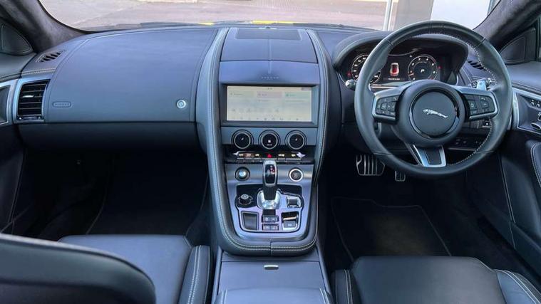 10" touch screen, Android Auto, Apple CarPlay preparation, Bluetooth telephone connectivity, Boot entrapment release lever, Connected navigation pro, Cruise control + speed limiter, Driver condition monitor, E-call, Incontrol pro service, InControl remote premium, Interactive driver display, Lane departure warning system, Lane keep assist, PAS, Push button start, Rear view camera, Stop/start system, Traffic sign recognition with adaptive speed limiter, Trip computer, Open differential with torque vectoring by braking, Passive suspension, Audio remote control, Digital Audio Broadcast radio-DAB, InControl app, InControl protect, Auto dimming rear view mirror, Auto dimming/power fold heated door mirrors with memory function, Automatic headlights, Body colour bonnet louvres, Body coloured door mirror caps, Body coloured roof, Chrome exhaust finisher, Deployable boot lid spoiler, Electric front windows, F-Type badge, Flush exterior door handles, Headlight washers, Illuminated metal tread plates with brand name script, Infra red reflective glass, LED 3rd brake light, LED tail lights, Metallic paint, Quad outboard mounted exhaust pipes, R Dynamic badge, R-Dynamic exterior body kit, Rain sensing windscreen wipers, Rear boot, Solar attenuating windscreen, Switchable active exhaust, Tinted glass, 12 way heated and cooled electric memory front seats, Aluminium gear shift paddles, Bright metal foot pedals, Deployable front air vents, Ebony door release, Electrically adjustable steering column with memory, Front centre armrest, Front headrests, Jaguar sense, Limited Edition interior, Low line cubby box, Lumbar support, Monogram embossed Suedecloth binnacle, Monogram embroidery on seats and door insert, Nubuck edged carpet mats, Overhead console, Pollen filter, Power socket, R-Dynamic black leather steering wheel, Rain, Ice and snow mode, Single front passenger seat, Suede cloth headlining - Ebony, Suedecloth sun visors with mirrors, Twin front cupholders, USB with 12V socket in centre console, Windsor leather upholstery with performance seats, Black exterior pack - F-Type - R Dynamic Coupe, Online pack - F-Type, Smartphone pack - F-Type, 6 airbags - Driver, front passenger, curtain and side airbags, Anti-lock braking system (ABS), DSC - Dynamic Stability Control, Electronic brake force distribution, Electronic parking brake, Emergency brake assist, Emergency braking, Front/rear seatbelt pre-tensioners, Pedestrian contact sensing and deployable bonnet, Seatbelt reminder for driver and front passenger, Tyre pressure monitoring system, Deadlocks, Drive away door locking, Engine immobiliser, Keyless entry, Locking wheel nuts, Perimetric and volumetric anti theft alarm, Remote central locking, Two stage unlocking, Valet mode, 20" 5 split spoke gloss black alloy wheels - style 5039,