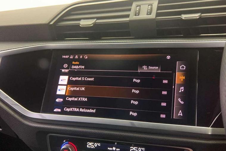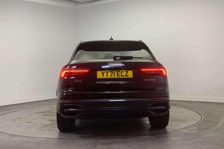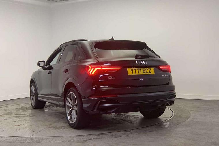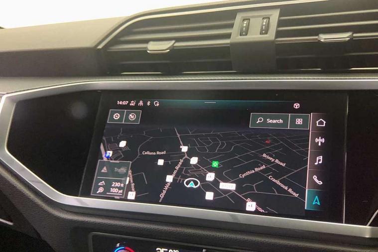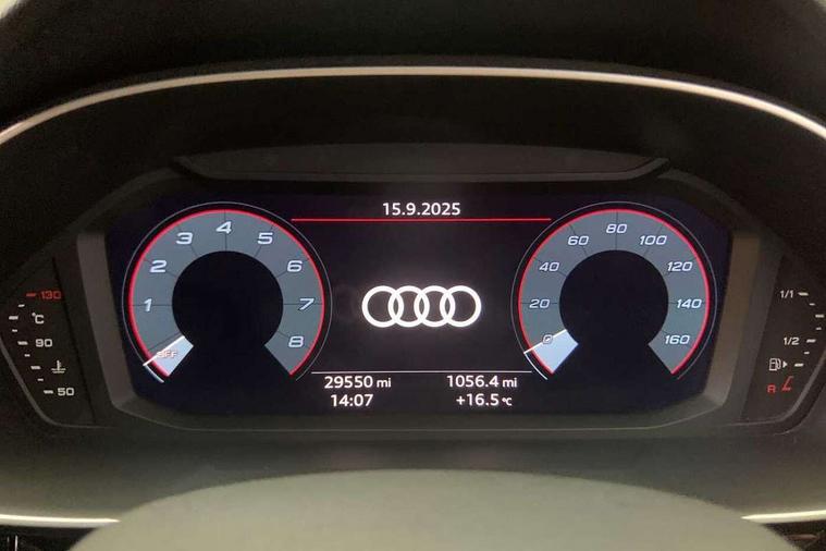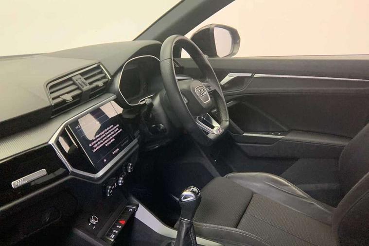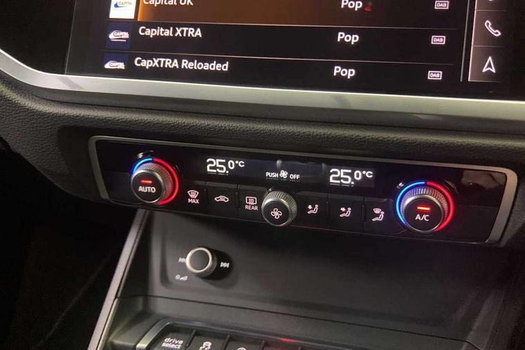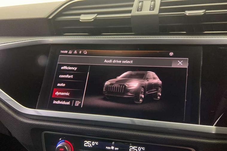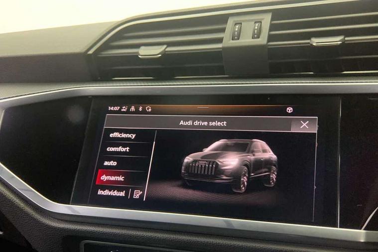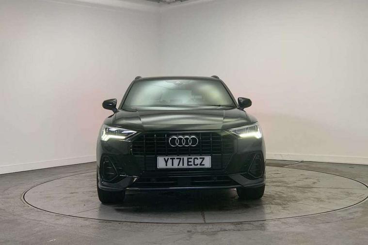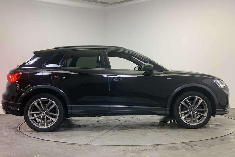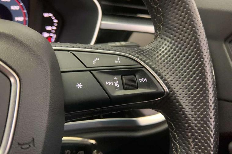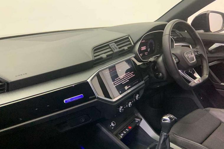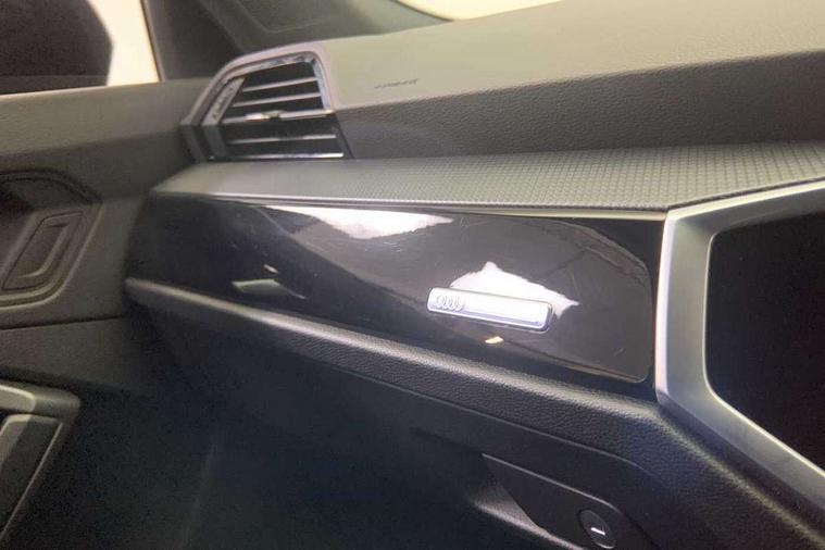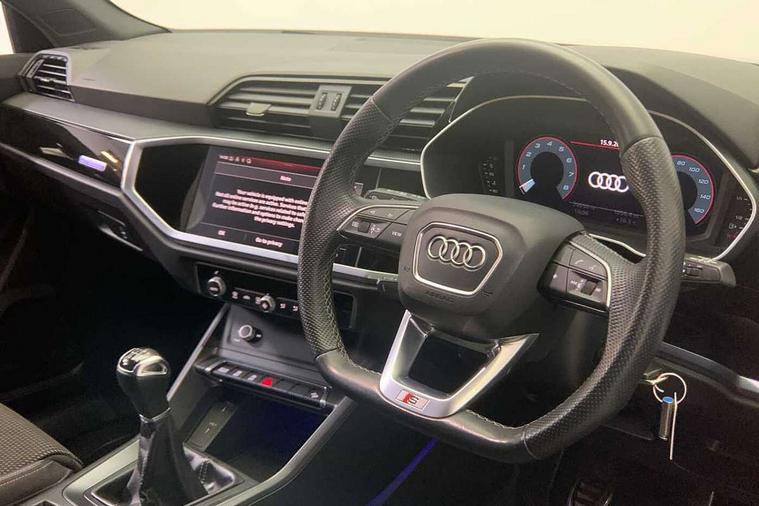 Amazon alexa Integration, Audi connect safety and service (e-call), Audi drive select, Audi lane departure warning, Audi smartphone interface includes wireless Apple carplay/Android Auto, Audi Virtual Cockpit - 10.25" display, Bluetooth interface, Camera based traffic sign recognition, Cruise control + speed limiter, MMI Navigation Plus with high resolution 10.1 inch touchscreen colour display, Power operated tailgate, Progressive steering, Rear parking sensors, Service interval indicator, Start stop system with recuperation, Voice control system with natural language interaction, Sports suspension, 2 USB-C ports with charge and data functions, 6 passive loudspeakers, DAB digital radio module, Acoustic windscreen, Auto dimming frameless rear view mirror, Black roof rails, Electrically folding, adjustable and heated door mirrors with integrated LED side indicators and kerb view function for passenger side, Front and rear electric windows, Front fog lights, Grille vertical bars in aluminium silver/Matt, High gloss black finish B and C pillars, LED headlights with LED daytime running lights and dynamic rear indicator, LED rear lights, Privacy glass dark tinted rear and rear-side windows (from B-pillar backwards), Rain and light sensors, Rear diffuser strip in matt titanium black, S line bumpers in contrasting Manhattan grey, 12V socket in rear centre console, 3 spoke flat bottomed multi-function leather sport steering wheel, 40:20:40 folding with manual adjustment for 60:40 forwards/backwards position and backrest angle, Adjustable rear seat bench/backrest with centre armrest and cupholder, Black cloth headlining, Dual zone electronic climate control, Front and rear black floor mats with contrast stitching in rock grey, Front and rear headrests, Front and rear roof module including reading lights, Front centre armrest, Glove compartment lighting, Height and reach adjustable steering wheel, Illuminated door sill trims with S logo, ISOFIX child seat mounting for front passenger with airbag deactivation and outer rear seat including top tether attachment point for outer rear seats, Luggage compartment light, Manual front seats with height adjustment, Perforated leather gearknob, Stainless steel luggage compartment sill finisher, Stainless steel pedals, Black styling pack - Q3, Non smoking pack - Q3, 3x3 point rear seatbelts, 6 airbags - Driver, front passenger, curtain and side windows, Electrically operated child locks on rear doors, Electromechanical parking brake, Electronic stabilisation control including ABS, ASR and EDL, Hill descent control, Hill hold assist, Pre sense basic, Seatbelt monitoring, Tyre pressure warning, Warning triangle and first aid kit, Anti theft alarm, Anti theft wheel bolts, Audi pre-sense front with pedestrain and cyclist recognition, Remote central locking, Leatherette door armrest, MMI touch colour display in glass look, black with surround in aluminium look, Piano black inlay,