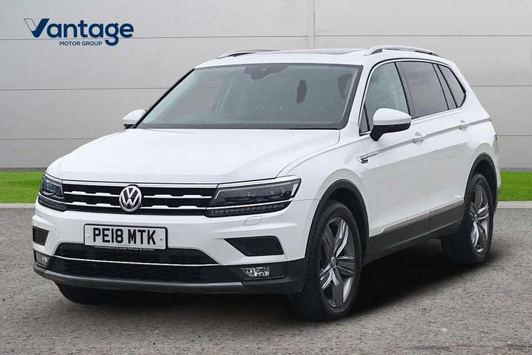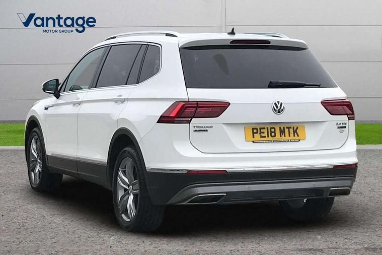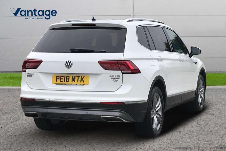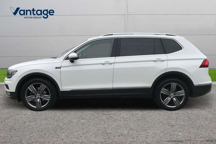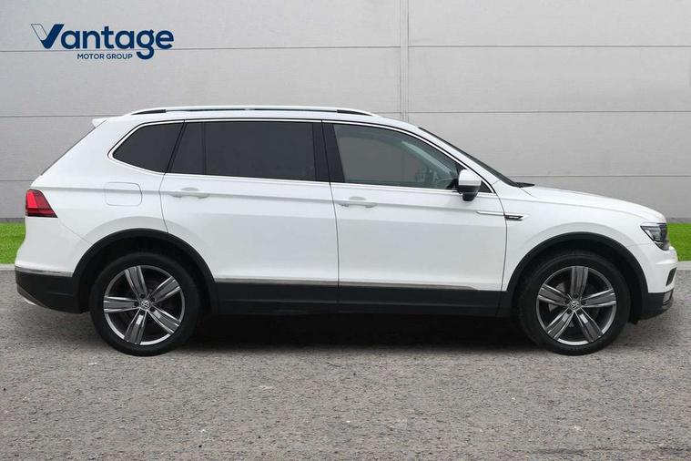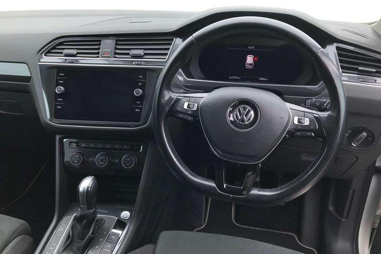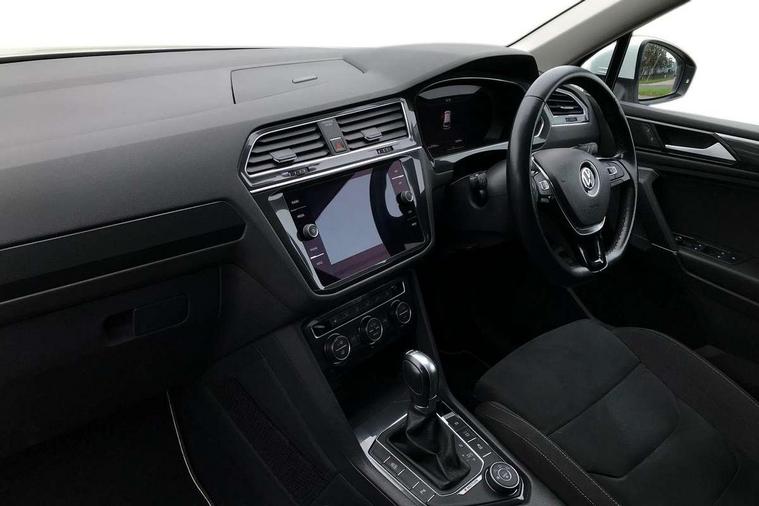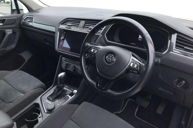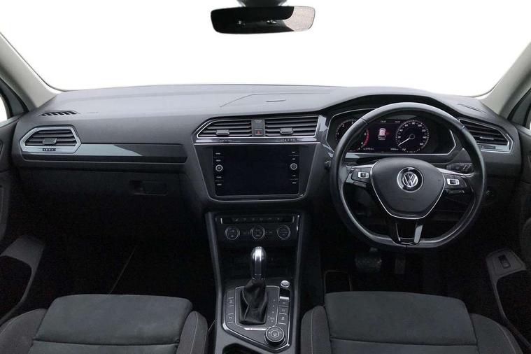 Active information display, Adaptive cruise control, App-Connect, Bluetooth phone integration system, Drive mode selector, Driver profile selection, Fatigue detection system, Front and rear parking sensors, Fully electric tailgate + keyless entry and start, Instrument cluster, Lane assist, Low washer fluid warning light, Outside temperature display, Service interval indicator, Speed limiter, Warning lights, Diesel particulate filter, XDS electronic differential lock, 2x USB sockets in front, Aux-in socket, DAB Digital radio, SD card slot, 3D effect LED rear lights, Auto dimming interior mirror, Automatic activation of hazard warning lights, Black door protector with chrome inserts, Body colour door handles, Body colour door mirrors, Body coloured bumpers, Chrome side body trim, Chrome side window surrounds, Chrome trimmed radiator grille, Coming/leaving home lighting function, Dusk sensor + auto driving lights, Electric folding door mirrors, Electric heated + adjustable door mirrors, Electric panoramic sunroof with sunblind, Front and rear electric windows, Heated rear window, LED headlights with dynamic light assist daytime running lights and cornering front fog lights, Rain sensor windscreen wipers, Rear tinted windows from B pillar back, Rear windscreen washer and wiper with interval delay, Silver rear diffuser trim, Silver roof rails, Silver under body guard, Trailer Stability Programme, Windscreen wipers/ intermittent wipe + 4 position delay, 12V Accessory socket in centre console, 12V socket in luggage compartment, 2 head restraints in 3rd row, 2 individual 3rd row seats, 3 head restraints in 2nd row, 3 zone climate control, 4 load lashing points, 40:20:40 split folding rear seats, Bag hook in luggage compartment, Driver + front passenger lumbar support, Foldable passenger seatback, Front + rear carpet mats, Front centre armrest with 12v socket, Front centre armrest with storage + rear 2 air vents + cupholders, Front seatback folding tables, Front sports seats, Height/reach adjust steering wheel, Illuminated driver/passenger vanity mirrors, Illuminated scuff plates, Interior light with delay, Isofix Preparation 2 Rear child seats, Leather gear knob, Load through provision with 2 cupholders when folded, Lockable cooled glovebox, Luggage compartment lighting, Luggage compartment side storage, Map pockets on front seats, Passenger seat height adjuster, Passenger underseat drawer, Rear cupholders, Removable luggage cover, Sliding/reclining rear seats, Storage compartment in driver's door, Storage compartment in passenger's door, Storage tray on dashboard, Sunglasses storage, Variable boot floor, Ambient lighting pack - Tiguan, 3 point seatbelts on all seats, ABS+EBD+Brake assist, Active bonnet, Active pedestrian safety system, Curtain airbags, Driver/Front Passenger airbags, Driver/Passenger whiplash optimised head restraints, Drivers knee airbag, DTC - Drag torque control, Electronic parking brake with auto hold, ESP with EDL + ASR, First aid kit, Front side airbags, Head airbag system, Height adjustable front 3 point seatbelts + pretensioners, Hill hold control, Passenger airbag deactivate switch, Passenger knee airbag, Pre crash system, Rear side airbags, Seatbelt warning lamp and buzzer, Two tone horn, Warning triangle, Alarm with interior protection, Electronic engine immobiliser, Remote central locking with 2 remote folding keys, Chrome door trim inserts, Piano black interior trim, Steel space saver spare wheel,