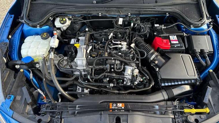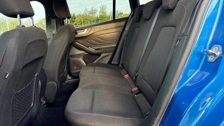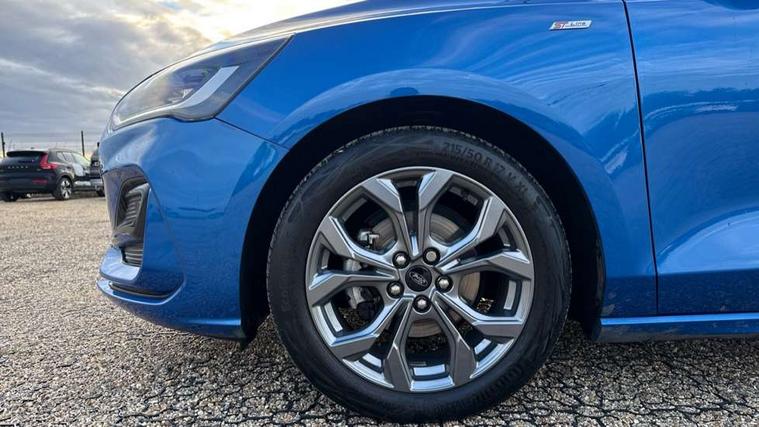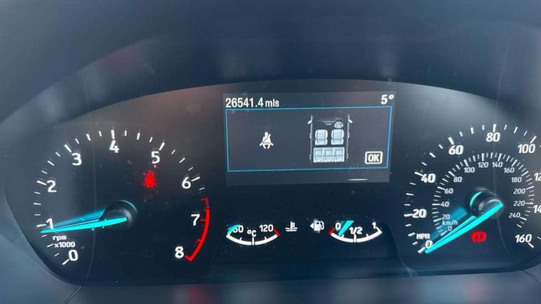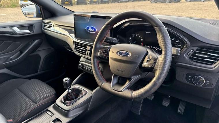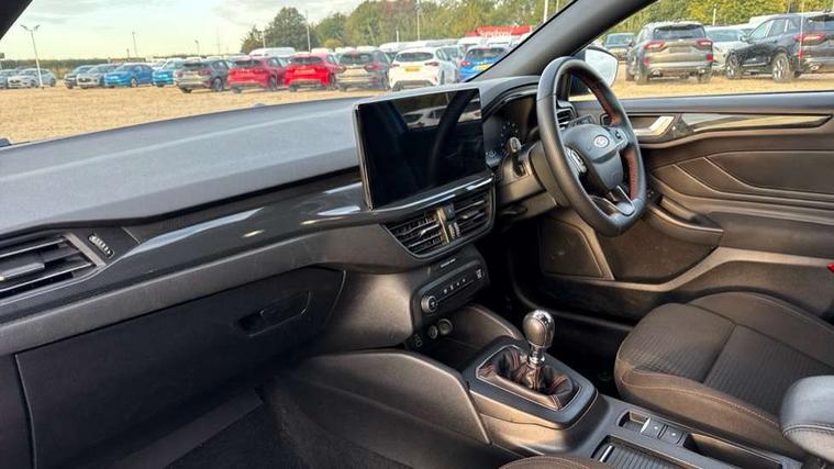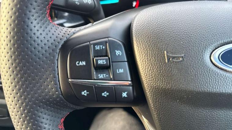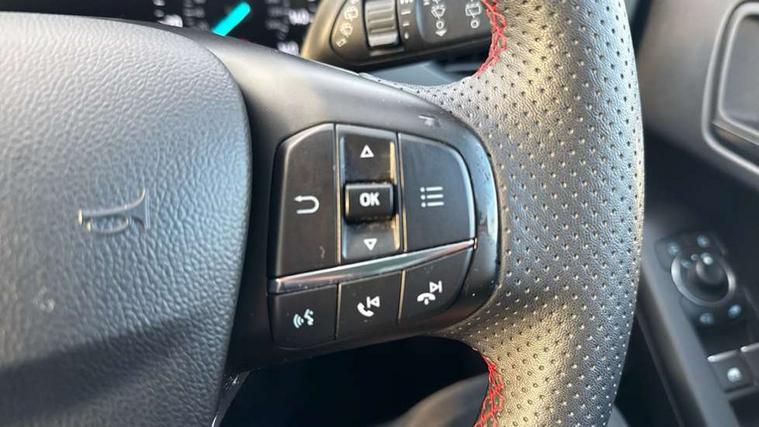 4.2" Colour TFT Ice blue illumination analogue cluster with trip computer, Bluetooth system, Digital clock, Easy fuel capless refuelling system, Eco mode, Ford SYNC 4 Navigation with 13.2'' touchscreen, DAB radio, Emergency Assistance, Apple Carplay & Android Auto, 6 speakers & FordPass Connect, Lane keeping system - lane keeping alert and lane keeping aid, PAS, Rev counter, Selectable drive mode, Service interval indicator, Sports tuned suspension, 2 USB ports, Auto headlamps (on/off), Body coloured door handles, Electrically operated front and rear windows with one touch opening and closing, Electrically operated heated power fold door mirrors with puddle lamp with side indicators, Front variable intermittent wipers with electric wash, Full fixed LED headlamps, Heated rear window, LED daytime running lamp, LED rear lamps, LED third brake light, Polished twin tailpipe, Privacy glass, Quickclear heated windscreen, Rain sensor, Rear side wing doors, Tailgate wash/wipe, Unique ST-Line grille, full bodystyling kit, and large body coloured rear spoiler, 3 rear headrests, 3 seat bench in 2nd row, Cloth upholstery, Dual zone electronic air temperature control, Height adjustable front headrests, Isofix child seat preparation, Reach + rake adjustable steering column, Single front passenger seat, 3x3 point rear seatbelts, ABS+Electronic Brake force Distribution, Auto hold function, Driver airbag, EDL traction control, Electronic parking brake, Electronic stability control, Front and rear seatbelt reminder, Front inertia reel height adjustable seatbelts with pre-tensioners, Front passenger airbag, Front side airbags, Passenger airbag deactivate switch, Post collision braking, Pre collision assist with autonomous emergency braking and pedestrian/cyclist detection, Remote/power child rear door locks, Side curtain airbags, Three rear inertia reel lap/diagonal seatbelts, Tyre pressure monitoring system, Keyless entry and keyless start, MyKey system, Remote central locking & engine immobiliser, Thatcham alarm with power door dead locks, 17" 5 spoke Rock mettalic finish alloy wheels with mini spare wheel,