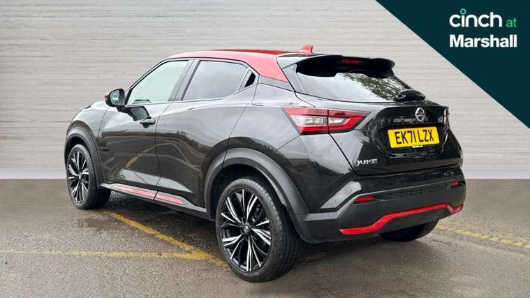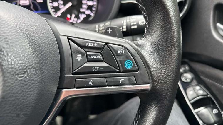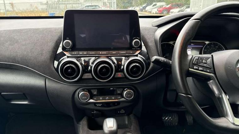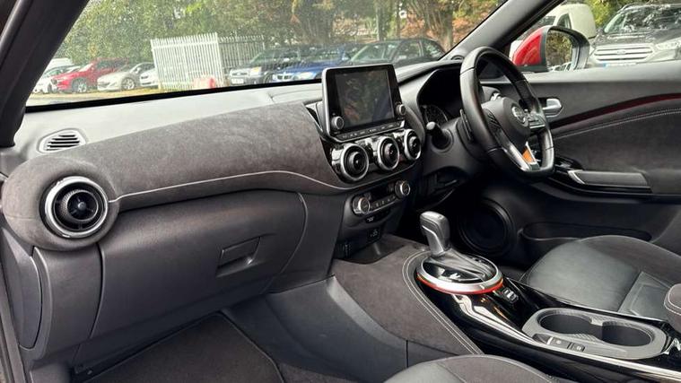 7" full colour TFT screen combimeter, 8" infotainment colour display with touch screen, Apple CarPlay and Google Android auto, Drive modes select (Eco, normal and sport), Emergency and breakdown call, Front parking sensor, Idle start/stop system, Intelligent lane intervention, Lane departure warning system, Nissan connect nav with TomTom traffic, Nissan connect services and Wifi connection, Outside temperature sensor, Power Steering, Rear parking sensor, Traffic sign recognition, Trip computer, Gasoline particulate filter, Bluetooth system, USB, Aux-in and 12V socket, Bose personal plus audio system with 8 speakers(4 speakers and 2 headrest speaker for driver and passenger seats), Bose personal sound stage control, DAB Digital radio, Front lower bumper painted in silver finisher, Rear console USB port, Auto dimming interior rear view mirror, Automatic hazard signal with emergency stop signal, Body colour bumpers, Body colour door handles, Electrically adjustable door mirrors with integrated indicators, Follow me home headlights, Front and rear electric window with one touch driver window, Heated and auto folding door mirrors, High beam assist, LED daytime running lights, LED front fog lights, LED headlamps, LED rear fog lamp, LED rear lamps, Rain sensor windscreen wipers, Rear privacy glass, Rear wiper, Thermaclear heated windscreen, Three blink turn signal, 3 height adjustable rear headrests, 60/40 split folding rear seat, Automatic climate control, Card holder on driver sunvisor, Door ambient lighting, Driver and passenger sliding and reclining seats, Driver seat back pocket, Driver side rear coat hanger, Driver/passenger sunvisors and vanity mirrors, Front and rear cabin lights, Front armrest, Front door pockets with bottle holders, Front head restraints, Front passenger isofix child seat anchorage point, Front/rear passenger grab handles, Gear console ambient circle lighting, Grey synthetic leather kneepad, Heated front seats, Height adjustable driver's seat, Height adjustable passenger seat, Internal chrome door handles, Leather gearshift knob, Leather steering wheel, Luggage board, Luggage space lighting, Monoform sporty seats, Multifunction steering wheel, Passenger seat back pocket, Rear door bottle holders, Steering wheel mounted gearshift paddles, Telescopic steering wheel adjustment, Two cupholders in front centre console, Two rear isofix child seat anchorage points with top tether, Voice recognition switch on steering wheel, Welcome light and console tray ambient lighting, ProPilot pack - Juke, ABS with EBD and brake assist, Active ride control, Active Trace Control, Driver and passenger airbags, Driver and passenger side airbags, Electric handbrake with auto hold function, Electronic Stability Programme (ESP), Front and rear curtain airbags, Height adjustable seatbelts, Hill start assist, Intelligent emergency braking with pedestrian and cyclist recognition, Seatbelt reminder for driver/front passenger and rear seats, Single tone horn, Three 3 point rear seatbelts, Traction control, Tyre pressure monitoring system, VDC Dynamic Vehicle Control, Ventilated rear brake discs, Alarm, Immobiliser, Intelligent Key with push button starter, Remote central locking, 19" Akari alloy wheels,