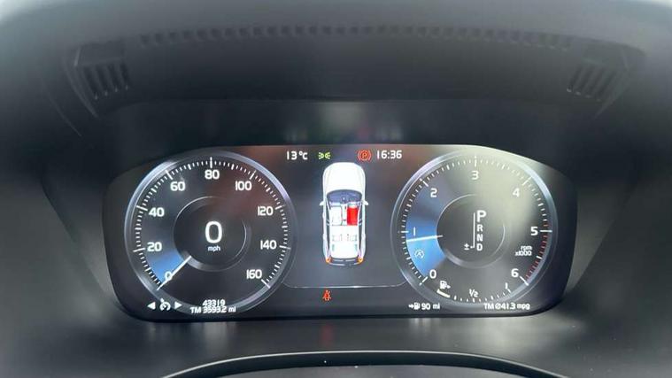 12.3" Active TFT crystal driver's instrument display, 9" Touch screen, Adjustable steering wheel force, Bluetooth hands free telephone kit, Drive mode selector, Intelligent driver information system (IDIS), Lane keep assist with driver alert control, Oncoming Lane Mitigation, Power tailgate, Road Edge Detection, Service interval indicator, Speed limiter, Speed sensitive steering, Voice control system, Volvo on call, Diesel particulate filter, DAB Digital radio, Adaptive brake lights, Aluminium tread plates, Auto dimming interior + exterior mirrors, Body colour door mirrors, Chrome front lower bumper, Chrome lower door mouldings, Chrome side window trim, Electric front+rear windows, Electrically adjustable and heated door mirrors, Front skid plate, Headlamp levelling, High gloss black grille with chrome inserts, Home safe and approach lighting, Illuminated side steps, LED front fog lights, LED Headlights + Active high beam incorporating daytime running lights, R Design tread plates, Rain sensor windscreen wipers, Rear wiper, Roof antenna, Roof spoiler, Silver roof rails, Tinted windscreen, Twin exhaust pipes, Visible VIN plate, 12V power point in luggage area, 12V socket in front + rear tunnel console, 3 spoke leather steering wheel with chrome trim, 4 aluminium high level anchor points, 60/40 split folding rear seat, A-pillar parking ticket holder, Ambient lighting, B Pillar ventilation, Bright metal luggage threshold, Centre armrest storage illumination, Electric drivers seat with memory + mirrors memory, Electric front cushion extensions and side support, Electrically adjustable passenger seat with memory, Floor mats, Front and rear door pockets, Front centre armrest with storage compartment and cupholders, Front footwell illumination, Front/rear reading lights, Glovebox illumination, Head restraints for all seats, Heated front seats, Height adjustable drivers seat with lumbar support, Height/reach adjustable steering column, Illuminated driver/passenger vanity mirrors, Illuminated front cupholder, Illuminated luggage compartment, Illuminated tailgate, Isofix attachments on rear seats, Load cover, Lockable load floor, Memory function for passenger seat, Multicolour theatre lights, Nappa Leather Key Integrated Remote, Passenger seat adjustable for lumbar support, Perforated and ventilated nappa leather upholstery, Pollen filter, Rear armrest / integral cup holders / storage tray, Rear footwell illumination, Rear seat concealed storage, Underfloor stowage compartment, WHIPS - Whiplash Protection System, 5 three point seatbelts, ABS/EBD, Child proof door locks, City safety, Drivers knee airbag, DSTC-Dynamic Stability and Traction Control, Dual stage driver/passenger airbags, EBA, Electronic parking brake with auto hold, Fasten seatbelt reminder, First aid kit, HBA (Hydraulic Brake Assist), Hill descent control, Hill start assist, Inflatable curtain, Passenger airbag deactivate switch, Road sign information display, Roll over protection, RSC - Roll stability control, Run off Road Protection, Seatbelt pre-tensioners, SIPS airbags, Tyre pressure monitor, Warning triangle, Anti-theft alarm including immobiliser/volume sensor + level sensor, Fuel flap with deadlocking system, Key integrated remote control central locking, Keyless Start, Locking wheel nuts, Private locking, Tailored instrument panel with contrast stitching,