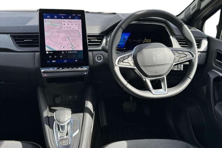 10.25" digital driver display, 10.4" OpenR link touchscreen with with built in Google Automotive Services and navigation, Adaptive cruise control with speed limiter, Driver attention alert system, Eco mode driving function, Front, rear and side parking sensors, Front/rear detection with emergency lane keep assist incl. solid line, oncoming traffic and road edge detection, Gear change indicator, Multi Sense - 3 driving modes and up to 48 ambient lighting colours, My safety switch - ability to personalise ADAS features at press of a button, PAS, Rear view camera, Renault automatic emergency assist, Traffic sign recognition with overspeed prevention, Trip computer, Wifi smartphone integration compatible with Apple CarPlay and Android Auto, Wireless phone charger, 2 front and 2 rear USB-C ports, Arkamys speakers - x6 inc. 2 boomer, 2 tweeter and 2 bicone, DAB radio with Bluetooth, Automatic headlights, Automatic high / low beam, Automatic windscreen wipers with rain sensor, Dark tinted rear windows and tailgate, Electric adjustable/heated/auto folding door mirrors, Frameless auto dimming rear view mirror, Front and rear electric windows with driver window one touch facility and anti pitch function, Full LED front and rear lights, Heated rear window, LED daytime running lights, LED rear fog lights, LED third brake light, Radiator grille with 3D graphics in black upper part with grey graphics and body tone lower part, Rear side wing doors, Rear wiper, Satin chrome lower door protection, Satin chrome window surround, Shark fin antenna, 2 front roof LED lights and central rear rooflight with 3 reading LED lights, 3 seat bench in 2nd row, Automatic air conditioning with one touch quick demist function and air quality regulator, Driver and front passenger seat height adjustment, Fabric upholstery, Flying console with central storage, sliding armrest and 2 rear air vents, Front and rear head restraints, Height and depth adjustable steering wheel, ISOFIX child seat fixing points on rear outermost seats, Modular boot floor, Rear seats - 1/3:2/3 foldable sliding bench, Single front passenger seat, Sunvisor with mirror and light, Synthetic leather steering wheel, 3x3 point rear seatbelts, Abs with emergency brake assist, Active emergency braking system - Urban and pedestrian/cyclist, Distance warning alert, Driver and front passenger and 3 rear passengers seatbelt reminder, Driver and front passenger, side, head and curtain airbags, Driver height adjustable seat belt, Electronic parking brake with auto hold function, Front passenger airbag deactivation, Hill start assist, Rear window and door child locking function, Tyre pressure warning light, Central door locking, Hands free keycard with Keyless access and start, Granite grey decorative upper strip, 18" Gravity alloys wheels,