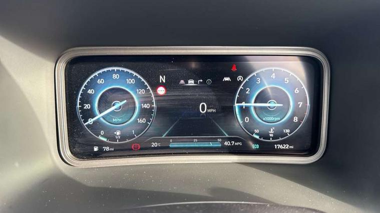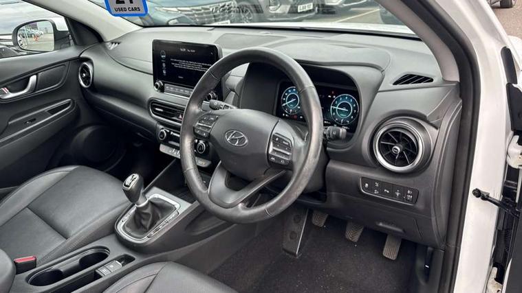10.25" touchscreen centre console display satellite navigation with live services and mapcare, Blind spot Collision Warning (BCW), Bluetooth connectivity, Cruise control + speed limiter, Digital clock, Driver attention warning, Driver supervision instrument cluster with 10.25" LCD display, eCall emergency call system, Forward collision avoidance assist with pedestrian detection, Front parking sensor, Head up Display, Intelligent speed limit warning, Lane follow assist, Lane keep assist, Leading vehicle departure alert (LVDA), Parking system with rear camera and guidance system, PAS, Phone connection with apple carPlay and android auto, Rear cross traffic collision warning (RCCW), Rear parking sensor, Roadside assistance, Safe exit warning (SEW), Windscreen washer fluid sensor and warning indicator, Wireless phone charging pad, 6 speed intelligent manual transmission, Front and rear USB ports, Krell premium audio system with 8 speakers including external amplifier and subwoofer, RDS and Digital DAB, Steering wheel mounted audio/phone controls, Auto dimming rear view mirror, Automatic headlights with dusk sensor, Automatic windscreen wipers with rain sensor, Body colour door mirrors and handles, Door mirror integrated indicators, Electric front/rear windows with drivers one touch/anti-trap, Electric tilt/slide glass sunroof, Electrically adjustable and heated door mirrors, Front fog lights, LED daytime running lights, LED Headlights, LED rear lights, Painted anthracite body garnish, Positioning Lights - LED, Power folding door mirrors, Privacy glass - Rear windows and tailgate, Rear roof spoiler with integrated LED brake light, Rear side wing doors, Rear skid plate - silver, Rear wiper, Roof rails, Solar glass with front door glass and windscreen shade band, Windscreen auto defog function, 12V power outlet in front console, 3 seat bench in 2nd row, 60/40 split folding rear seat, Adjustable head restraints, Air conditioning climate control, Ambient lighting, Centre interior light, Door scuff plate, Driver and passenger front seat pockets, Driver's seat electric adjustments, Driver's seat electric lumbar support, Driver/passenger sunvisors and illuminated vanity mirrors, Front interior light, Front passenger's seat electric adjustments, Heated front seats, Heated rear seats, Heated steering wheel, Height/reach adjustable steering column, Isofix rear child seat fastenings, Leather upholstery, Leather wrapped steering wheel and gear knob, Luggage compartment lighting, Luggage hooks, Luggage net, Metal paint effect interior door handles, Parcel shelf, Rear centre armrest, Rear centre console with air vents, Single front passenger seat, Sunglasses holder, Ventilated front seats, Vertical adjustment rear head restraints, Trailer wiring package - Kona, Airbags - front, front side and curtain airbags, Anti-lock brake system (ABS), Childproof rear door locks, Downhill brake control, EBD + Brake Assist, Electric parking brake, Electronic stability control, Fasten seatbelt reminder, Fixed 3 point for second row centre passenger seatbelt, Front seatbelt pretensioners, Height adjustable front seatbelts, Hill start assist control (HAC), Passenger airbag deactivate switch, Rear seat alert, Traction control, Tyre pressure monitoring system, Alarm/immobiliser, Deadlocks, Folding key, Locking wheel nuts, Remote central locking, Smart key with keyless entry and engine start/stop button, 18" Alloy wheels,