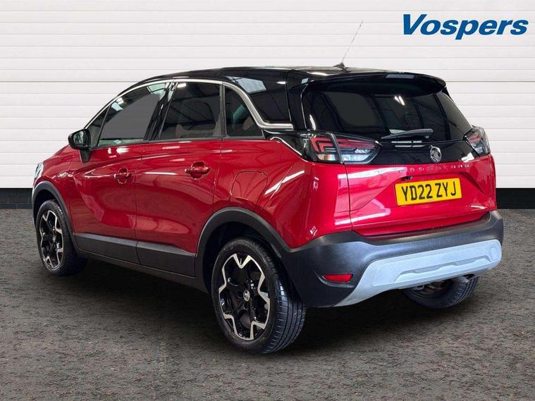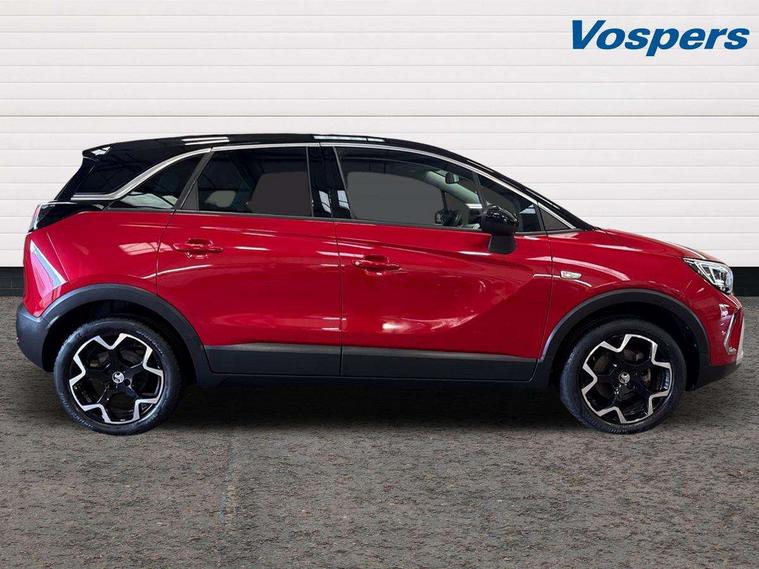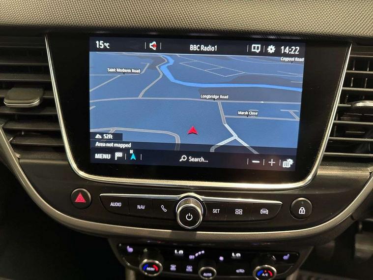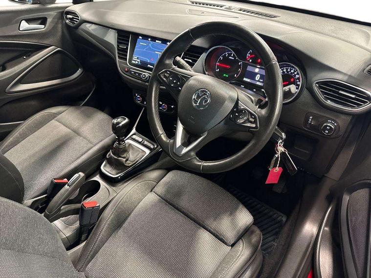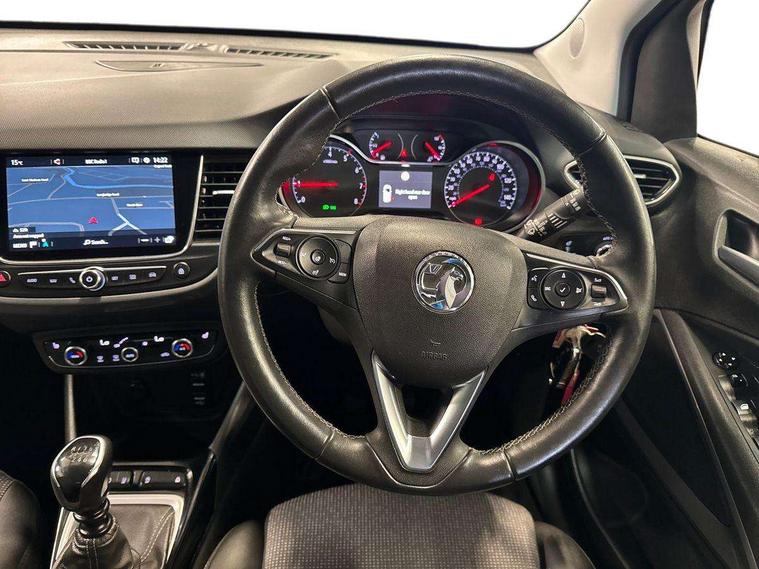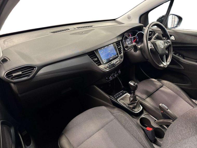 3.5" monochrome instrument colour display, Audible lights on warning, Bluetooth connectivity, Cruise control + speed limiter, Digital clock with automatic RDS time adjustment, Driver drowsiness alert system, E-call, Forward collision warning, Instrumentation - Speedometer, rev counter, low fuel gauge warning light + water temperature gauge warning light, shift up/down indicate light, Lane departure warning system, Multi function trip computer, Multimedia sat nav pro with 8" colour touchscreen, AM/FM, Bluetooth streaming, Bluetooth mobile phone portal, apple CarPlay/Android Auto + 6 speakers, Outside temperature display with ice warning, Refridgerant low indicator, Service interval indicator, Speed sensitive power steering, Speed sign recognition, Vauxhall connect, Front wheel drive, 2 x USB connections, DAB Digital radio, Steering wheel mounted audio/phone/cruise controls, 2 speed wipers/wash wipe/intermittent wipe, Alloy effect front and rear skid plates, Automatic anti dazzle rear view mirror, Automatic headlamp levelling system, Automatic high beam control with cornering light, Automatic lighting control, Black door mirror housings, Black radiator grille with chrome bar, Black roof, Body colour door handles, Body colour front and rear bumpers, Chrome effect upper window moulding, Dark tinted rear side windows + tailgate window, Electrically adjustable and heated door mirrors, Front power windows with express up/down and anti-pinch function, Hazard warning lights, Headlamps for left side traffic, Heated rear window, Integrated tailgate spoiler, Intermittent rear wash/wipe, LED daytime running lights, LED front fog lights, LED Headlights, LED side repeat indicators, LED tail lights, Rain sensitive windscreen wipers, Rear fog lights, Rear power windows with express up/down and anti-pinch function, Rear side wing doors, Rear wing door, Reversing light, Side window demist vents, Solar heat absorbing windscreen and windows, Third brake light, Welcome lighting, Windscreen demist vents, 12v power outlet - front, 2 way adjustable front passenger seat, 2 way front passive headrests, 3 rear seats, 3 spoke flat bottomed leather covered steering wheel with bezel decoration, 4 way electrically adjustable lumbar support for drivers seat, 60/40 split folding rear seat backrest, Adjustable rear seat backrest, Air recirculation facility, Ambient lighting, Anti submarining ramps in front seats, Cabin particulate filter - removes dust, airborne particles and pollen, Centre console, Driver and front passenger illuminated vanity mirrors with flip up covers, Driver's seat armrest, Drivers ergonomic active seat with 8 way manual adjustable driver seat , height, reach and backrest, Dual zone electronic climate control, Fade up/fade down on interior lighting, Four adjustable facia vents, Front door pockets with bottle holders, Front map reading lights, Fully carpeted luggage area, Glovebox with lid, Height adjustable front/rear head restraints, Illuminated load area, Interior courtesy light operated by all doors, Isofix system on outer rear seats, Jet black premium leather side bolsters, Luggage compartment cover, Multi-speed fan with Illuminated control, Open storage compartment in centre console, Passenger assist handles, Reach + rake adjustable steering column, Rear centre headrest, Rear door pockets with bottle holders, Rear floor ventilation ducts, Rear reading lights, Satin chrome effect bezel on steering wheel, Seat cushion extension, Single front passenger seat, Sparkle cloth/vinyl upholstery, Storage pockets on front seat backs, Two drinks holders in centre console, Rear view camera plus pack - Crossland, Winter pack - Crossland, 3x3 point rear seatbelts, 6 airbags - Driver and co-driver front, front side, head curtain roof airbags, front and rear row coverage airbags, ABS, Automatic emergency braking with pedestrian detection, Child locks on rear doors, CSC - Cornering stability control, Deactivate switch for side impact airbags, Deformation zones front and rear, Dual seatbelt pretensioners on front seats, EBD - Electronic brakeforce distribution, Energy absorbing steering column, Engine drag torque control, ESP + traction control, Front and rear seatbelt unfastened audible warning and warning light, Front side impact airbag, Hill start assist, Hydraulic Brake Assist (HBA), Hydraulic brake boost, Inertia reel lap and diagonal seatbelts for all seats, Passenger airbag deactivate switch, Pedestrian detection, Rear seat belt pretensioners, Reinforced passenger safety cell, Seatbelt load limiter, Side impact protection beams, Smart seatbelt reminder for front and rear seats, Tyre pressure monitoring system, 2 remote folding keys, Electronically protected audio equipment, Engine immobiliser, Locking wheel nuts, Remote central deadlocking, Remote control central locking activation switch on driver door, Remote control central locking operates on doors, tailgate and fuel filler flap, Remote security alarm system, Visible vehicle identification number, Black facia with silver trim insert, Black trim inserts on front doors, Cluster black with chrome rings, 17" five twin spoke diamond bi colour alloy wheels,