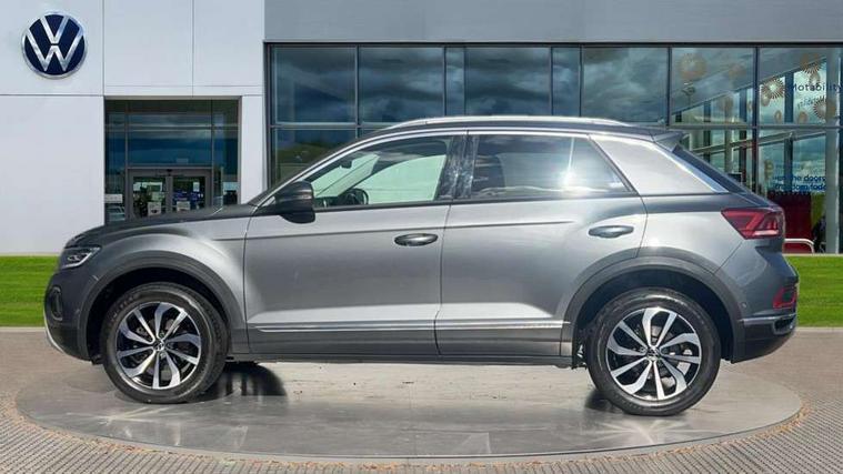 10.25" Digital cockpit pro, Bluetooth mobile phone interface, Driver alert system with fatigue detection, Driver tips and journey analysis, Emergency call service, Lane keeping system Lane Assist, Modified key software - reduce switch off time for key status change to Long no motion, Online services, Park assist including front and rear parking sensors, Service interval indicator, Tailgate/trunk lid release from outside, Think blue trainer driver tips and journey analysis, Warning sound and light for front seatbelts unfastened, Wireless app connect, Battery regeneration during braking, Start/stop function with battery regeneration, Diversity antenna for FM reception, Front and rear 6 speakers, Music playback - MP3, WMA and AAC files, Premium USB cable in choice of either Apple or Android smartphone compatibility, SD card slot, Simultaneous pairing of 2 compatible mobile devices, Title and cover art display, We Connect and We Connect Plus functionality, 3rd brake light, Auto dimming interior rear view mirror, Automatic hazard lights activation under emergency braking, Automatic headlight control with LED separate daytime running lights with coming/leaving home function, Body colour sports bumpers with silver metallic underbody fascia, Dynamic headlight range control with self adjusting whilst driving, Extended roof spoiler, Exterior mirrors aspherical on driver side, convex on front passenger side, External USB type C socket and charging sockets, Front windscreen wiper with intermittent wipe and 4 position delay, Heated rear window, LED Plus headlamps, LED rear combination lamps, LED rear number plate lights, LED tail lamp rear comination lamps, Light mode for poor weather, rain, fog or snow, Power windows with comfort operation and circuit breaker, Rain sensor, Rear exhaust tailpipe, Rear fog light on one side and reversing lights on both sides, Rear side wing doors, Rear wash/wipe with intermittent wipe setting, Remote electrically foldable door mirrors, puddle lights and reverse activated passenger's door mirror, 12V power socket in centre console, 3 rear head restraints, 3 seat bench in 2nd row, 4 load lashing points in luggage compartment, Air care climatronic air conditoning system with active combination filter and 2-zone temperature control, Chrome plated radiator grille inserts, air vent surrounds and light switch surrounds, Door and side trim panel with leatherette insert, Drawer under drivers seat, Front + rear carpet mats, Front centre armrest, Front comfort sports seats, Front cupholders x 2, Front footwell illumination, Instrument lighting, white adjustable panel illumination, Interior ambient lighting and surround lighting, Interior light delay, Isofix child seat preparation, Leather gearshift handle, LED interior light with switch off delay/dimmer and 2 front/rear LED reading lights, Load-through provision with cup holder when folded down ('Unsplit rear seat bench, split folding backrest, with centre armrest), Luggage compartment lighting, Non-folding front passenger seat backrest, Single front passenger seat, Storage compartment in left and right luggage area, Storage compartment in rear doors, Storage compartments in driver and front passenger doors, Sunvisors with illuminated vanity mirrors, Variable boot floor, height adjustable and removable, Driver assistance pack without proactive passenger protection - T-Roc, 3 point height adj front seatbelts + pretensioners, 3 point seatbelts in outer rear with ECE label, ABS, Child locks on rear doors, Driver and front passenger airbag with front passenger airbag deactivation, Driver and front passenger safety-optimised head restraints, Drivers seatbelt reminder, Electronic parking brake, Electronic Stability Control (ESC) inc EDL (Electronic Differential Lock) and ASR (Traction Control), Front and rear passengers curtain airbag system including front side airbags, Front assist with city emergency braking and pedestrian monitoring, Front seat side impact airbags, Predictive pedestrian protection, Rear disc brakes, Single tone horn, Tyre pressure loss indicator, Volkswagen roadside assistance, Alarm with interior protection, Anti-theft alarm system with interior monitoring, backup horn, and towing protection, Remote central locking with SAFELOCK, radio remote control with 2 remote control folding keys, Trims for alloy wheels,