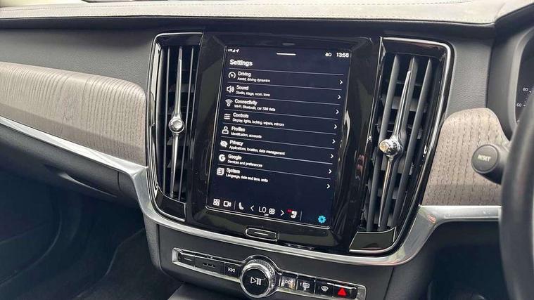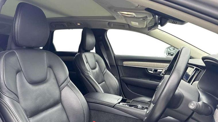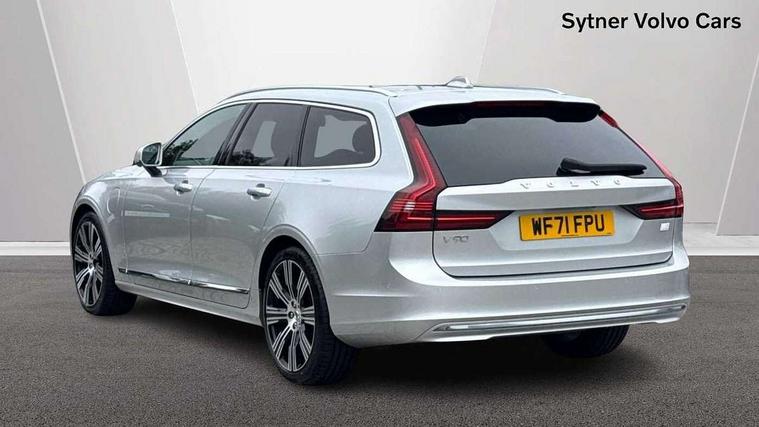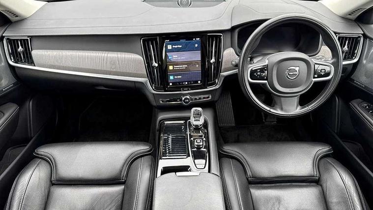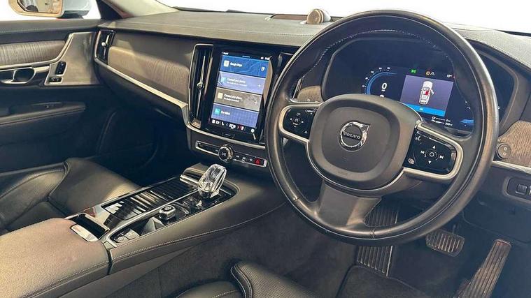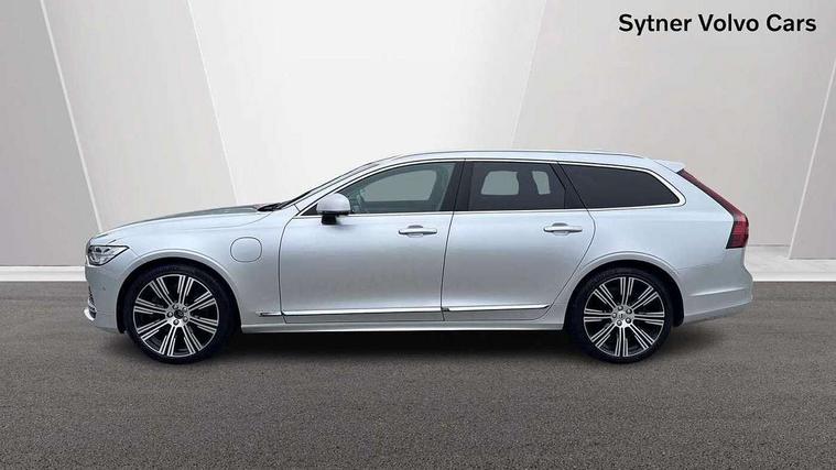 12.3" Progressive Driver Display, 9" centre console touch screen, Adjustable steering wheel force, Bluetooth Handsfree Phone Connection, Drive mode settings, E-call, Google automotive services - Enabled entertainment apps, navigation with google maps, voice recognition with google assistant, Lane keep assist with driver alert control, Oncoming Lane Mitigation, Power operated tailgate, Speed limiter, Speed sensitive steering, Volvo on call, Wireless smartphone integration with Apple CarPlay and Android auto, 7m 10amp charge cable with 3 pin plug and 7m 1 phase 16amp type 2/mode 3 charge cable, 8 speed automatic transmission with start/stop + manual change functions, Electric rear axle drive, Lithium-ion battery, Recharging port located in nearside front wing, DAB Radio (Digital Audio Broadcasting), Steering wheel remote infotainment controls, Adaptive brake lights with high level LED brake lights, Auto dimming interior + exterior mirrors, Automatic headlamp levelling, Automatic LED Headlights + Active high beam incorporating daytime running lights, Chrome front lower bumper, Chrome lower door mouldings, Chrome window surround, Colour coordinated auto folding and heated power door mirrors, Front and rear power windows, High gloss black front grille with chrome inserts, Home safe and approach lighting, Integrated roof rails in silver, Laminated rear and side windows, Puddle lights in exterior door handles, Rain sensor with automatic windscreen wiper activation, Rear LED lights with sequential indicators, Rear side wing doors, Rear wiper, Roof antenna, Roof spoiler, Visible VIN plate, 2 zone electronic climate control with Clean zone air quality system + pollen filter, 3 seat bench in 2nd row, 3 Spoke tailored steering wheel with chrome trim, A-pillar parking ticket holder, Ambient door and instrument panel lighting, B Pillar ventilation, Bright metal luggage threshold, Cargo divider with grocery bag holder, Center Console Cupholders and Storage, Driver's side lower dashboard storage compartment, Extended front seat cushions, Front 12V socket tunnel console and cargo area, Front centre armrest storage illumination, Front footwell and side step illumination, Front head restraints, Front/rear door pockets and front cupholder illumination, Front/rear reading lights, Heated front seats, Height/reach adjustable steering column, Illuminated glovebox, Illuminated luggage compartment, Illuminated tailgate, Illuminated vanity mirrors + ticket holder, Integrated sun curtains in rear doors, Isofix system on outer rear seats, Load cover, Load protection net, Luxury floor mats, Multicolour theatre lights, Off-black finish in steering wheel, Orrefors Crystal gear lever knob, Power driver seat with memory for seat and exterior mirrors, Power Folding Rear Seat Backrests and Headrests, Rear armrest with storage + cupholders, Rear footwell and side step illumination, Recharge aluminium tread plates, Single passenger seat, Ski hatch, Underfloor cargo storage, Versatile split folding rear seat - 60/40, Driver assist pack - V90, Seat pack - V90, 3x3 point rear seatbelts, Active bonnet, City safety with steering support with Pedestrian + cyclist + front collision warning with full auto brake and rear auto brake, Drivers knee airbag, Dual stage driver/passenger airbags, Front seats SIPS airbags, Hill start assist, IC (Inflatable Curtains) - Full Length, Passenger airbag cut-off device, Power parking brake with auto hold function, Road sign information display, Run off Road Mitigation, Run off Road Protection, Seatbelt reminder and pretensioners for all seats, SIPS (Side Impact Protection System), Slippery road and hazard light alert, Stability and Traction Control with Spin control, Engine Drag Control and Corner Traction Control, Tyre pressure monitoring system, Vehicle deceleration control with Anti-lock Brake System, Electronic Brake Distribution and Emergency Brake Assist, Warning triangle and first aid kit, WHIPS whiplash protection system - front, Anti-theft alarm including immobiliser/volume sensor + level sensor, Care key with user defined top speed, Key integrated remote control central locking + fuel flap with deadlocking system and auto open/close power windows, Keyless drive with Keyless entry and start, Locking wheel nuts, Private locking for tailgate, Tailored Instrument Panel and Door Tops with Contrast Stitching, Tyre sealant kit and compressor,