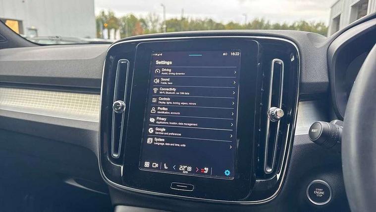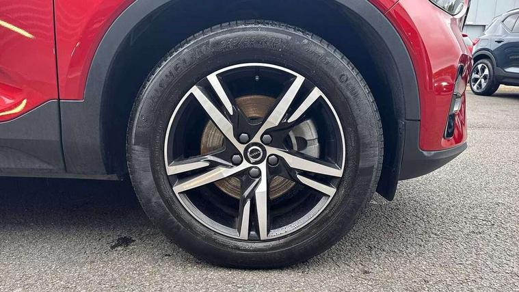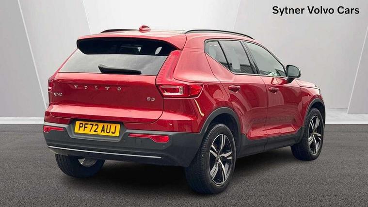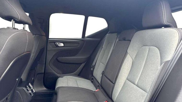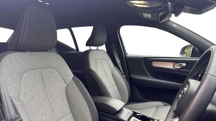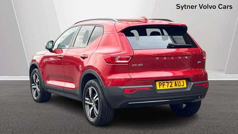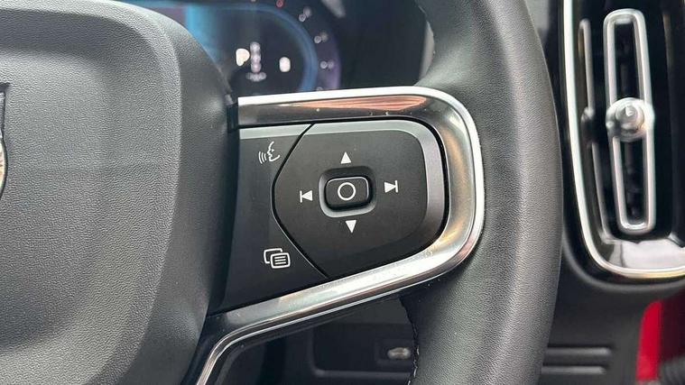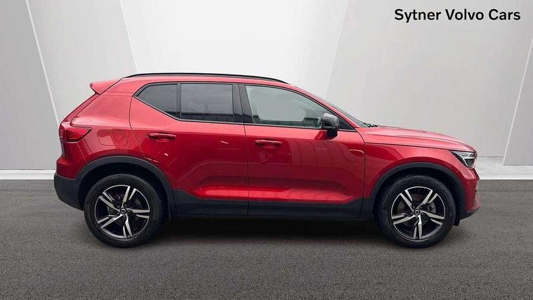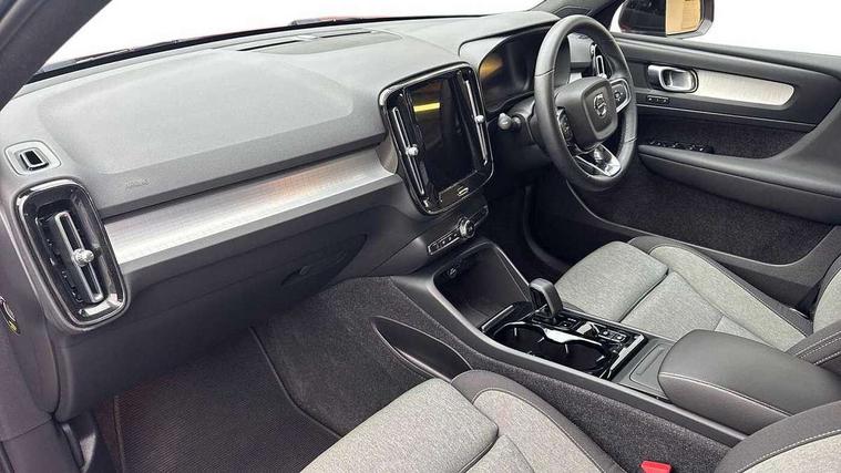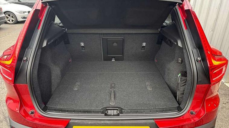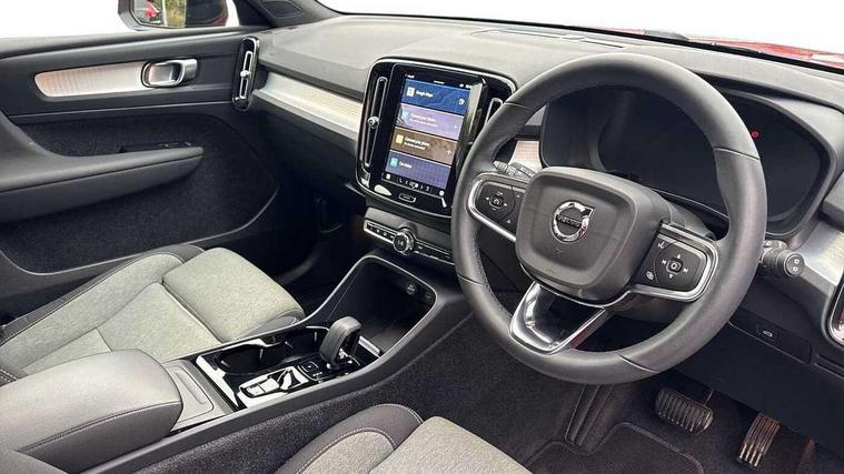 12.3" Progressive Driver Display, 9" centre console portrait touch screen, Adjustable steering wheel force, Bluetooth hands free telephone kit, Cruise control, Driver awareness - blind spot information system with steer assist, cross traffic alert with autobrake, rear collision warning and migitation, E-call, Front park assist, Google automatic services - Nav with google maps, apple carplay/android auto, voice recognition with google assistant, Hands free power tailgate, Lane keep assist with driver alert control, Oncoming Lane Mitigation, Rear park assist, Rear park assist camera, Speed limiter, Speed sensitive steering, Wireless/Inductive Mobile Phone Charging, Dynamic chassis, DAB Digital radio, High performance sound, 8 speakers/250W, front USB and 2 rear type C USB, Steering wheel mounted remote controls, Adaptive brake lights with high level LED brake lights, Auto dimming feature for exterior door mirrors, Auto dimming interior mirror, Automatic headlamp levelling, Automatic LED Headlights + Active high beam incorporating daytime running lights, Front aluminium tread plates, Front and rear electric windows, High gloss black front and rear skid plate, High gloss black mesh front grille with high gloss black surround, High gloss black window trim, Home safe and approach lighting, Integrated roof rails in high gloss black, LED front fog lights, Puddle lights, Rain sensor with automatic windscreen wiper activation, Rear side wing doors, Rear wiper, Roof antenna, Roof spoiler, Visible VIN plate, 12V socket in front tunnel console and luggage compartment, 2-Zone electronic climate control with CleanZone air quality system and pollen filter, 3 seat bench in 2nd row, 3 Spoke tailored steering wheel with chrome trim, 60/40 versatile split folding rear seat, A-pillar parking ticket holder, Ambient front door and instrumental panel lighting, Centre console cupholders and storage, Flexible load floor and grocery bag holder, Floor mats, Front door pocket and front cupholder illumination, Front footwell illumination, Front headrests, Front reading light and theatre lighting, Front seat cushion extensions, Front tunnel pocket, Glovebox bag hook, Heated front seats, Height adjustable passenger seat, Height/reach adjustable steering column, High gloss centre tunnel deco, Illuminated glovebox, Illuminated luggage compartment, Illuminated tailgate, Illuminated vanity mirrors, Integrated waste bin, Isofix attachments on outer rear seats, Load protection net, Multi directional lumbar support, Power driver seat with memory + exterior mirrors memory, Rear armrest / integral cup holders / storage tray, Rear headrests, Rear reading and courtesy lights, Single front passenger seat, Underfloor cargo storage, Climate pack without heated front seats - XC40, 3x3 point rear seatbelts, City safety with steering support with Pedestrian + cyclist + front collision warning with full auto brake and rear auto brake, Drivers knee airbag, Dual stage driver/passenger airbags, Electronic parking brake with auto hold, First aid kit, Front and outer rear seatbelt reminder and pretensioners, Front seats SIPS airbags, Hill descent control, Hill start assist, Inflatable curtain, Passenger airbag cut-off device, Power child locks on rear doors, Road sign information display, Run off Road Mitigation, Run off Road Protection, SIPS (Side Impact Protection System), Slippery road and hazard light alert, Stability and Traction Control with Spin control, Engine Drag Control and Corner Traction Control, Tyre pressure monitoring system, Vehicle deceleration control with Anti-lock Brake System, Electronic Brake Distribution and Emergency Brake Assist, Warning triangle, WHIPS whiplash protection system - front, Anti-theft alarm including immobiliser/volume sensor + level sensor, Key integrated remote control central locking + fuel flap with deadlocking system and auto open/close power windows, Keyless drive includes keyless entry and keyless start, Locking wheel nuts,
