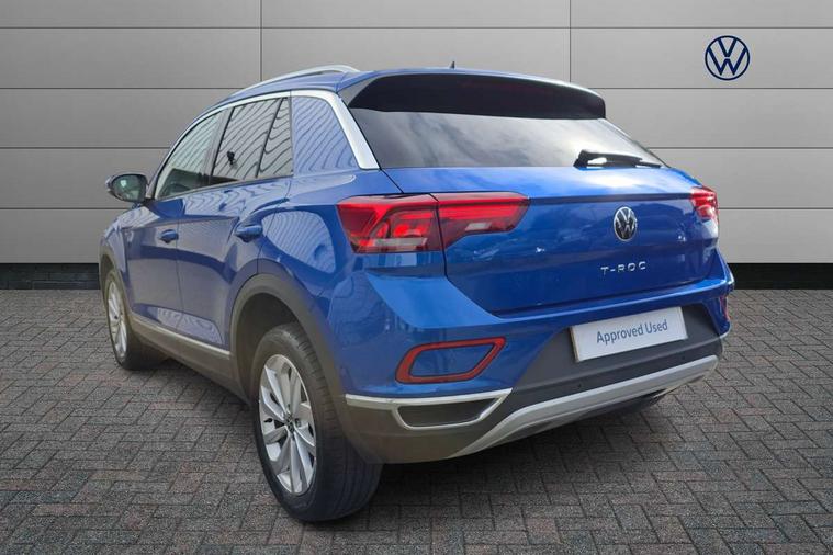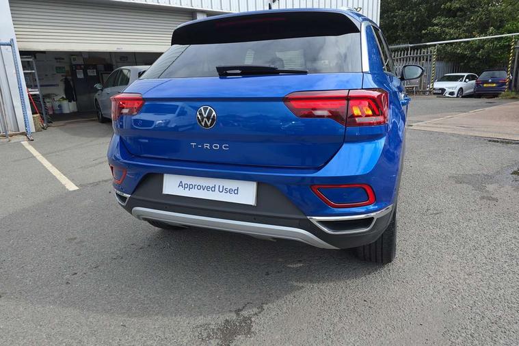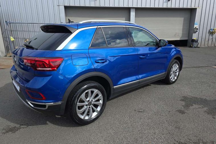 10.25" Digital cockpit pro, Bluetooth mobile phone interface, Driver alert system with fatigue detection, Driver tips and journey analysis, Dynamic road sign display, Emergency call service, Lane keeping system Lane Assist, Modified key software - reduce switch off time for key status change to Long no motion, Online services, Park assist including front and rear parking sensors, Power assisted speed sensitive steering, Service interval indicator, Tailgate/trunk lid release from outside, Think blue trainer driver tips and journey analysis, Warning sound and light for front seatbelts unfastened, Wireless app connect, Battery regeneration during braking, Front shock absorption, Rear shock absorption chassis with increased ride height, Start/stop function with battery regeneration, Diversity antenna for FM reception, Front and rear 6 speakers, Music playback - MP3, WMA and AAC files, Premium USB cable in choice of either Apple or Android smartphone compatibility, SD card slot, Simultaneous pairing of 2 compatible mobile devices, Title and cover art display, We Connect and We Connect Plus functionality, 3rd brake light, Auto dimming interior rear view mirror, Automatic hazard lights activation under emergency braking, Automatic headlight control with LED separate daytime running lights with coming/leaving home function, Body colour sports bumpers with silver metallic underbody fascia, Dynamic headlight range control with self adjusting whilst driving, Extended roof spoiler, Exterior mirrors aspherical on driver side, convex on front passenger side, External USB type C socket and charging sockets, Front windscreen wiper with intermittent wipe and 4 position delay, Heated rear window, LED Plus headlamps, LED rear combination lamps, LED rear number plate lights, LED tail lamp rear comination lamps, Light mode for poor weather, rain, fog or snow, Power windows with comfort operation and circuit breaker, Rain sensor, Rear exhaust tailpipe, Rear fog light on one side and reversing lights on both sides, Rear side wing doors, Rear wash/wipe with intermittent wipe setting, Remote electrically foldable door mirrors, puddle lights and reverse activated passenger's door mirror, 12V power socket in centre console, 3 rear head restraints, 3 seat bench in 2nd row, 4 load lashing points in luggage compartment, Air care climatronic air conditoning system with active combination filter and 2-zone temperature control, Chrome plated radiator grille inserts, air vent surrounds and light switch surrounds, Door and side trim panel with leatherette insert, Drawer under drivers seat, Front + rear carpet mats, Front centre armrest, Front comfort sports seats, Front cupholders x 2, Front footwell illumination, Instrument lighting, white adjustable panel illumination, Interior ambient lighting and surround lighting, Interior light delay, Isofix child seat preparation, Leather gearshift handle, LED interior light with switch off delay/dimmer and 2 front/rear LED reading lights, Load-through provision with cup holder when folded down ('Unsplit rear seat bench, split folding backrest, with centre armrest), Luggage compartment lighting, Non-folding front passenger seat backrest, Single front passenger seat, Storage compartment in left and right luggage area, Storage compartment in rear doors, Storage compartments in driver and front passenger doors, Sunvisors with illuminated vanity mirrors, Variable boot floor, height adjustable and removable, Driver assistance pack without proactive passenger protection - T-Roc, 3 point height adj front seatbelts + pretensioners, 3 point seatbelts in outer rear with ECE label, ABS, Child locks on rear doors, Driver and front passenger airbag with front passenger airbag deactivation, Driver and front passenger safety-optimised head restraints, Drivers seatbelt reminder, Electronic parking brake, Electronic Stability Control (ESC) inc EDL (Electronic Differential Lock) and ASR (Traction Control), Front and rear passengers curtain airbag system including front side airbags, Front assist with city emergency braking and pedestrian monitoring, Front disc brakes, Front seat side impact airbags, Predictive pedestrian protection, Rear disc brakes, Single tone horn, Tyre pressure loss indicator, Volkswagen roadside assistance, Alarm with interior protection, Anti-theft alarm system with interior monitoring, backup horn, and towing protection, Remote central locking with SAFELOCK, radio remote control with 2 remote control folding keys, Trims for alloy wheels,
