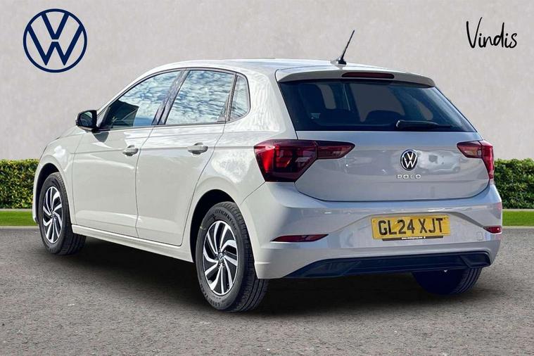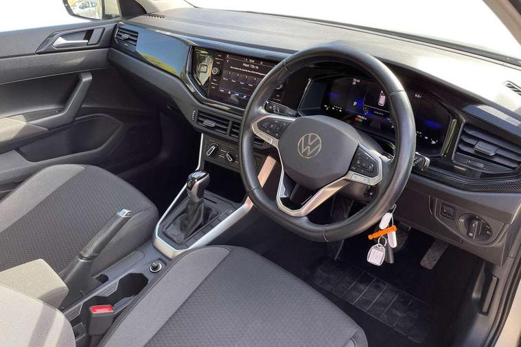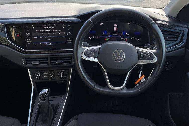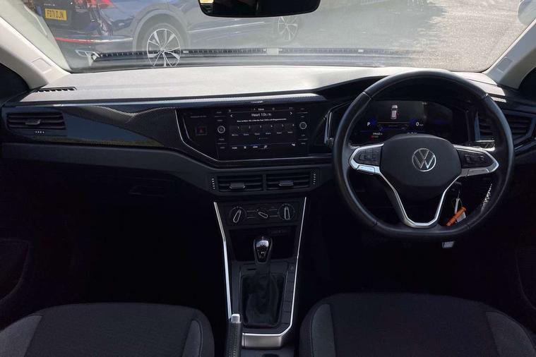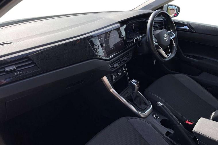Adaptive cruise control with follow-to-stop and speed limiter, Advanced driver attention and drowsiness monitor, Bluetooth mobile phone interface, Dynamic road sign display, Emergency call service, Power assisted speed sensitive steering, Preparation for navigation system with media and internet package, Preparation for We connect and We connect plus, Speedo and rev counter, electronic odometer, trip, service interval display and exterior temperature gauge, Standard rear axle, Travel Assist - Lane keeping system and traffic jam assist, Travel assist including emergency assist, Trip computer, Warning signal and warning light for front and rear seatbelts not fastened, Washer fluid level indicator, Wireless app connect, Front wheel drive, Rear shock absorpion, Start-stop system with battery regeneration (recuperation - energy recovery during braking), DAB Digital radio, Diversity antenna for FM reception, Automatic dimming interior rear view mirror, Automatic headlight control with LED separate daytime running lights with coming/leaving home function, Body colour bumpers with chrome inserts, Body colour door handles, Body colour door mirrors, Electric front windows, Engine badge deletion, Headlight range adjustment, Heat insulating and laminated safety glass windshield, Heat insulating darkened glass in side and rear windows, Heat insulating glass windscreen, LED Headlights, LED rear combination lamps, Power folding adjustable/heated exterior mirrors and front passenger exterior mirror lowering function, Rain sensor, Rear electric windows, Rear fog light, Rear side wing doors, Rear windscreen washer and wiper with interval delay, Third brake light, 12V power socket in centre console, 2 front and 2 rear reading lights with switch off delay and dimmer, 2 USB-C ports in the front, 2 USB-C charging sockets on the center console in the rear, 3 rear head restraints, 60/40 split folding rear seat and rear seat bench not split, Ceramique roof lining, Chrome plated radiator grille inserts, air vent surrounds and light switch surrounds, Door and side trim panel, Driver and front passenger seat height adjustment, Driver/passenger sunvisors with illuminated vanity mirrors, Front centre armrest, Front seat backrest storage pockets, Front standard seats, Handbrake lever handle in leather, Hartley/Thomas cloth upholstery, Headliner in recycled material, Isofix child seat preparation easy-fit (for two outer rear seats, and front passenger seat) compatible with I-size, Leather trimmed gear knob, Luggage compartment cover, Luggage compartment lighting, Removable luggage compartment floor, Single front passenger seat, Standard climatic zones, Standard pedal cluster, Three spoke leather wrapped multifunction steering wheel with shifting paddles, Light and vision pack - Polo, 3 point height adj front seatbelts + pretensioners, 3x3 point rear seatbelts, ABS, Driver and front passenger airbag with front passenger airbag deactivation, Drivers and front passengers safety optimised head restraints, ESC (Electronic stability control) + EDL (Electronic Differntial lock) and ASR (Traction control), Extended and predictive pedestrian/ cyclist protection, Front assist with autonomous emergency braking (for Adaptive Cruise Control ACC up to 130 mph), Front curtain and side airbags with center airbag, Front disc brakes, Hill hold control, Manual child lock in rear doors, Rear drum brakes, Single tone horn, Tyre pressure loss indicator, Alarm with interior protection, Anti-theft alarm system with interior monitoring, backup horn, and towing protection, Anti-theft wheel bolts, Electronic engine immobiliser, Lava stone black gloss/matt decorative inserts in dash and front door panels, Low rolling resistance tyres,