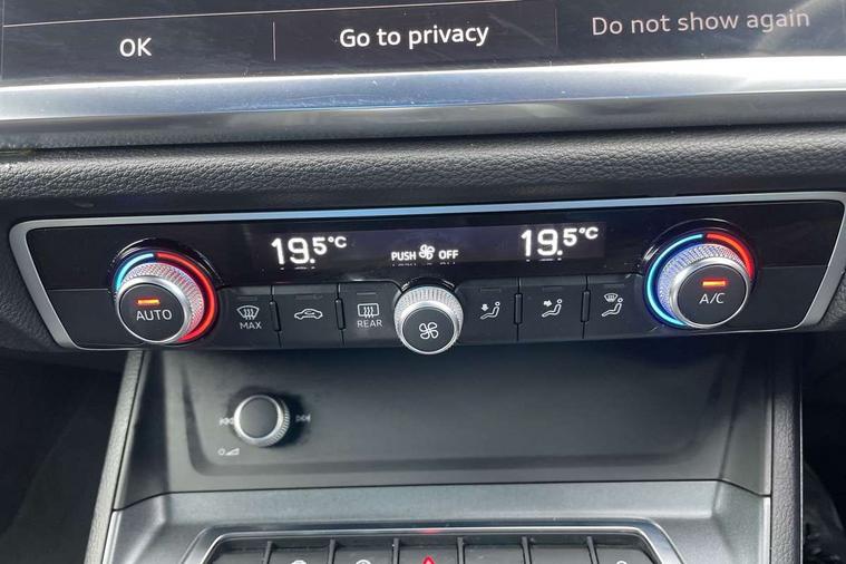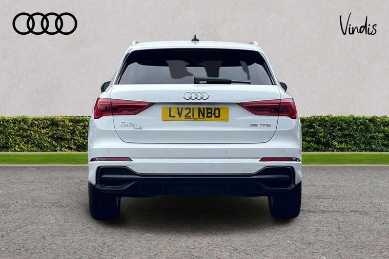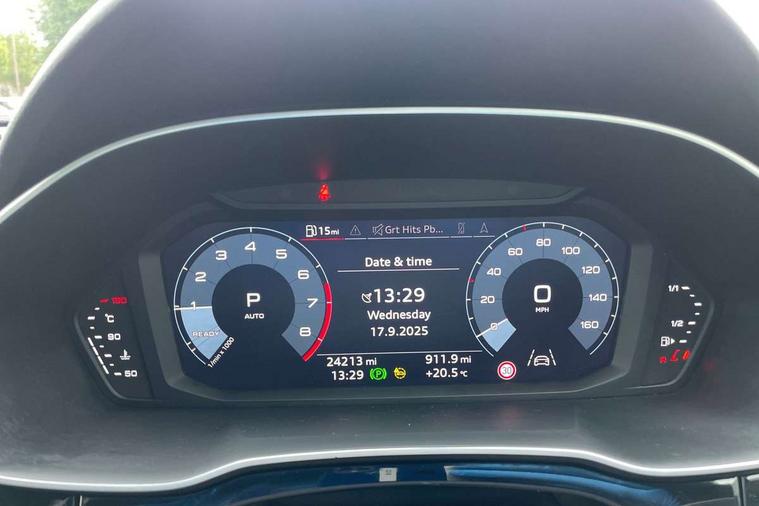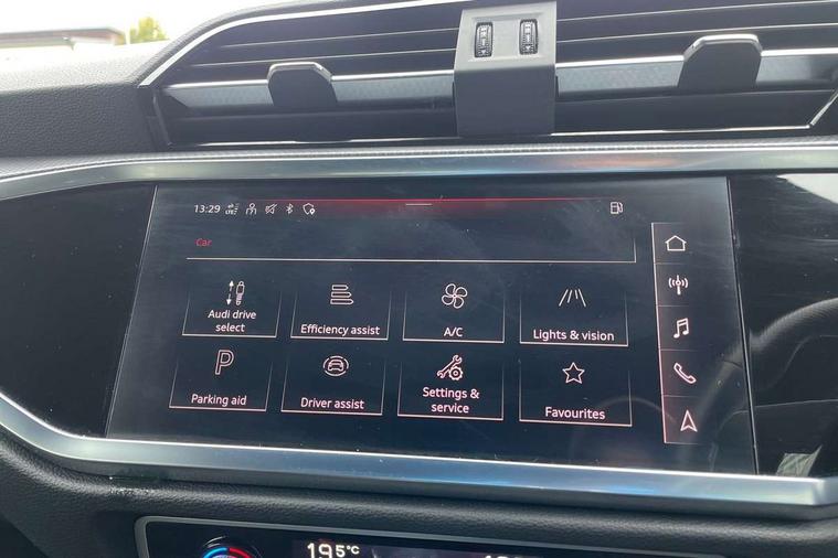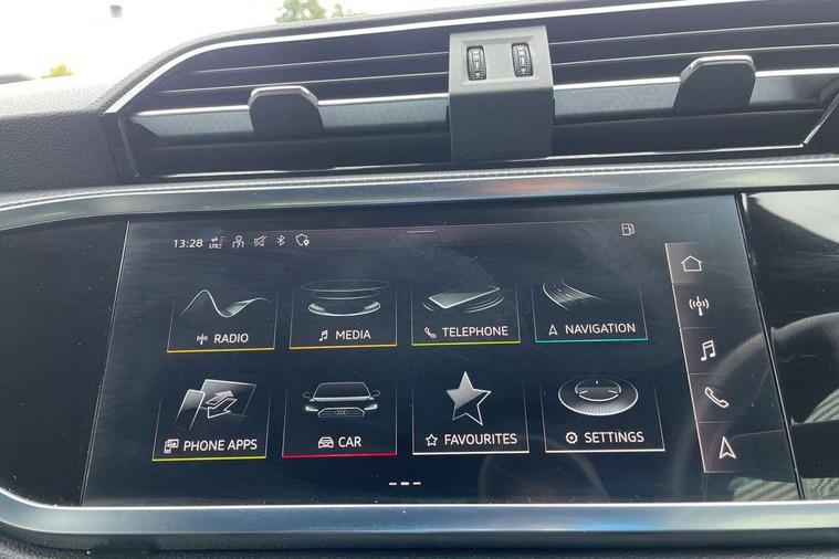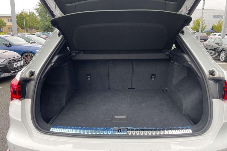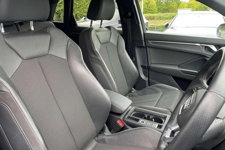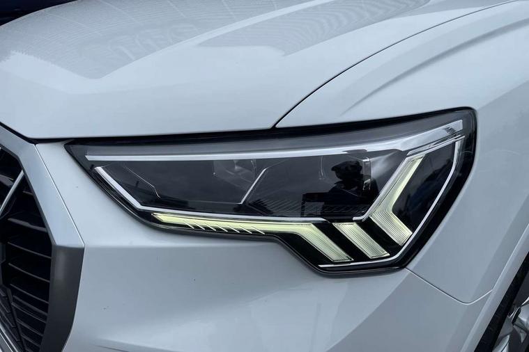 Audi connect safety and service (e-call), Audi drive select, Audi lane departure warning, Audi Virtual Cockpit - 10.25" display, Bluetooth interface, Camera based traffic sign recognition, MMI Navigation Plus with high resolution 10.1 inch touchscreen colour display, Power operated tailgate, Progressive steering, Service interval indicator, Smartphone interface includes wireless Apple carplay/Android Auto, Start stop system with recuperation, Voice control system with natural language interaction, 48V Mild hybrid technology, Sports suspension, 2 USB-C ports with charge and data functions, 6 passive loudspeakers, DAB digital radio module, Acoustic windscreen, Aluminium roof rails, Aluminium window trim, Auto dimming frameless rear view mirror, Body coloured bumpers, Electrically folding, adjustable and heated door mirrors with integrated LED side indicators and kerb view function for passenger side, Front and rear electric windows, Front fog lights, Front side air inlets in matt platinum grey, Front spoiler blade in matt platinum grey, Grille vertical bars in aluminium silver/Matt, High gloss black finish B and C pillars, LED headlights with LED daytime running lights and dynamic rear indicator, LED rear lights, Privacy glass dark tinted rear and rear-side windows (from B-pillar backwards), Rain and light sensors, Rear diffuser strip in matt titanium black, S line badges on front wings, S Line front and rear bumpers, Side skirt insert in matt Platinium grey, Silver chrome grille surround, Titanium black radiator grille, 12V socket in rear centre console, 40:20:40 folding with manual adjustment for 60:40 forwards/backwards position and backrest angle, Adjustable rear seat bench/backrest with centre armrest and cupholder, Black cloth headlining, Dual zone electronic climate control, Front and rear black floor mats with contrast stitching in rock grey, Front and rear headrests, Front and rear roof module including reading lights, Front centre armrest, Glove compartment lighting, Height and reach adjustable steering wheel, Illuminated door sill trims with S logo, ISOFIX child seat mounting for front passenger with airbag deactivation and outer rear seat including top tether attachment point for outer rear seats, Luggage compartment light, Manual front seats with height adjustment, Perforated leather gearknob, Stainless steel luggage compartment sill finisher, Stainless steel pedals, Non smoking pack - Q3, 3x3 point rear seatbelts, 6 airbags - Driver, front passenger, curtain and side windows, Audi pre-sense front with pedestrain and cyclist recognition, Electrically operated child locks on rear doors, Electromechanical parking brake, Electronic stabilisation control including ABS, ASR and EDL, Hill descent control, Hill hold assist, Pre sense basic, Seatbelt monitoring, Tyre pressure warning, Warning triangle and first aid kit, Anti theft alarm, Anti theft wheel bolts, Remote central locking, Dark matt brushed aluminium inlay, Detail dashboard around MMI touch colour display in glass look, black with surround in aluminium look, Leatherette door armrest, Tool kit, Tyre repair kit,