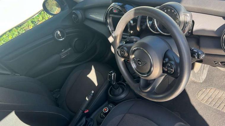 Automatic start/stop function with brake energy recuperation, Compatible mobile phone bluetooth with audio streaming, Electro-mechanical speed dependant steering assistance, Instrument cluster, Mini E-call, MINI TeleServices, On board computer, Service interval indicator, Double Vanos system, Fully variable valve control, Gear change indicator display, High precision injection, Steptronic transmission with double clutch, 6.5" touchscreen with LED ring, FM tuner and DAB digital radio, Automatic headlight activation switch, Body colour fuel filler cap, Chrome border high gloss black slats radiator grille, Dynamic brake lights, Electric front+rear windows, Heated rear window, Heated windscreen washer jets, LED headlight with closed ring and daytime driving lights, Left exhaust tailpipe with chrome finisher, Metal door sill strips with MINI imprint, Model logo Cooper on right of tailgate, Rain sensor window wipers, Rear fog lights, Rear LED lights with union jack design, Rear window wiper, Side scuttle panel with integrated indicator, Sun/heat protection glass, White indicator lenses, 12V Accessory socket in centre console, 4 lashing eyes in luggage compartment, 60/40 split folding rear seat, Chrome interior highlights, Colour line - Carbon black, Cupholders, Front and rear head restraints, Front and rear isofix with front passenger airbag deactivation, Glove compartment, Height and length steering column adjustment, Interior lighting with 12 basic colours selectable via toggle switch in roof, Knee roll and door armrests, Leather gearshift lever and handbrake gaiters, LED reading lights, vanity mirror lights, front foot well light and spotlight on front seats, Manual air conditioning, Mechanical seat adjustment, driver seat height adjust, forward/back and front seats backrest, Mini logo projection on floor from drivers exterior mirror, Multifunction steering wheel, Satellite grey headlining, Satellite grey headlining including grab handles and clothes hooks, Storage compartments in doors, Sunvisors with vanity mirrors, 3 point seatbelts on all five seats, 6 Airbags - front, side, head and seat belt tensioners, Anti-lock braking system (ABS), DSC - Dynamic Stability Control, Front and rear disc brakes, Hill start assist, Single tone fanfare horn, Tyre pressure monitoring system, Alarm system with tilt sensor, monitoring doors, bonnet interior and tailgate, Electronic vehicle immobiliser, Start/stop toggle with keyless go, Tool kit, Tyre repair kit,