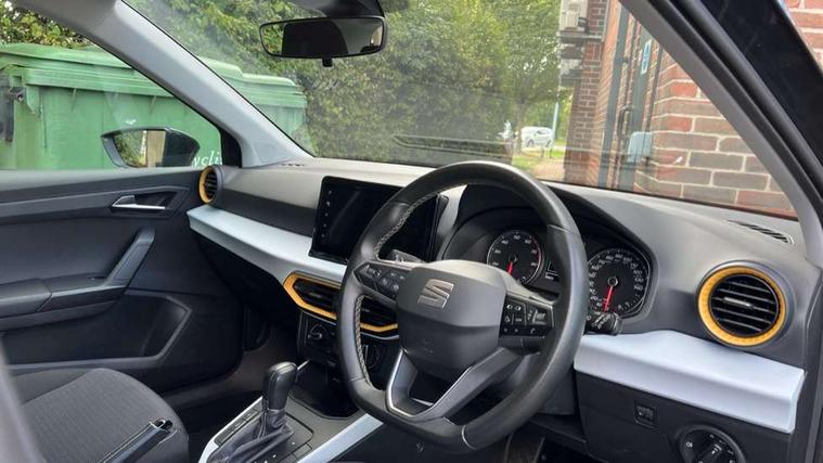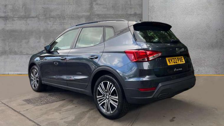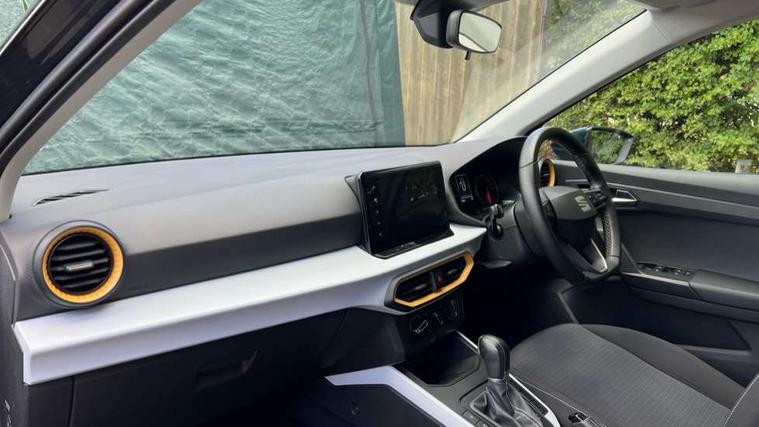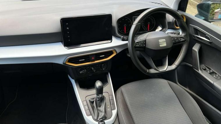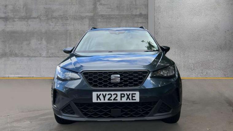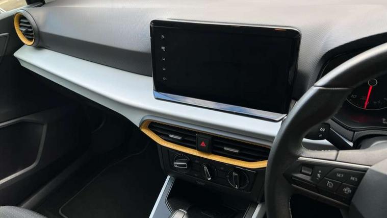 'Lights On' Reminder warning buzzer, 8" Digital cockpit, Cruise control and speed limiter, Digital clock, E-call, Electric speed sensitive power steering, Full Link Smartphone Integration with Mirror Link, Apple Car Play, Google Android Auto with USB cable for Apple and Android compatibility, Lane keeping system, Low fuel warning light, Outside temperature display, Rear parking sensor, RPM counter, Seat connect with safety, service, remote and online, Trip computer, Bluetooth interface for hands free and audio streaming, DAB digital radio and AM/FM radio, Steering wheel mounted audio controls, Anti theft roof antenna, Automatic activation of hazard warning lights, Black roof rails and window surrounds, Body coloured bumpers, Body coloured door handle inserts, Body coloured door mirrors, Dimming rear view mirror, ECO LED automatic headlights and LED daytime running lights, Electric adjustable door mirrors, Electric front/rear windows, Hidden exhaust pipe, Licence plate lights, Protective side mouldings, Rain sensing wipers, Rear fog lights, Rear side wing doors, Rear spoiler, Rear window wash/wipe, Third brake light, Visible VIN plate, Windshield wiper with intermittent control and potentiometer, 2 cupholders, 3 seat bench in 2nd row, 60/40 split folding rear seat, Air conditioning, Cloth upholstery, Double boot floor, Driver sunvisor with covered mirror + card holder, Dust/pollen filter, Flat bottomed leather steering wheel/gear knob/handbrake, Front courtesy light with front reading lights, Gear shift indicator, Grey interior roof, Height adjustable front seats, Height/reach adjustable steering column, Illuminated boot, Instrument lighting with brightness control, ISOFIX points in outer rear seats with top tether anchorage points, Passenger sunvisor with vanity mirror, Single front passenger seat, Two front and three rear height adjustable headrests, Connectivity pack plus - Arona, Interior chrome pack - Arona, 3 point seatbelts on all rear seats, ABS, Active front headrests, Child locks on rear doors, Driver and front passenger airbags with front passenger airbag de activation, front side and curtain airbags, Electronic stability control, Emergency Brake Assist (EBA) and front assist, Front and rear seatbelt reminder, Hill hold control, Multi-Collision braking, Tiredness recognition system, Traction control, Tyre pressure monitoring system, Electronic engine immobiliser, Locking wheel bolts, Remote central locking + deadlocks, Titan black dashboard, 17" Dynamic machined alloy wheels,
