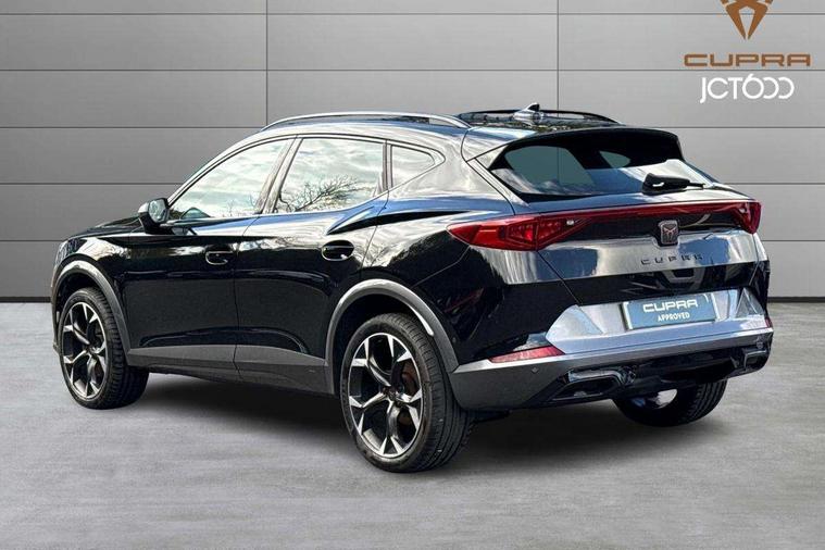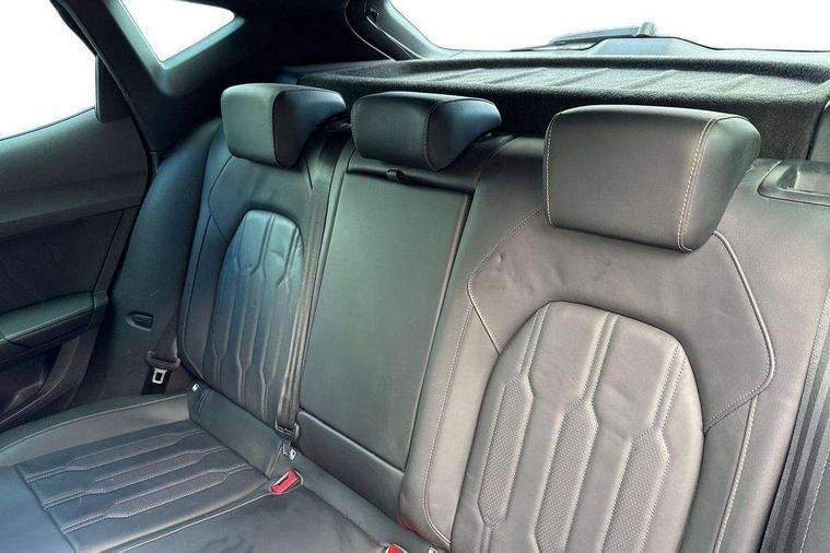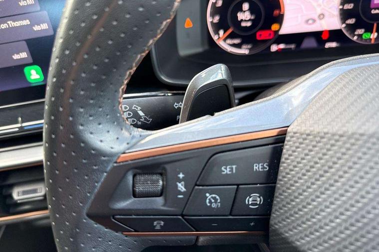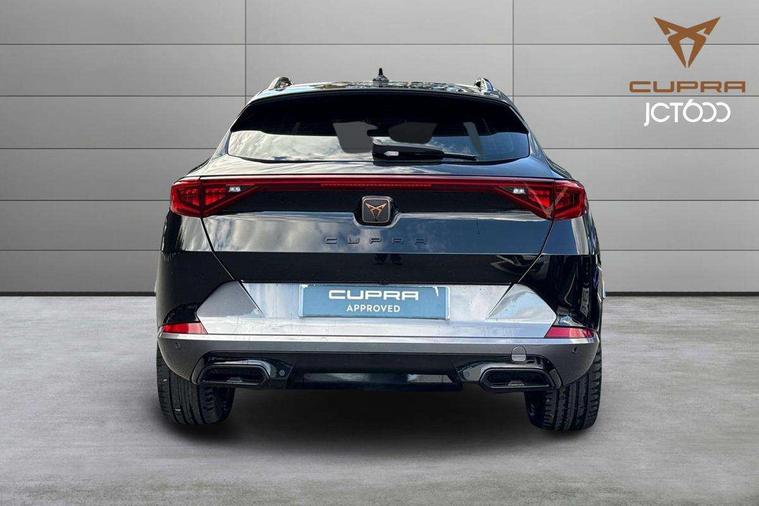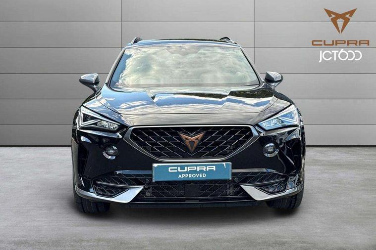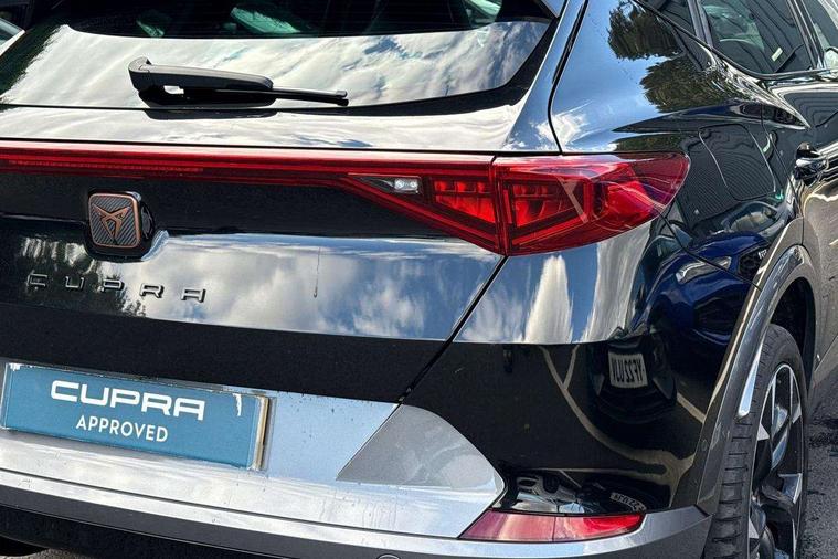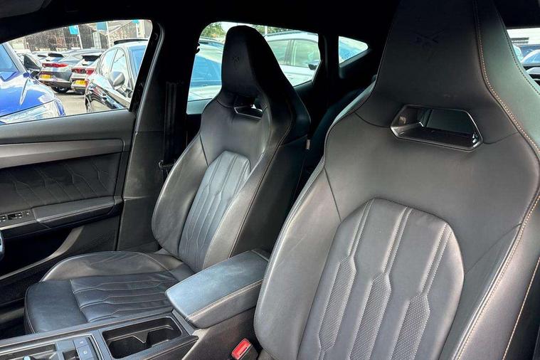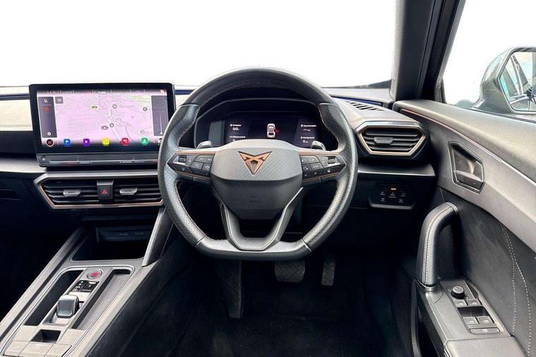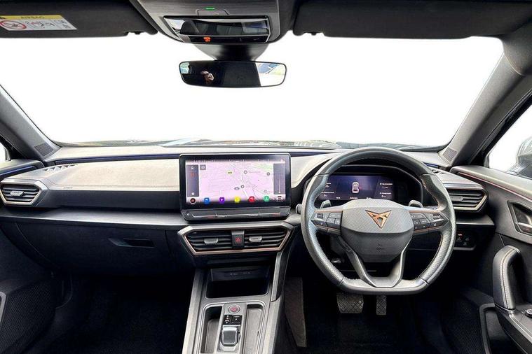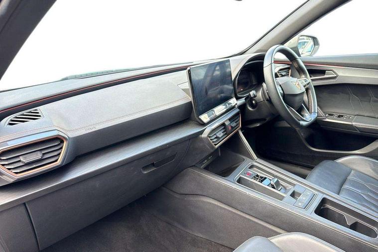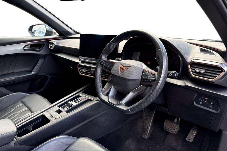 Digital cockpit and configurable dashboard, Driver alert system, Driving profile selection, Forward collision warning with automatic braking, Lane assist, Navigation system with 12'' Touchscreen Display, Park assist (inc front/rear parking sensors), PAS, Predictive adaptive cruise control with speed limiter, Rear view camera, RPM, trip computer, outside temp gauge, instrument light brightness, low fuel warning light, lights on reminder, gearshift indicator, Service interval indicator, Start/stop system with regenerative braking, Voice control system, Wireless apple carplay, Wireless phone charger, Electronic locking differential and dynamic traction support, Standard suspension, 2 front and 2 rear USB type C sockets, Auxiliary input socket, DAB radio, Auto dimming rear view mirror, Body colour door handles, Body coloured bumpers, Dark grey wing mirror, Daytime running light with automatic headlight control and coming home feature, Dynamic headlight range control, Electric front/rear windows, Electrically adjustable heated and folding door mirrors with memory function, Front fog lamps with cornering function, Gloss black roof rails and window surrounds, LED Headlights, LED Taillights with dynamic indicator, Rain sensing wipers, Rear diffuser with black simulated exhaust pipes, Rear side wing doors, Rear wash/wipe, Third brake light, Tinted rear windows, Welcome lights, 12v power supply in centre console, 12V socket, 12v socket in loadspace, 2 front and 2 rear reading lights, 230V socket, 3 seat bench in 2nd row, 60/40 split rear bench seat with armrest and mechanical seat release, Black headlining, Dust/pollen filter, Front and rear head restraints, Front centre armrest, Height/reach adjust steering wheel, Illuminated interior front door sills, Illuminated sunvisor with mirror, Isofix, Leather multi function heated steering wheel with gear shift paddles, Luggage tie-down hooks, Single front passenger seat, Three zone climate control with control panel in rear, Variable luggage/load compartment floor, Wraparound lighting, Genuine Nappa leather Pack - Cupra, 3 point seatbelts on all rear seats, ABS, Brake control system - ESC and brake booster, Child proof door locks, Driver and front passenger airbags with front passenger airbag de-activation, Electronic parking brake, Front and rear disc brakes, Front side curtain airbags, Hill hold control, Public e-call, Seat belt reminder for front and rear seats, Tyre pressure monitoring system, Anti theft alarm system, Keyless entry and start system (KESSY), Locking wheel bolts, Copper and aluminium interior detailing, 19" 'Exclusive' machined sport matte black and silver alloy wheels,