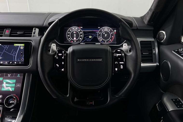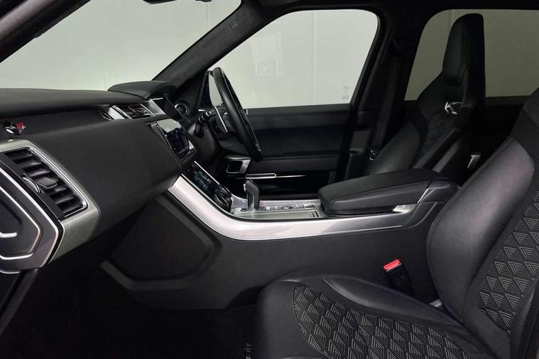 360 Parking aid, All Terrain Info Centre, Android Auto, Apple car play, Bluetooth connectivity, Clear exit monitor, Driver condition monitor, Electric power assisted steering (EPAS), Incontrol apps in vehicle touchscreen, Interactive Driver display instrument cluster, Mist sensor, Navigation pro system with 10" touch screen, app interface and media storage, Powered gesture tailgate/boot lid, Pro services and wifi hotspot, Push button start, Rear traffic monitor, Remote premium - Upgraded Incontrol remote app including remote climate control (engine dependent), remote lock + Unlock and remote beep + flash, Touch pro duo system, Traffic sign recognition with adaptive speed limiter, Trip computer, Adaptive dynamics, All terrain progress control, Configurable dynamics, Electronic active differential with brake torque vectoring, Gradient release control (GRC), SVR sports suspension with dynamic response (active roll control), Terrain Response 2 with dynamic program, Twin speed transfer box, Bluetooth audio streaming, DAB Radio (Digital Audio Broadcasting), Incontrol protect - SOS emergency call with automatic collision detection, optimised assistance call and Incontrol remote app essential, USB/aux input socket, Acoustic front and toughened rear side glass, Acoustic laminated front windows, Active exhaust system with integrated exhaust mounted quad tailpipes, Adaptive brake lights, Auto dimming interior rear view mirror, Automatic headlights, Body coloured side sills and bumpers corners, Centre high mounted stop light, Electric windows with one touch open/close and anti trap, Electrical towing preparation, Follow me home lighting, Front and rear recovery eyes, Headlight power wash, Heated rear window, Heated windscreen includes heated washer jets, Illuminated metal treadplates with brand name script, LED rear lamps, Power fold, auto-dimming, heated door mirrors with memory and approach lights, Rain sensing windscreen wipers, Rear fog lights, Rear side wing doors, Rear wash/wipe, Remote window closing, Side repeater indicators in mirror, SVR badge, SVR exterior styling, Switchable sports exhaust, Trailer stability assist, Unique light weight exhaust system, 16 way driver/passenger electrically adjustable SVR performance seats with memory, 2 way rear head restraints, 3 seat bench in 2nd row, 4 way lumbar support with memory function, 60/40 split folding rear seat, Aluminium gear shift paddles, Auto air recirculation, Bright metal foot pedals, Centre console with armrest, Climate control memory, Configurable Ambient interior lighting, Customer configurable single point entry, Driver's footrest, Extended leather upgrade includes door top rolls and leather instrument panel mid section, Front and rear cupholders, Front and rear premium carpet mats, Front door storage space, Front map lights, Front seat back map pockets, Front stowage pocket, Front/rear passenger grab handles, Heated steering wheel, Integrated front head restraints, Isofix child seat preparation, Loadspace light, Loadspace mounting provisions, Lockable glovebox, Multifunction steering wheel, Pollen filter, Power socket, Reach/rake electric adjustable steering column + entry/exit tilt away, Rear centre armrest, Rear ISOFIX, Roller blind loadspace cover, Single front passenger seat, Sports pedals, SVR leather steering wheel, SVR Performance seats, Three 12V accessory power outlets, Smartphone pack - Range Rover Sport, 3 point seatbelts on all seats, Anti-lock braking system (ABS), Brake pre-fill technology, Cornering brake control (CBC), Curtain airbags, Customer configurable autolock, DSC - Dynamic Stability Control, Dual stage driver/passenger airbags, EBD - Electronic brakeforce distribution, Electric parking brake, Electronic traction control, Emergency braking includes city, urban AEB and pedestrian, Front seatbelt pretensioners, Gradient acceleration control, Height adjustable front seatbelts, High speed emergency braking, Hill descent control, Hill launch assist, Low traction launch, Passenger seat occupant detector with front airbags, Power operated child locks, Roll stability control, Seatbelt warning, TPMS (Tyre pressure monitoring system), Immobiliser, Intrusion sensor, Keyless entry, Locking wheel nuts, Perimetric and volumetric anti theft alarm, Remote locking,
