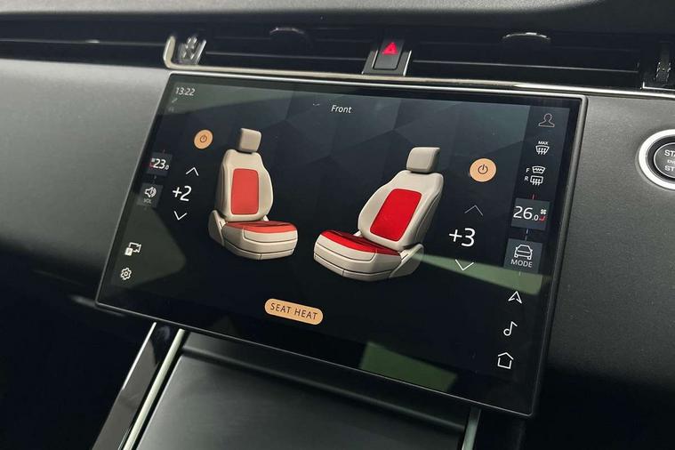 11.4" touch screen, Adaptive cruise control, Android Auto, Apple car play, Bluetooth connectivity, Brake pad wear indicator warning light, Digital driver display, Driver condition monitor, eCall emergency system, Eco mode, Electronic power assisted steering (EPAS), Front and rear parking aid, InControl remote, Land Rover InControl apps, Lane keep assist, Pivi pro connected includes diamond pivi variant, smart settings, connected navigation pro, nuance speech licence, Push button starter, Tailgate, Traffic sign recognition with adaptive speed limiter, Voice control system, Wireless device charging, All terrain progress control, Efficient Driveline, Terrain Response 2, Digital Audio Broadcast radio-DAB, Steering wheel mounted controls, Acoustic laminated windscreen, Auto headlights, Electric windows with one touch open/close and anti trap, Flush deployable exterior door handles, Front and rear recovery eyes, Heated rear window with timer, Heated washer jets, Heated windscreen, LED headlights with Daytime running light and LED tail lights, Manual headlight levelling, Power fold, auto-dimming, heated door mirrors with approach lights and auto dimming driver side, Rain sensing windscreen wipers, Rear animated directional indicators, Rear fog lights, Rear side wing doors, Rear wiper, Side repeater indicators in mirror, Tailgate spoiler, Third brake light, Winter wiper park position, 40:20:40 split folding rear seats with centre headrest and armrest, Ambient interior lighting, Carpet mats, Customer configurable single point entry, Front and rear cupholders, Heated front seats, Heated steering wheel, Isofix system on outer rear seats, Manually adjustable steering column, Overhead lighting console, Overhead stowage for sunglasses, Passive front head restraints, Rear air vents, Rear head restraints, Satin chrome gearshift paddles, Single passenger seat, Standard steering wheel with Moonlight Bezel, Standard tread plates with range rover branding, Sunvisors with illuminated vanity mirrors, Twin sliding front centre armrest, Power socket pack 2 - Evoque, 3 rear 3 point seatbelts, Anti-lock braking system (ABS), Brake hold function, Customer configurable autolock, DSC - Dynamic Stability Control, Electronic brake force distribution, Electronic parking brake, Electronic traction control, Emergency braking, Front and rear seatbelt reminder, Hill descent control, Hill launch assist, Low traction launch, Occupant protection assist, Passenger seat occupant detector, Power operated child locks, Roll stability control, Six airbags - Driver and passenger airbags/driver knee airbag/front side airbag and curtain airbags, Torque vectoring brake, Tyre pressure monitoring system, Alarm, Immobiliser, Intrusion sensor, Keyless entry, Locking wheel nuts, All season tyres,
