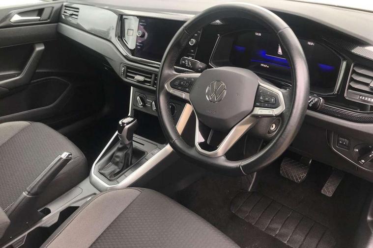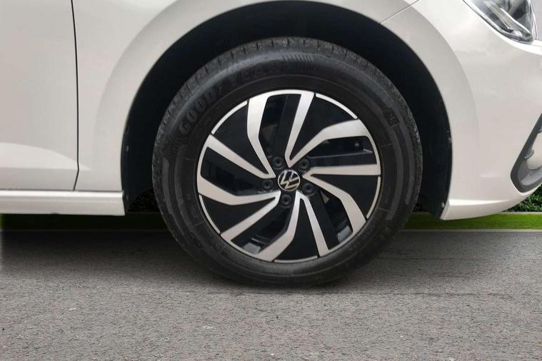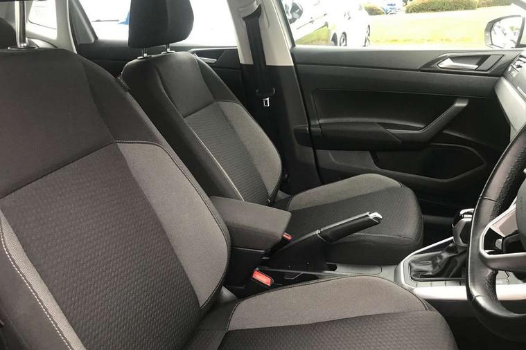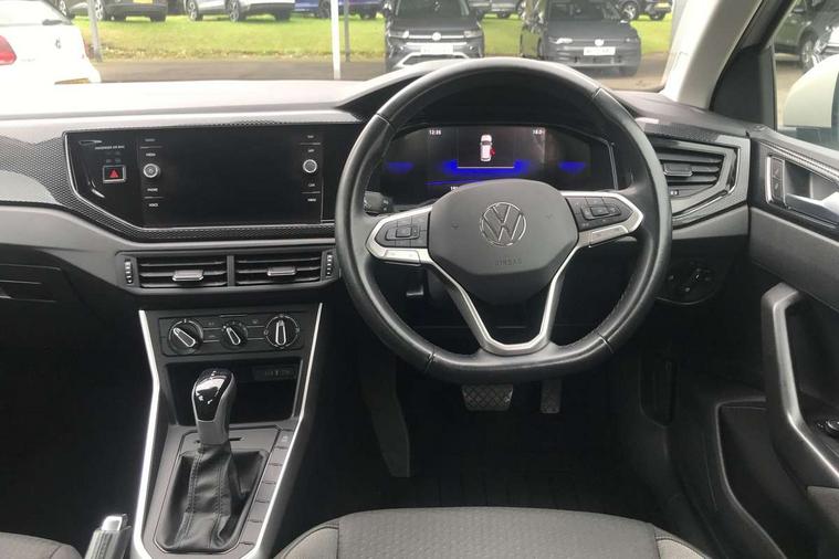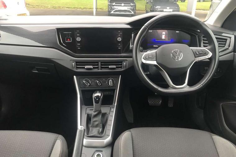 Adaptive cruise control with follow-to-stop and speed limiter, Advanced driver attention and drowsiness monitor, Bluetooth mobile phone interface, Dynamic road sign display, Emergency call service, Power assisted speed sensitive steering, Preparation for navigation system with media and internet package, Preparation for We connect and We connect plus, Speedo and rev counter, electronic odometer, trip, service interval display and exterior temperature gauge, Standard rear axle, Travel Assist - Lane keeping system and traffic jam assist, Travel assist including emergency assist, Trip computer, Warning signal and warning light for front and rear seatbelts not fastened, Washer fluid level indicator, Wireless app connect, Front wheel drive, Rear shock absorpion, Start-stop system with battery regeneration (recuperation - energy recovery during braking), DAB Digital radio, Diversity antenna for FM reception, Automatic dimming interior rear view mirror, Automatic headlight control with LED separate daytime running lights with coming/leaving home function, Body colour bumpers with chrome inserts, Body colour door handles, Body colour door mirrors, Electric front windows, Engine badge deletion, Headlight range adjustment, Heat insulating and laminated safety glass windshield, Heat insulating darkened glass in side and rear windows, Heat insulating glass windscreen, LED Headlights, LED rear combination lamps, Power folding adjustable/heated exterior mirrors and front passenger exterior mirror lowering function, Rain sensor, Rear electric windows, Rear fog light, Rear side wing doors, Rear windscreen washer and wiper with interval delay, Third brake light, 12V power socket in centre console, 2 front and 2 rear reading lights with switch off delay and dimmer, 2 USB-C ports in the front, 2 USB-C charging sockets on the center console in the rear, 3 rear head restraints, 60/40 split folding rear seat and rear seat bench not split, Ceramique roof lining, Chrome plated radiator grille inserts, air vent surrounds and light switch surrounds, Door and side trim panel, Driver and front passenger seat height adjustment, Driver/passenger sunvisors with illuminated vanity mirrors, Front centre armrest, Front seat backrest storage pockets, Front standard seats, Handbrake lever handle in leather, Hartley/Thomas cloth upholstery, Headliner in recycled material, Isofix child seat preparation easy-fit (for two outer rear seats, and front passenger seat) compatible with I-size, Leather trimmed gear knob, Luggage compartment cover, Luggage compartment lighting, Removable luggage compartment floor, Single front passenger seat, Standard climatic zones, Standard pedal cluster, Three spoke leather wrapped multifunction steering wheel with shifting paddles, Light and vision pack - Polo, 3 point height adj front seatbelts + pretensioners, 3x3 point rear seatbelts, ABS, Driver and front passenger airbag with front passenger airbag deactivation, Drivers and front passengers safety optimised head restraints, ESC (Electronic stability control) + EDL (Electronic Differntial lock) and ASR (Traction control), Extended and predictive pedestrian/ cyclist protection, Front assist with autonomous emergency braking (for Adaptive Cruise Control ACC up to 130 mph), Front curtain and side airbags with center airbag, Front disc brakes, Hill hold control, Manual child lock in rear doors, Rear drum brakes, Single tone horn, Tyre pressure loss indicator, Alarm with interior protection, Anti-theft alarm system with interior monitoring, backup horn, and towing protection, Anti-theft wheel bolts, Electronic engine immobiliser, Lava stone black gloss/matt decorative inserts in dash and front door panels, Low rolling resistance tyres,