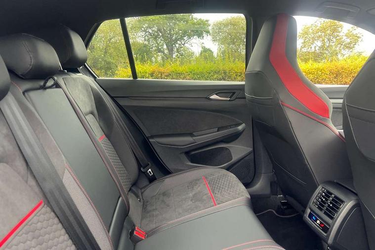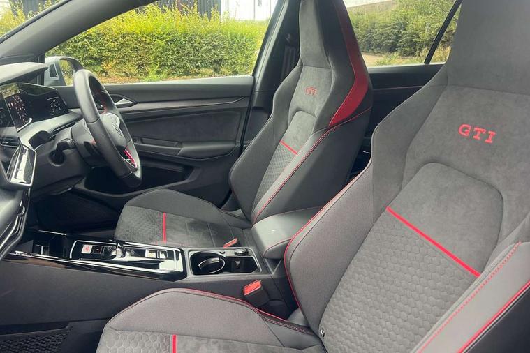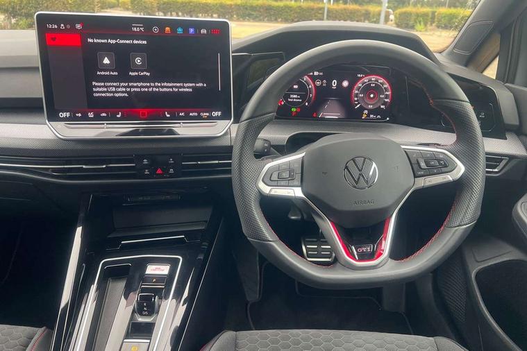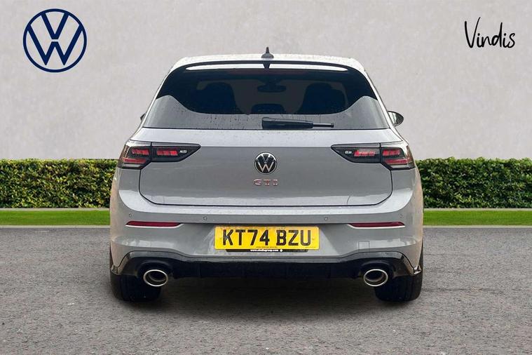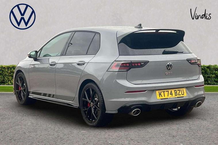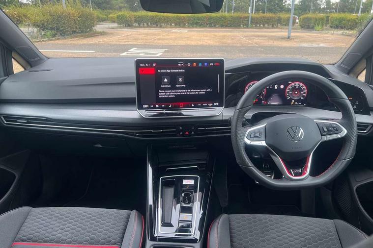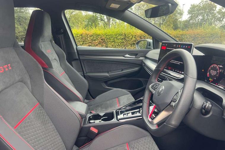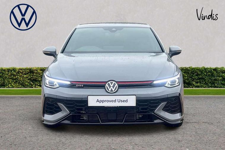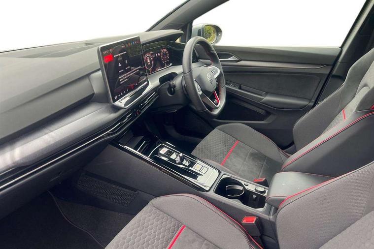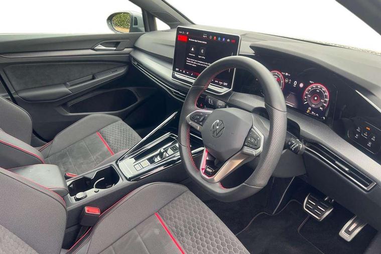 Activated carbon canister, Adaptive cruise control (ACC), Advanced driver attention and drowsiness monitor, Dynamic road sign display, E-Sim card for online connectivity, eCall emergency call system, Lane change system side assist, rear traffic alert and exit warning system, Multi-color Digital cockpit pro, selection of different info profile possible, Multifunction front facing camera for distance control, Navigation system, Oncoming vehicle braking when turning including swerve support, Preparation for light assist system, Progressive steering, Speed limiter, Speedo, rev counter, electronic odometer, trip, service interval display, exterior temperature and fuel gauge, Traffic jam assist, Voice enhancer and voice control, Warning signal and warning light for front and rear seatbelts not fastened, We connect plus preparation, We connect preparation, Wireless app connect, Front differential lock, Petrol Particulate Filter, Sports suspension, Start-stop system with battery regeneration (recuperation - energy recovery during braking), 2 USB C ports in front, 2 USB charging sockets on the centre console in the rear charging capacity upto 45W, Comfort telephony + wireless charging, without wireless aerial connection, Digital radio reception (DAB), Diversity antenna for FM reception, Gaming platform via car app, Infotainment system with 12.9" display, Mobile phone interface with inductive charging feature, 3rd brake light, Auto dimming rear view mirror, Auto headlights, Automatic headlamp activation with Coming home and Leaving home feature, Body colour door handles, Bumpers in "Clubsport", air intake in honeycomb structure, Exterior ambient lighting with illuminated lighting animation and wake up/goodbye scenario, Exterior mirrors convex on the left and aspherical on the right, Front and rear electric windows, Front fog lamps and cornering light, Heat insulating windshield made of laminated glass, LED daytime running lights, Nameplate 'GTI' set, Rain sensor, Rear fog light on one side and reversing lights on both sides, Rear side wing doors, Rear windscreen washer and wiper with interval delay, Remote electrically foldable door mirrors, puddle lights and reverse activated passenger's door mirror, Welcome light with surround lighting, 12V socket in front centre console, 12V socket in luggage compartment, 3 rear head restraints, 3 seat bench in 2nd row, 30 colour ambient lighting, illuminated center console storage compartment in front, Air care climatronic 3 Zone automatic climate control with rear air conditioning control panel, Aluminium gearshift handle, Brushed stainless steel pedals, Carpet mats, front and rear, Chrome plated radiator grille inserts, air vent surrounds and light switch surrounds, Front centre armrest, ISOFIX anchors for child seats on outer rear bench seats and on front passanger seat compatible for i-Size, Luggage compartment lighting, Rear cupholder and loadthough, Single front passenger seat, Soul black instrument panel, Split folding backrest with centre armrest and unsplit rear seat bench, Storm grey roof lining, Sun visors with illuminated vanity mirrors, Driver assistance pack - Golf DSG Estate/Hatchback, Technology park and comfort pro package - Golf Hatchback, 3 point height adj front seatbelts + pretensioners, 3 rear three point seatbelts, ABS, Autonomous emergency braking front assist with pedestrian and cyclist monitoring, Child locks on rear doors, Driver and front passenger airbag with front passenger airbag deactivation, Electronic parking brake with auto hold, ESC (Electronic Stability Control), Extended pedestrian protection measures, Hill start assist, Rear disc brakes, Two tone horn, Tyre pressure loss indicator, Volkswagen roadside assistance, Anti theft wheel bolts, Preparation for alcohol interlock, Decorative inserts carbon grey for dashboard and front door trim panels,