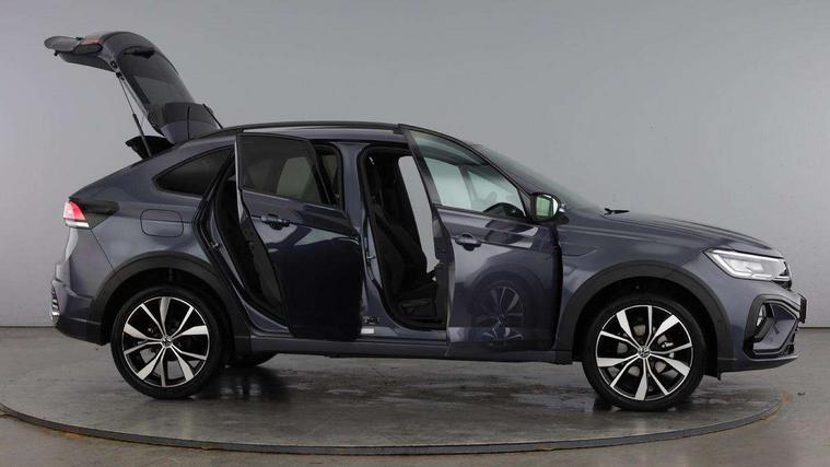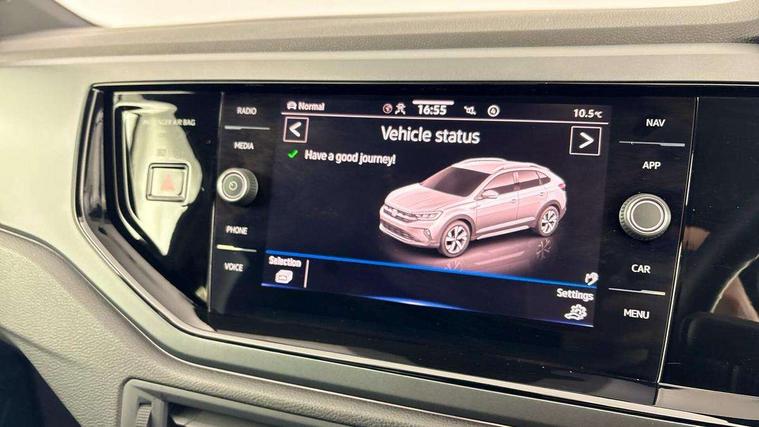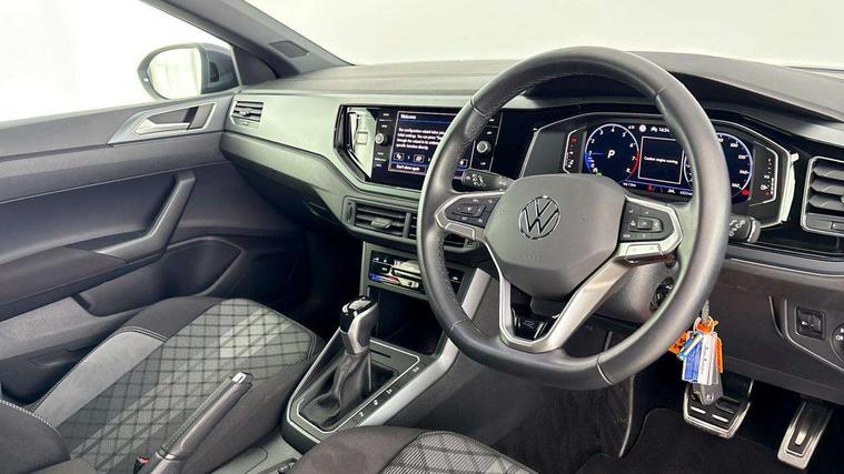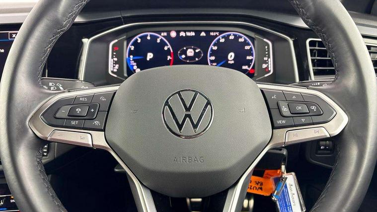Adaptive cruise control, Advanced driver attention and drowsiness monitor, App-Connect including App-Connect Wireless, Digital cockpit pro - 10.25" high resolution TFT dash display screen with customizable menus and information, Driving profile selection, Dynamic road sign display, e-Call (emergency call), Power Steering, Travel assist including emergency assist, Washer fluid level indicator, Wireless Charging including Bluetooth, Start-stop system with battery regeneration (recuperation - energy recovery during braking), XDS electronic differential lock for improved traction and handling, Digital radio reception (DAB+), Diversity antenna for FM reception, WeConnect plus, Ambient lighting with logo projection, Aspherical driver's exterior mirror, Auto headlights, Body coloured bumpers, Bumpers in R-Line style, Electric windows, External USB type C socket and charging sockets, Front scuff plates with R-Line logo, LED rear combination lamp, LED third brake light, Left convex exterior mirror, Power folding adjustable/heated exterior mirrors and front passenger exterior mirror lowering function, Rear fog light on one side, reversing light on both sides, Rear side wing doors, Rear wash/wipe with intermittent wipe setting, 12V socket in centre console, 2 front reading lights, 3 rear head restraints, 3 seat bench in 2nd row, Air care climatronic air conditoning system with active combination filter and 2-zone temperature control, Black carpets, Black roof lining, Child seat anchor for child seat system i-Size, 2x top tether and child seat anchor in front on front passenger side, Chrome bezel for instrument cluster, vents, door handles + gear shift, Driver and front passenger seat height adjustment, Front + rear carpet mats, Front centre armrest, Front footwell illumination, Front sports comfort seats, Height and reach adjustable steering wheel, Interior ambient lighting and surround lighting, Karoso artvelours cloth upholstery, Leather trimmed gear knob, Leather wrapped multifunction steering wheel, Luggage compartment floor, Luggage compartment light, Lumbar support for driver's and front passengers seat, Seat covers in grey + titanium black, Single front passenger seat, Split folding backrest with centre armrest and unsplit rear seat bench, Stainless steel pedals, Storage compartment under front seats, Sun visors with illuminated vanity mirrors, Chrome Package - Taigo, Drivers assistance pack - Taigo, Light and Sight pack including High beam assist - Taigo, 2 x 3-point seatbelts/outer rear seats with ECE label, 3-point seat belts in front with pretensioner and height adjustment, 3-point seatbelt for centre rear seat, Adaptive driver and front passenger airbags with passenger airbag deactivation function, Driver and front passenger safety-optimised head restraints, Electronic stability control, Extended and predictive pedestrian/ cyclist protection, Front and rear disc brakes, Front curtain and side airbags with center airbag, Hill start assist, Manual rear child locks, Single tone horn, Tyre pressure loss indicator, Anti-theft alarm system with interior monitoring, backup horn, and towing protection, Grey anodised matte decorative inserts in dash and front door panels, Low rolling resistance tyres,