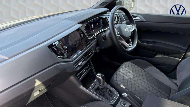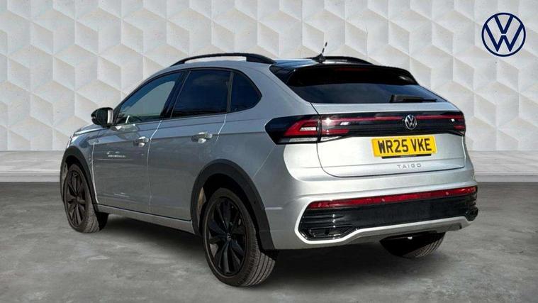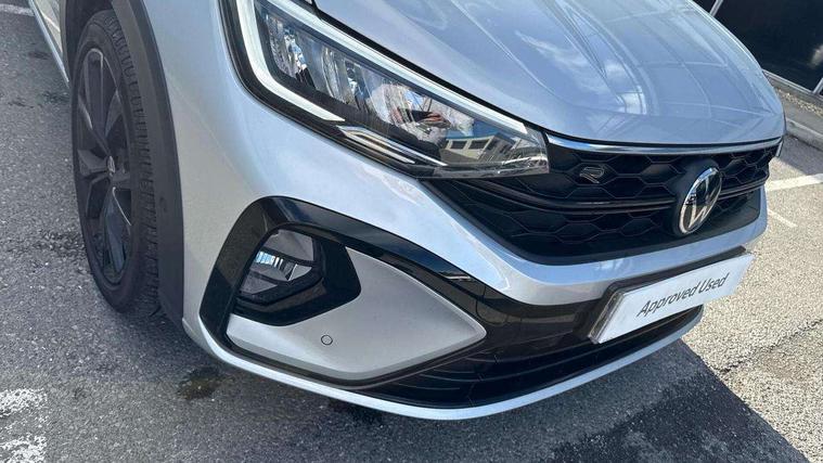 Adaptive cruise control, Advanced driver attention and drowsiness monitor, App-Connect including App-Connect Wireless, Digital cockpit pro - 10.25" high resolution TFT dash display screen with customizable menus and information, Driving profile selection, Dynamic road sign display, e-Call (emergency call), Power Steering, Travel assist including emergency assist, Washer fluid level indicator, Wireless Charging including Bluetooth, Start-stop system with battery regeneration (recuperation - energy recovery during braking), XDS electronic differential lock for improved traction and handling, Digital radio reception (DAB+), Diversity antenna for FM reception, WeConnect plus, Ambient lighting with logo projection, Aspherical driver's exterior mirror, Auto headlights, Body coloured bumpers, Bumpers in R-Line style, Electric windows, External USB type C socket and charging sockets, Front scuff plates with R-Line logo, LED rear combination lamp, LED third brake light, Left convex exterior mirror, Power folding adjustable/heated exterior mirrors and front passenger exterior mirror lowering function, Rear fog light on one side, reversing light on both sides, Rear side wing doors, Rear wash/wipe with intermittent wipe setting, 12V socket in centre console, 2 front reading lights, 3 rear head restraints, 3 seat bench in 2nd row, Air care climatronic air conditoning system with active combination filter and 2-zone temperature control, Black carpets, Black roof lining, Child seat anchor for child seat system i-Size, 2x top tether and child seat anchor in front on front passenger side, Chrome bezel for instrument cluster, vents, door handles + gear shift, Driver and front passenger seat height adjustment, Front + rear carpet mats, Front centre armrest, Front footwell illumination, Front sports comfort seats, Height and reach adjustable steering wheel, Interior ambient lighting and surround lighting, Karoso artvelours cloth upholstery, Leather trimmed gear knob, Leather wrapped multifunction steering wheel, Luggage compartment floor, Luggage compartment light, Lumbar support for driver's and front passengers seat, Seat covers in grey + titanium black, Single front passenger seat, Split folding backrest with centre armrest and unsplit rear seat bench, Stainless steel pedals, Storage compartment under front seats, Sun visors with illuminated vanity mirrors, Chrome Package - Taigo, Drivers assistance pack - Taigo, Light and Sight pack including High beam assist - Taigo, 2 x 3-point seatbelts/outer rear seats with ECE label, 3-point seat belts in front with pretensioner and height adjustment, 3-point seatbelt for centre rear seat, Adaptive driver and front passenger airbags with passenger airbag deactivation function, Driver and front passenger safety-optimised head restraints, Electronic stability control, Extended and predictive pedestrian/ cyclist protection, Front and rear disc brakes, Front curtain and side airbags with center airbag, Hill start assist, Manual rear child locks, Single tone horn, Tyre pressure loss indicator, Anti-theft alarm system with interior monitoring, backup horn, and towing protection, Grey anodised matte decorative inserts in dash and front door panels, Low rolling resistance tyres,