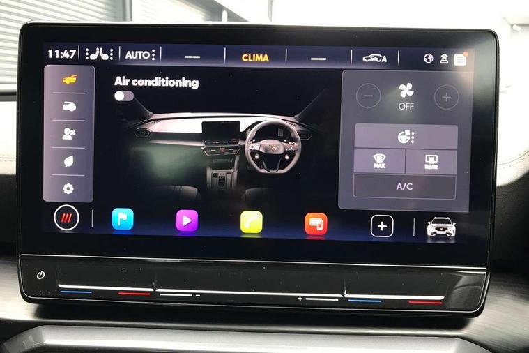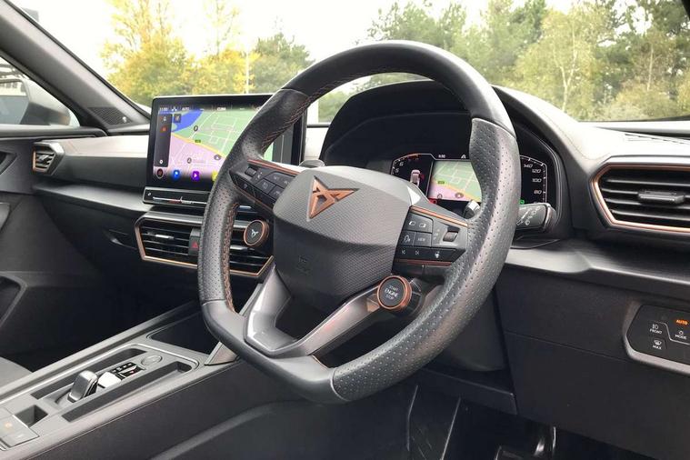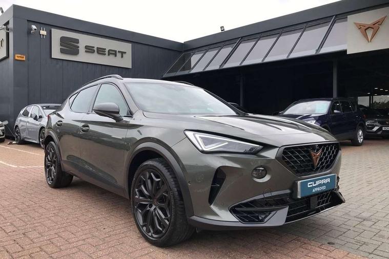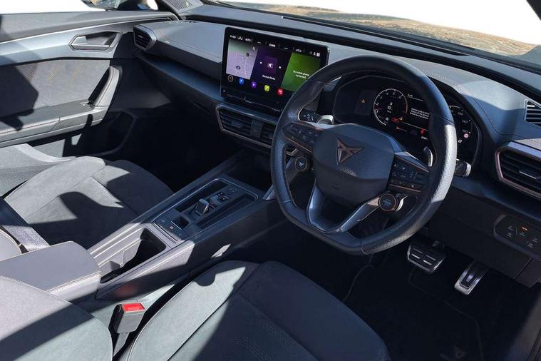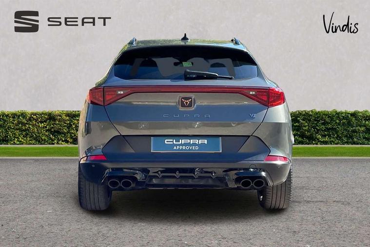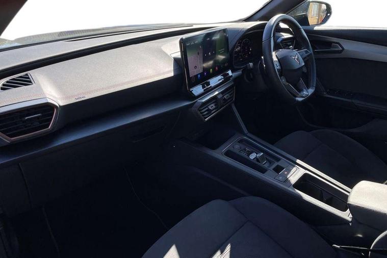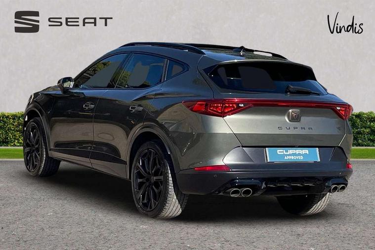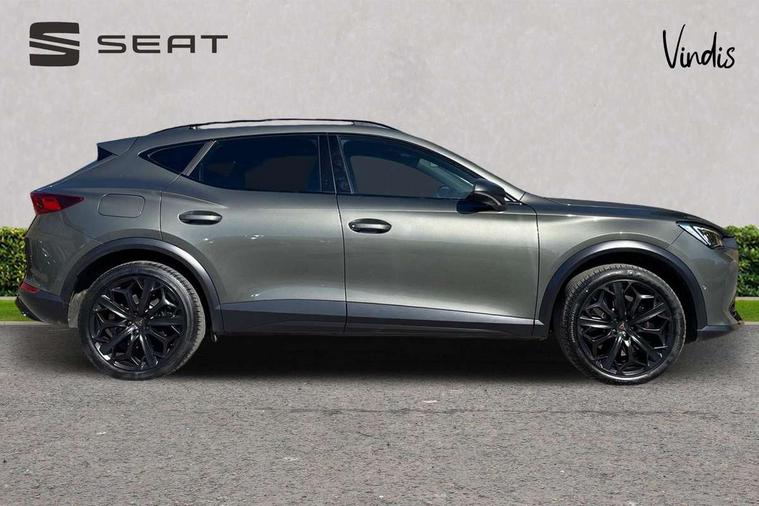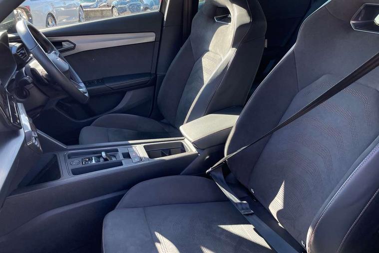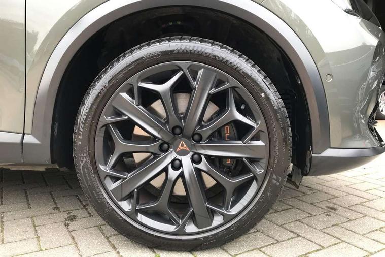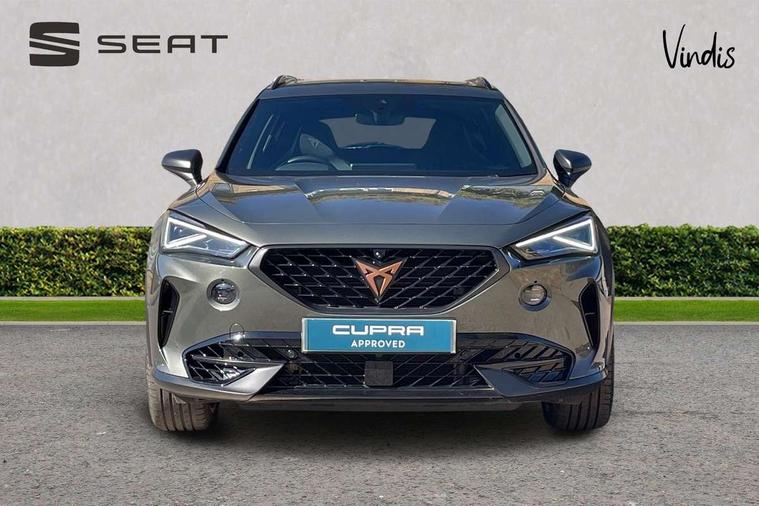 Digital cockpit and configurable dashboard, Driver alert system, Dynamic chassis control with driving profile selection (Comfort, Sport, CUPRA, Individual), Forward collision warning with automatic braking, Lane assist, Navigation system with 12'' Touchscreen Display, Park assist (inc front/rear parking sensors), Predictive adaptive cruise control with speed limiter, RPM, trip computer, outside temp gauge, instrument light brightness, low fuel warning light, lights on reminder, gearshift indicator, Service interval indicator, Speed sensitive power steering, Start/stop system with regenerative braking, Top view camera, Virtual pedal and electric tailgate, Voice control system, Wired Android Auto, Wireless apple carplay, Wireless phone charger, Electronic locking differential and dynamic traction support, Sports suspension with front shock absoption, 2 front and 2 rear USB type C sockets, Auxiliary input socket, Beats audio with 9 speakers plus subwoofer and 340W amplifier, DAB radio, Auto dimming rear view mirror, Body colour door handles, Body coloured bumpers, Cupra exterior black lettering, Daytime running light with automatic headlight control and coming home feature, Dynamic headlight range control, Electric front/rear windows, Electrically adjustable heated and folding door mirrors with memory function, Front fog lamps with cornering function, Front grill, cladding parts and exterior mirros housing painted in sport black matte, Gloss black roof rails and window surrounds, LED Taillights with dynamic indicator, Matrix LED headlights, Panoramic sunroof, Rain sensing wipers, Rear diffuser with twin exhaust pipe on each side, Rear side wing doors, Rear wash/wipe, Sports bumpers, Third brake light, Tinted rear windows, Welcome lights, 12v power supply in centre console, 12V socket, 12v socket in loadspace, 2 front and 2 rear reading lights, 230V socket, 3 seat bench in 2nd row, 60/40 split rear bench seat with armrest and mechanical seat release, Black headlining, Cupra sports pedals, Dinamica/leather upholstery + bucket seats, Dust/pollen filter, Electrically adjustable with memory function for driver seat, Front and rear head restraints, Front centre armrest, Heated front seats, Height/reach adjust steering wheel, Illuminated interior front door sills, Illuminated sunvisor with mirror, Isofix, Leather heated multi-function sports steering wheel with start stop, CUPRA mode button and gear shift paddles, Luggage tie-down hooks, Single front passenger seat, Three zone climate control with control panel in rear, Variable luggage/load compartment floor, Wraparound lighting, Safety and driving pack (XL) - Formentor, 3 point seatbelts on all rear seats, ABS, Brake control system - ESC and brake booster, Child proof door locks, Driver and front passenger airbags with front passenger airbag de-activation, Electronic parking brake, Front and rear disc brakes, Front side curtain airbags, Hill hold control, Public e-call, Seat belt reminder for front and rear seats, Tyre pressure monitoring system, Anti theft alarm system, Keyless entry and start system (KESSY), Locking wheel bolts, Copper and aluminium interior detailing, Leather dashboard, dinamic door insert and side trim panel, 19" Sport matt black alloy wheels, Tyre repair kit,