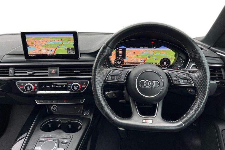 7" Colour driver information system, Audi connect, Audi drive select, Audi parking system plus with front and rear sensors, Audi smartphone interface, Automatic start-stop system with coasting functionality and efficiency programme, Bluetooth interface, Electric boot release, Electro-mechanical power steering, MMI Navigation, Service interval indicator, Voice control system, CD player, DAB Digital radio, Two SDXC card slots, Air inlets in titanium black with matt aluminium inlay, Auto dimming rear view mirror, Body colour bumpers, Chrome plated exhaust pipe, Electric adjustable heated door mirrors, Electric front windows, Front fog lights, High beam assistant, High gloss black door mirrors, Rain and light sensors, Rear diffuser in Twilight grey matt with honeycomb grille, S Line body styling, S line sill plates, S style high gloss black rear spoiler, Side and rear windows privacy glass, Titanium black frame and radiator grille, Titanium black front and rear air intakes, Titanium black window surround, Windscreen with acoustic glazing, 2 x USB charging port with aux input socket, 3 spoke flat bottom high multi-function leather steering wheel, 40/20/40 split folding 2 seater rear seat bench with rear centre armrest, Adjustable steering column, Black headlining, Black perforated leather gearknob, Centre console with cupholders, Contrast stitching on seats, steering wheel and gear lever gaiter, Deluxe 3 zone electronic climate control, Front centre armrest, Front head restraints, Front/rear floor mats, Gearshift paddles, Illuminated door sills, ISOFIX child seat mounting and top tether, Jack and tool kit, Luggage compartment mat, Rear headrests, S embossed logo on front sport seats, Stainless steel pedals and foot rest, Non Smokers pack, 6 airbags - Driver, front passenger, curtain and side airbags, Electromechanical parking brake, Electronic Stabilisation Control (ESC) including ABS, ASR and EDL, Front passenger airbag deactivation, Height adjustable front seatbelts, Hill hold function, Multi-Collision braking, Pop-up bonnet for pedestrian protection, Pre sense city, Seatbelt monitoring, Tyre pressure warning, Variable restraint system, Warning triangle and first aid kit, Anti theft alarm system, Anti theft wheel bolts, Immobiliser, Keyless Go, Remote central locking, Piano black finish inlay, 20" 5 arm rotor alloy design wheels with matt titanium finish, Tyre repair kit,