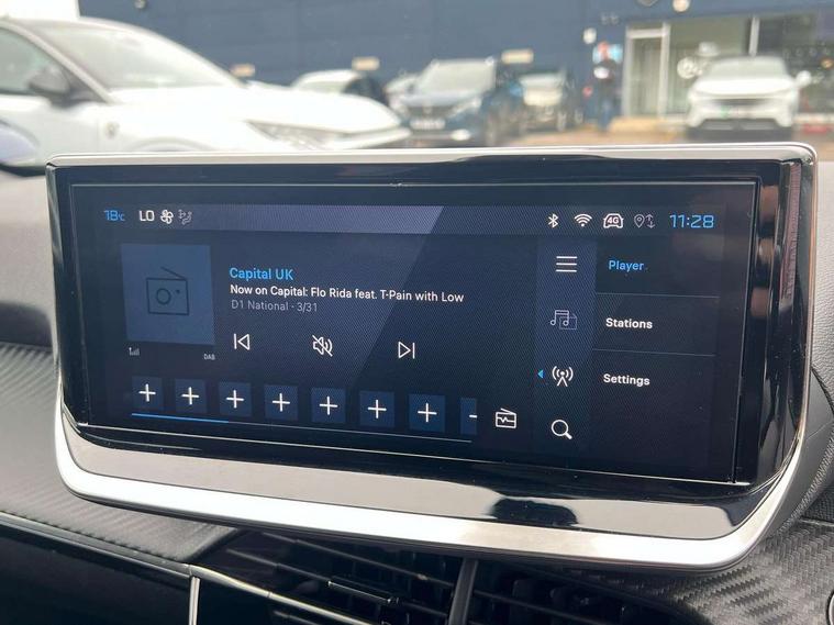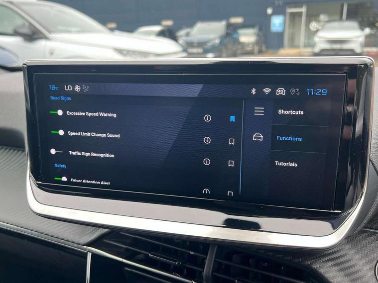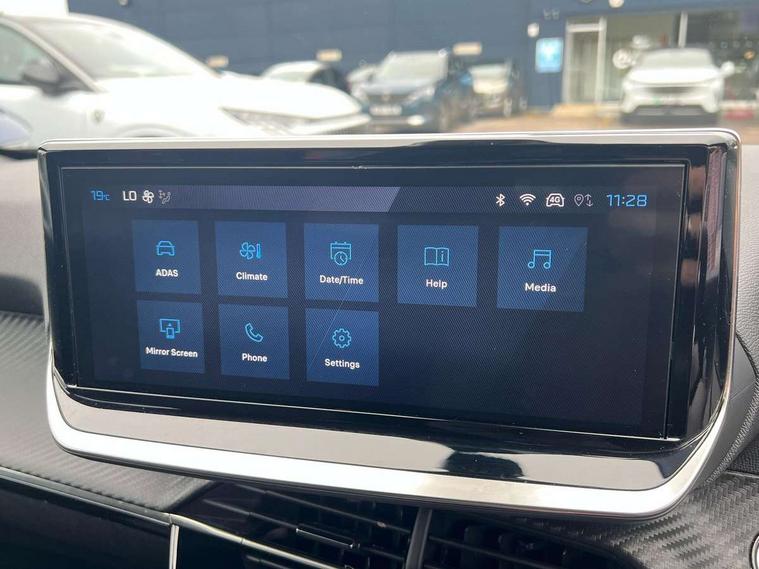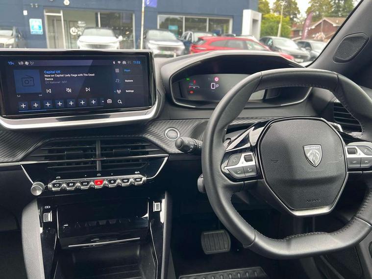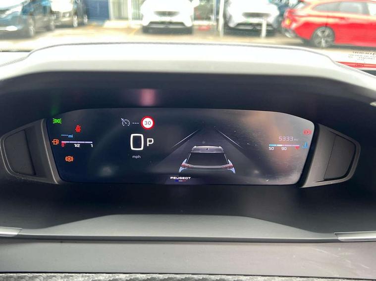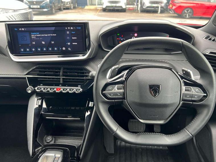 Bluetooth telephone facility, Driver attention warning, E-call, Exterior temperature indicator with ice warning, Front and rear parking sensors, Multi function trip computer, PEUGEOT i-Cockpit with 10" high definition capacitive touchscreen, PEUGEOT i-Cockpit with compact steering wheel, PEUGEOT i-Cockpit with configurable headup instrument panel, Speed limit recognition and recommendation, Wireless mirror screen with apple carplay and android auto, Petrol Particulate Filter, 1x USB-C socket in rear and 1x USB-A socket in rear, 2 USB-C ports in the front, 6 speakers radio with mp3 compatible, DAB Radio (Digital Audio Broadcasting), 2 X Rear number plate lights, Automatic hazard light activation upon heavy brake application, Black front wing trim with gloss black detail, Body coloured exterior door handles, Colour coded rear roof spoiler, Colour coded roof, Dark tinted rear side and tailgate windows, Diamond black mirror shells, Eco LED headlights, Electric, heated, and power folding door mirrors, Electrochrome rear view mirror, Front bumper - Meteor grey lower trim, Gloss black finish on B pillar, Gloss black rear cluster connecting strip, Gloss black roof bars, Headlights left on audible warning, LED daytime running lights with distinctive 3 claw signature, LED side indicator lights integrated into door mirrors, LED third brake light, Model designation badges front and rear, One touch electric front/rear windows with pinch protection, Radiator grille - Body coloured top edge trim, Radiator grille - body coloured vertical chequered grille, Rear full LED 3D peugeot signature claw effect lights with daylight function, Rear reversing lights, Rear side wing doors, Rear windscreen wiper triggered automatically in reverse gear, Tailgate with heated rear windscreen and wiper blade, Twin chromed exhaust pipes, Wheel arch extensions, 1/3 to 2/3 split folding rear seats, 12V socket, 3 seat bench in 2nd row, Automatic air conditioning with pollen and active carbon filter, Central front armrest with storage compartment, Driver and front passenger comfort seats, Driver seat manual adjustment - height, longitudinal and back rest angle, Electric power steering with reach and rake adjustable steering column, Front LED interior light with 2 reading spotlights and rear interior light with timer, Front passenger seat manual adjustment - height, longitudinal and back rest angle, High centre console, Leather steering wheel, Multifunction steering wheel, Piano keys: Gloss black and chrome toggle switches to access main functions of the vehicle and touchscreen functions, Roof lining - Mistral black, Seatbelt unfastened on the move audible and visual alert for front and rear seats, Single front passenger seat, Tri material cloth/leather effect upholstery, Visibility pack - 2008, 2x 2nd row ISOFIX child seat mountings, ABS (Anti-lock Braking System) with EBD (Electronic Brakeforce Distribution) and EBA (Emergency Braking Assistance), Active safety brake with night function/cyclists/pedestrians, Adaptive driver and front passenger airbags with passenger airbag deactivation function, Child locking functionality on rear doors, Driver/front passenger side airbags, Electric parking brake, ESP (Electronic Stability Program) + Hill Start Assist, Front and rear curtain airbags, Front and rear disc brakes, Front and rear three-point retractable seatbelts, with force limiters, Front optimised safety headrests and rear retractable headrests (x3), height adjustable, Tyre pressure sensor, Automatic door locking when moving off, Deadlocks, Electronic code immobiliser, Thatcham category 1 alarm, Carbon effect Dashboard, front and rear door panel finish, 17" Karakoy diamond cut alloy wheels,