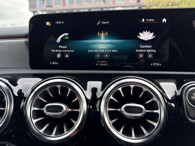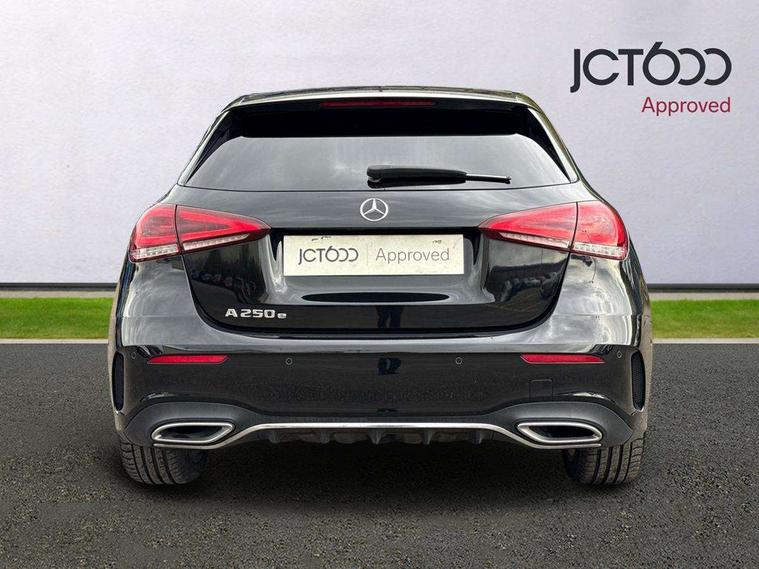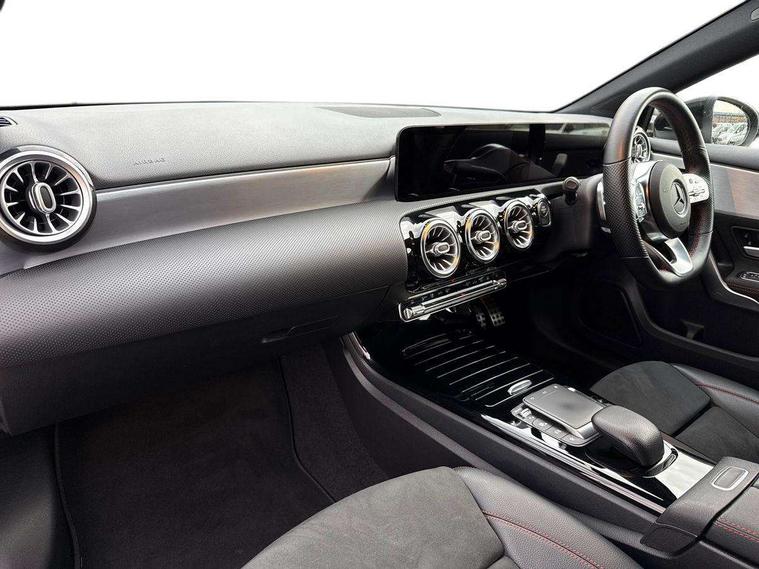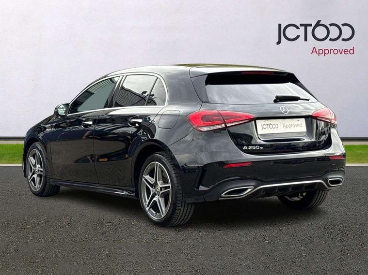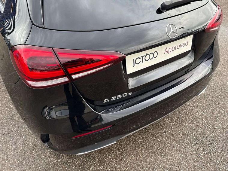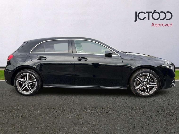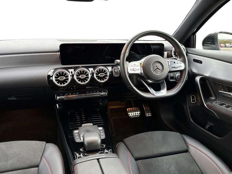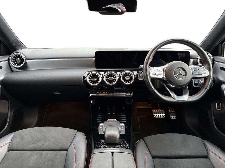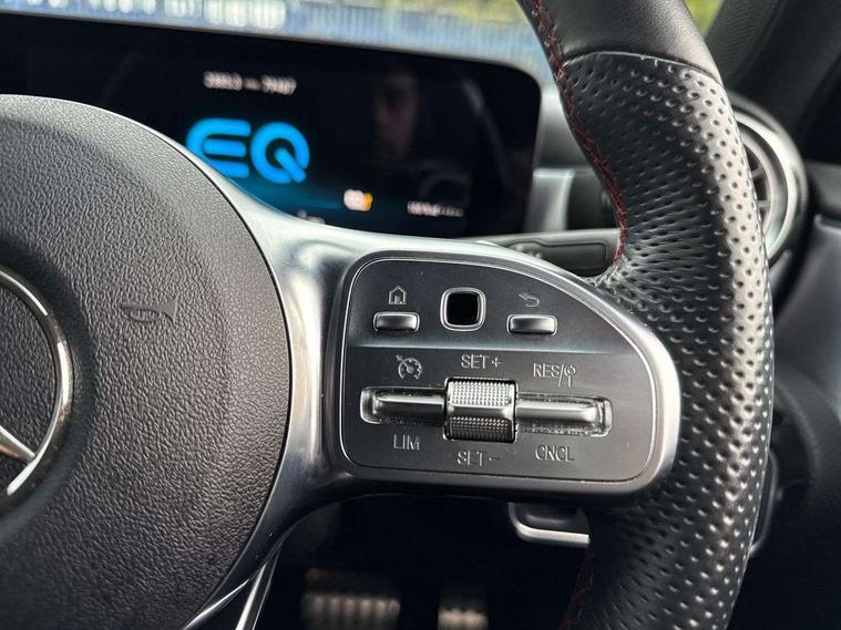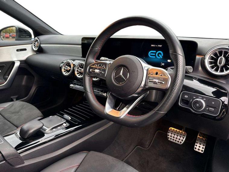 10.25" Digital instrument cluster display screen, 10.25" media display, 180 degree rear view camera with parking guidelines, Acoustic ambient protection, Active lane keep assist, Active park assist with parktronic system including front and rear parking sensors, Attention assist, Brake pad wear indicator warning light, Car wash mode, Cruise control + speed limiter, Direct steering, Dual bluetooth interfaces, DYNAMIC SELECT with a choice of driving modes (ECO, Comfort, Sport and Individual), ECO start/stop function, Fluid level warning indicator for fuel, oil, coolant and washer fluid, Hard-disk navigation, Hey Mercedes Voice activation, Lamp failure indicator, MBUX augmented reality for navigation, Mercedes me connect including emergency call system, accident recovery, breakdown and maintenance management, Outside temperature gauge, Owners manual in English, Pre-installation for private car sharing, Pre-installation for Vehicle Monitoring, Pre-installation for Vehicle Setup, Preinstallation for Mercedes Benz link, Service indicator (ASSYST), Smartphone integration with Apple CarPlay and Android auto, Speed sensitive power steering, Trip computer, Wireless charging, 7.4 kW monophase on board charger, Comfort suspension, Mode 3 charging cable 11 kW, Rear axle multi-link, 10 speakers, 2 USB ports (type C) in rear stowage compartment and one in front of center console, DAB Digital radio, MBUX multimedia system with DAB digital radio and touchpad including satellite navigation, Mercedes-Benz advanced sound system - 225W, 4 Electric Front and Rear windows, Adaptive brake lights, AMG bodystyling - Front apron with splitter in chrome, rear apron with chrome trim and chrome visible trim elements in tailpipe, Black weather strip, Body colour bumpers, Body colour door handles, Body colour side skirt, Body coloured door mirrors, Chrome beltline trim, Diamond radiator grille with chrome pins and silver louvre + chrome insert, Electric adjustable and heated door mirrors with integrated LED side indicators, EQ badging, Exhaust system - Twin visible tailpipes in polished stainless steel, Headlamp assist automatic headlamp activation, Heated glass rear windscreen + timer control, Illuminated front door sill panels with Mercedes-Benz lettering, LED high performance headlamps with integrated LED daytime running lights, LED tail lamp, LED third brake light, Privacy glass, Radio aerial, Rain sensing windscreen wipers with two sensitivity settings, Rear fog lights, Rear wiper, Window line trim strip in chrome, 3 Spoke flat bottom leather multi function steering wheel with perforated leather in grip area, 40:20:40 split folding rear seats, Artico man-made leather/Microfibre Dinamica upholstery with red contrast stitching, Auto Mercedes-Benz child seat recognition sensor, Black air vents with surround in silver chrome, Black roof lining, Brushed stainless steel sports pedals with rubber studs, Charging socket, Controller on centre console with chrome surround, Floor mats with stitched edging and AMG lettering, Front centre armrest with storage compartment, Front seat backs luggage nets, Front seat cushion length adjustment, Galvanished gear shift paddles on steering wheel, Heated front seats, Height/reach adjustable steering column, Interior lighting - 64 colour Ambient lighting, Interior mirror with reading lamps in black and frameless, Manual height adjustable front seats, Pre-entry climate control, Rear armrest with 2 cupholders, Rear head restraints, Seat occupancy sensor for front passenger seat, Sports seats with integrated headrests, Stowage compartment in centre console with retractable cover, Sunvisors with illuminated vanity mirrors, Touchpad on center console, Twin front cupholders, Two zone thermotronic luxury automatic climate control, Light and sight pack - A Class, Mirror package - A Class, Seat comfort pack - A Class, 3 rear 3 point seatbelts, ABS with Brake Assist, Active bonnet, Active brake assist includes forward collision warning system with autonomous braking, Adaptive brake assist with hold function and hill start assist, Black seatbelts, Childproof locks manually operated for rear doors and electrically operated for rear power windows, Crash responsive emergency lighting, Driver and passenger head and side airbags, Drivers knee airbag, Dual stage driver/passenger airbags, Electronic parking brake, ESP curve dynamic assist, ESP with ASR, Front and rear seatbelt reminder, Front brake callipers with Mercedes Benz lettering, ISOFIX and top tether child seat fixing points in two outer rear seats, Perforated front brake discs, Radar based regeneration, Tyre pressure monitoring system, Warning triangle and first aid kit, Window airbags, Alarm system/interior protection/immobiliser, Keyless entry lock/unlock, Keyless Go, Remote central locking and crash sensor with emergency opening function, Urban guard vehicle protection system with immobiliser and interior protection, Light aluminium with longitudinal grain interior trim, 18" AMG 5 twin spoke light alloy wheels in titanium grey with highsheen finish, Summer tyres, Tirefit sealant kit,