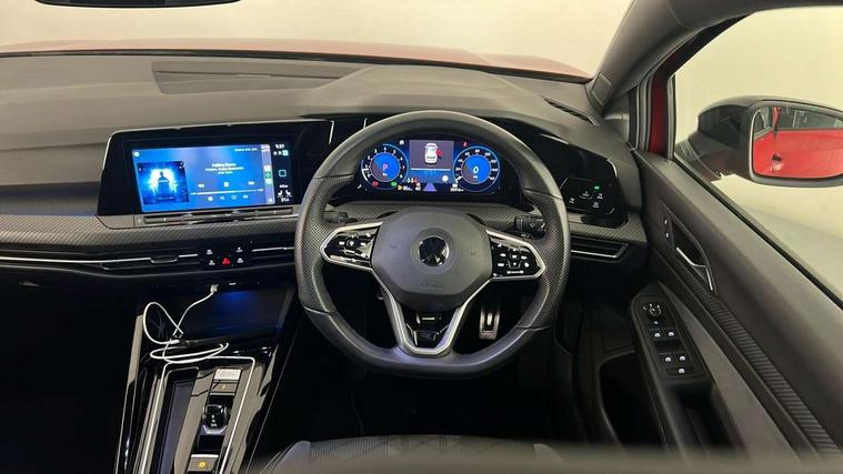 Adaptive cruise control (ACC) with speed limiter and front assist (reacting to vehicles pedestrians and cyclists), Car2X communication, Digital cockpit pro - 10.25" high resolution TFT dash display screen with customizable menus and information, Driver alert system, Dynamic road sign display, eCall - Emergency call service for SOS calls to emergency response, Lane assist, Mobile phone interface with wireless inductive charging function, PAS, Speedo, rev counter, electronic odometer, trip, service interval display, exterior temperature and fuel gauge, Start/Stop function, USB-C ports in the front and rear centre console with increased charging performance, Warning buzzer and light for front seatbelts unfastened, Wireless app connect, Petrol Particulate Filter, XDS electronic differential lock for improved traction and handling, Premium USB cable in choice of either Apple or Android smartphone compatibility, Ambient lighting, exterior illuminated styling elements at the sides, Auto dimming rear view mirror, Automatic headlamp activation with Coming home and Leaving home feature, Automatic headlights, Body colour door handles, Body colour door mirrors with integrated indicators, Body colour rear roof spoiler, Dynamic headlight range control, Electrically heated and adjustable door mirrors with memory feature, Front and rear electric windows, Heat insulating glass windscreen, Heated rear windscreen, High level 3rd brake light, Highway light, LED daytime running lights, LED headlights incorporating turn signals, LED License plate illumination, R Line body coloured bumpers, Rain sensor, Rear fog light on one side and reversing lights on both sides, Rear lights incorporating LED technology, Rear side wing doors, Rear tinted glass 65% light absorbing from B pillar backwards, Rear windscreen washer and wiper with interval delay, Welcome light, 12V socket in front centre console, 12V socket in luggage compartment, 3 rear head restraints, 3 seat bench in 2nd row, Ambient lighting - Customisable 30 colour ambient lighting, Black roof lining, Brushed stainless steel pedals, Chrome plated surround to electric mirror button, window switch and air vent surrounds, Drivers and front passengers sun visors with vanity mirrors, Front + rear carpet mats, Front centre armrest with storage compartment, Front cupholders x 2, Front passenger seat, Front reading lights x 2 incorporating LED technology, Front seat lumbar support adjuster, Front sports seats, Glovebox, Height adjustable front seats, Height and reach adjustable steering wheel, Isofix child seat preparation for 2 rear child seats and front passenger seat, Luggage compartment lighting, R Line door and side trim panel, R Line front seats integrated head restraints, R-Line leather wrapped multi function sports heated steering wheel, Removable luggage compartment cover, Sardegna cloth upholstery with front and outer rear seats Art Velour inner sides of bolsters, Split folding backrest with centre armrest and unsplit rear seat bench, Woven fabric storage compartments in front and rear doors, 3 point height adj front seatbelts + pretensioners, 3 rear three point seatbelts, ABS, Child locks on rear doors, Driver and front passenger airbag with front passenger airbag deactivation, Drivers and front passengers safety optimised head restraints, Electronic parking brake with auto hold, ESC (Electronic Stability Control), Extended pedestrian protection measures, Front and rear passengers curtain airbag system including front side airbags, Front disc brakes, Rear disc brakes, Two tone horn, Tyre pressure monitoring system, Alarm with interior protection and deactivation via infotainment system, Electronic engine immobiliser, Carbon grey decorative inserts in dash and front door trim panels, High gloss black centre console, Soul dashboard,
