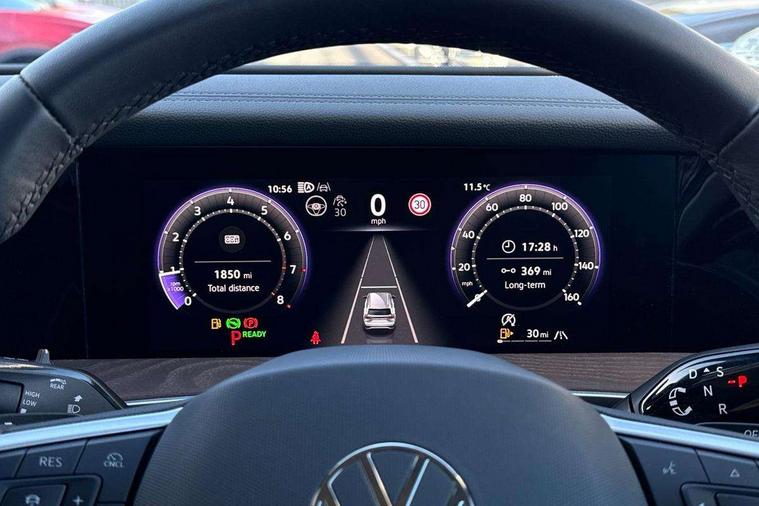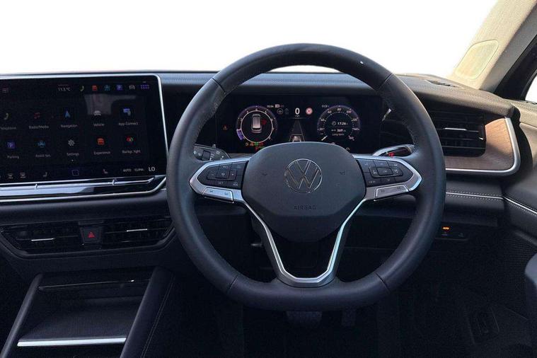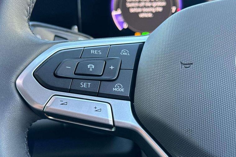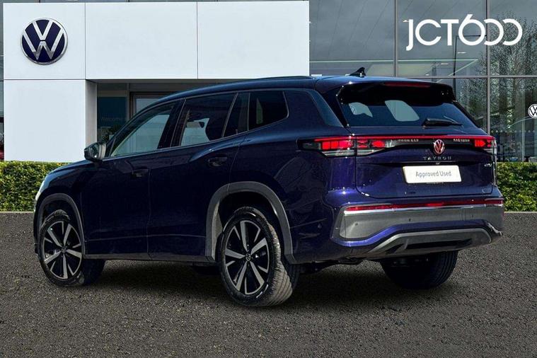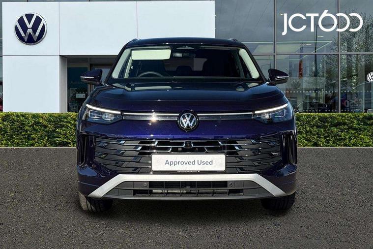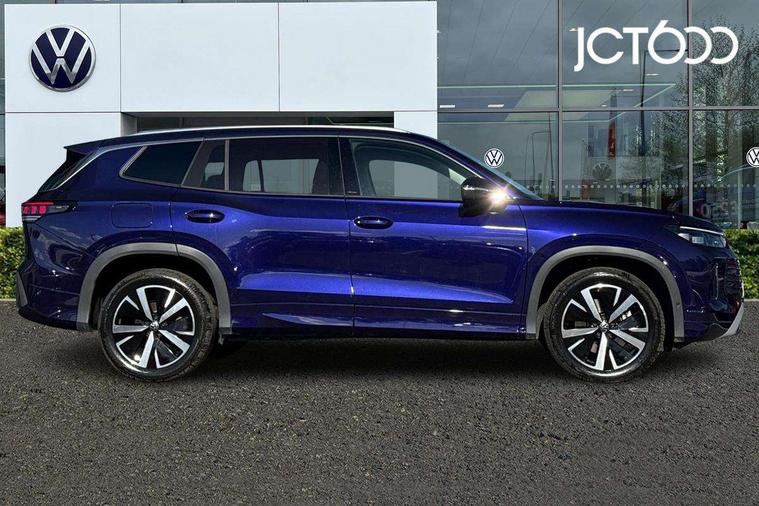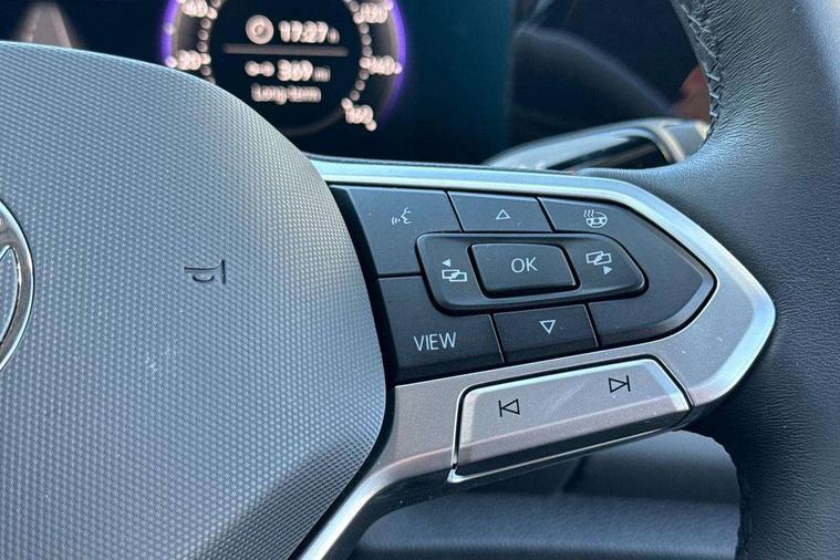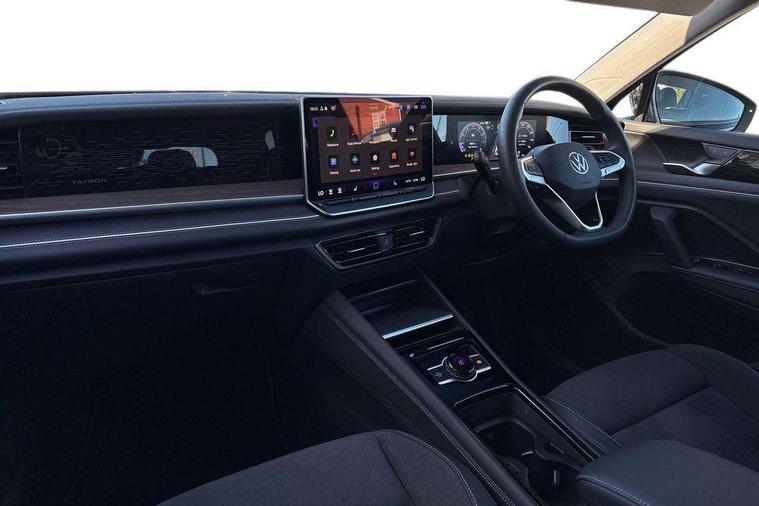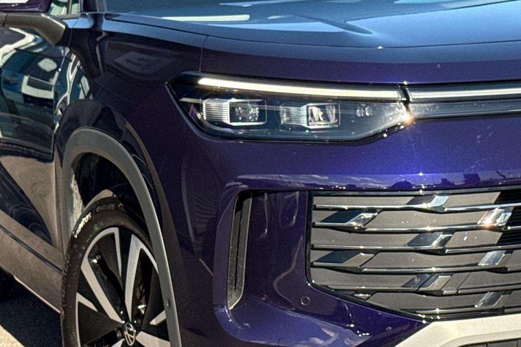 Adaptive cruise control (ACC), Digital Cockpit Pro - 10.25" high resolution dash display screen with customisable menus and information, Driver alert system, Driver attention monitoring system, Dynamic road sign display, E-Sim card for online connectivity, eCall emergency call system, Lane change system, Side assist, Rear traffic alert and Exit warning system, Multifunction front facing camera, Oncoming vehicle braking when turning including swerve support, Start/stop system with regenerative braking, Voice activation spoken voice commands for telephone and navigation system, Warning signal and warning light for front and rear seatbelts not fastened, Wireless App-Connect, Front wheel drive, Digital radio reception (DAB), Diversity antenna for FM reception, Auto dimming interior rear view mirror, Automatic headlight control system, Body colour door handles, Body coloured bumpers and air intake with chrome trim, Body-coloured exterior mirror housings, Chrome moldings on the side windows, Coming/leaving home lighting function, Dynamic headlight range control with dynamic cornering light, Exterior mirrors convex on the left and aspherical on the right, Heat insulating glass in side and rear windows, Illuminated Volkswagen logo rear with animation, Laminated safety glass from B-pillar backwards 90% tinted, Laminated safety glass winshield, heat insulating, LED 3rd brake light, LED separate signature day time running light, Puddle lights, Rain sensor windscreen wipers, Rear fog light on one side, reversing light on both sides, Rear side wing doors, Rear wiper, Reverse activated passenger's door mirror, Surround lighting with welcome light, Volkswagen logo in front, illuminated lighting animation with wake up/goodbye scenario and illuminated door handles, 10 colour interior ambient lighting, 12V outlet in center console rear and in luggage compartment, 3 rear headrests, 3 rear seat bench in 2nd row, backrest split folding with centre armrest and 2 seats in 3rd row of seats, Carpet mats, front and rear, Centre console with illuminated storage compartment with sliding cover and two drinks holders, Chrome elements on the mirror switch and power window switches and door pulls, Door and side trim panel featuring foam film with leatherette insert, Flat luggage compartment floor, Front centre armrest, Front scuff plates in alumium, ISOFIX anchors for child seats on outer rear seats and front passenger seat compatible with i-Size, Mechanical rear seat release, Power adjustable lumbar support in front, Single front passenger seat, Sports comfort seats in front, Sun visors with illuminated vanity mirrors, Comfort package with park assist pro - Tayron, Driver assistance package - Tayron, 3 Point seat belts in front with pretensioners, 3 point seatbelts in outer rear with ECE label, Autonomous emergency braking front assist with pedestrian and cyclist monitoring, Driver and front passenger airbag with front passenger airbag deactivation, Electronic parking brake with auto hold, First aid kit with warning triangle and safety vest, Front and rear curtain airbags, Front and rear side airbags, Front centre airbag, Front disc brakes, Hill start assist, Rear disc brakes, Two tone horn, Decorative material set Elegance with inserts in ornamental wood ash in the dashboard, Interior door handle in matte chrome,