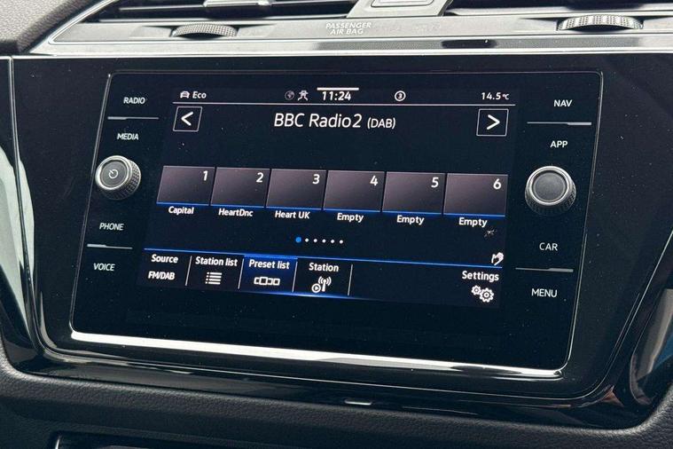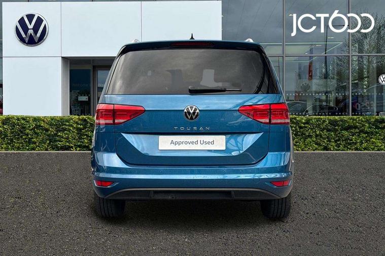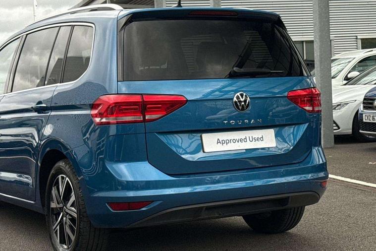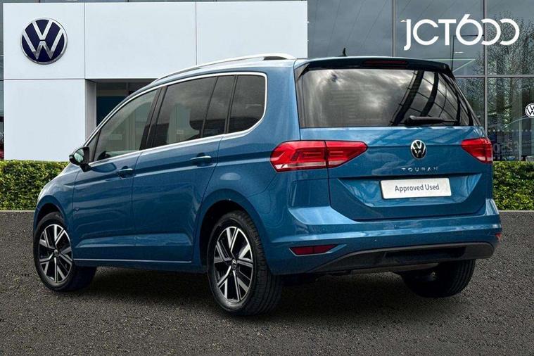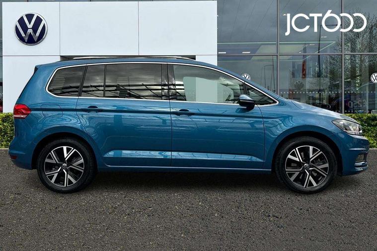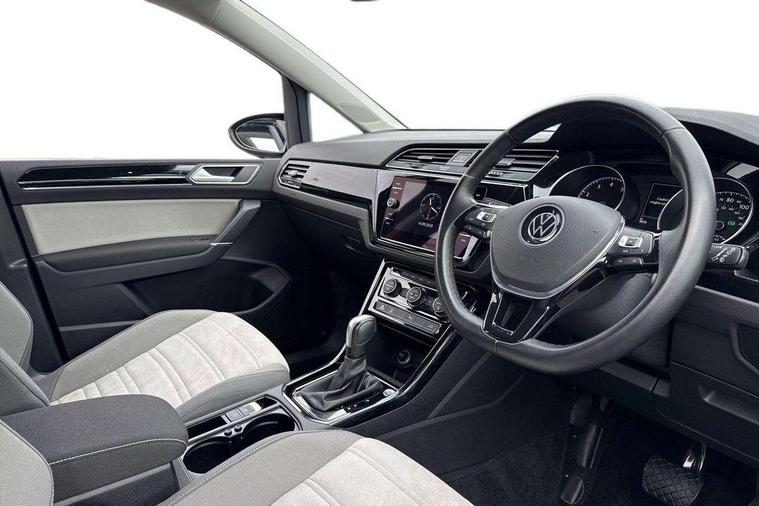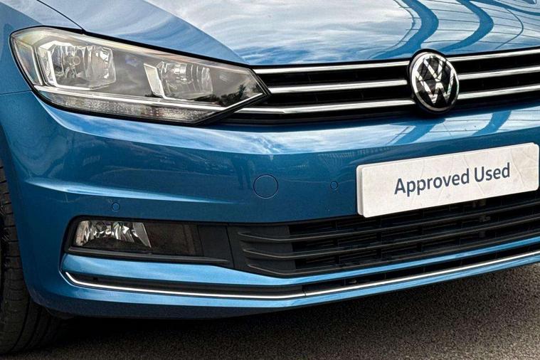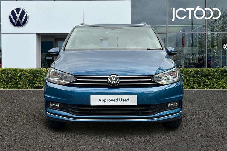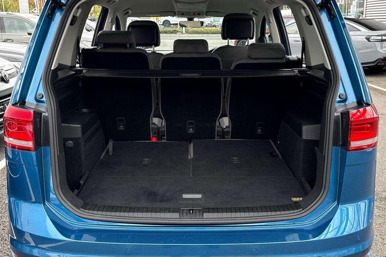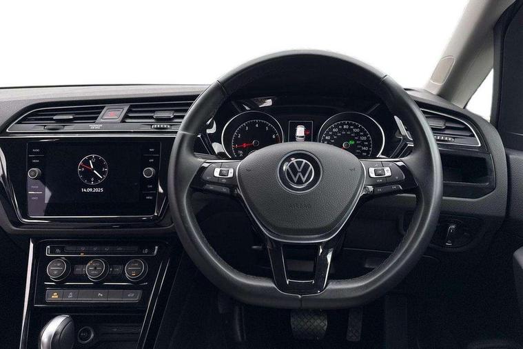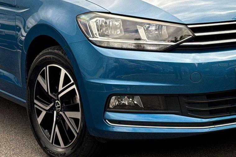 Adaptive cruise control, Audible lights on warning, Bluetooth telephone connectivity, Car information display, Discover nav, Euro 2D/3D map view+6.5" colour touchscreen CD + Radio, European map data, Car net guide/inform, Driver alert system, Driver electronic voice amplification function, Driver profile selection, Electronic odometer, Emergency services call system, External temperature gauge, Mobile pairing with SMS function, Multifunction colour display, Rev counter with fuel gauge, Speed limiter, Speed sensitive power steering, Stop/start system, Think blue trainer driver tips and journey analysis, Trip and service interval display, Wireless app connect, Petrol Particulate Filter, XDS electronic differential lock, 4x20 watt output, 8 Speakers, Audio Connectivity System, DAB Digital radio, MP3/WMA compatability, SD card slot, Title and cover art display, USB connection, Aerial integrated into side window, Auto dimming rear view mirror/rain sensor, Automatic coming/leaving home lighting function, Body colour bumpers, Body colour door handles, Body colour door mirrors with integral indicators, Chrome fog light surround, Chrome lower front bumper insert, Chrome trimmed front air intake surrounds, Chrome trimmed radiator grille louvre inserts, Chrome trimmed side windows, Dusk sensor + auto driving lights, Front and rear electric windows, Front fog lights with static cornering function, Fully galvanised body, Gloss black finish B pillar, Green tinted heat insulating glass, High level third brake light, Rain sensor, Rear boot, Rear side wing doors, Rear tinted glass from B-pillar backwards approx 65% tinted, Rear wash/wipe with intermittent wipe setting, Silver roof rails, Tailgate wiper- reverse gear activation, Twin chrome exhaust tailpipes, Volkswagen roundel, Windscreen wipers intermittent wipe, 12V power point for Row 2, 12V socket in luggage compartment, 2 individual fold flat 3rd row seats, 2 three point seatbelts in 3rd row, 2nd row centre armrest, 2nd row centre seat converts into table, 3 single slide/fold/removable 2nd row seats, 3 spoke steering wheel, 3 Zone electronic climate control with automatic air recirculation, 3x3 point seatbelts on 2nd row with height adjust on outer seats, 4 boot load lashing points, 4 way adjustable front head restraints, 5 headrests, Ambient lighting in door trim and foot well, Art velour/Microfibre cloth upholstery, Driver and front passenger under seat drawer, Dust/pollen filters, Foldable front passenger seat backrest, Front + rear carpet mats, Front and rear reading lights, Front centre armrest with storage compartment, Front comfort seats with lumbar support, Front cupholders x 2, Front passenger seat height adjust, Front seat storage pockets, Front seatback folding tables, Height adjustable driver's seat, Height/reach adjust steering wheel, Illuminated glovebox, Illuminated vanity mirrors, Instrument lighting white adjustable panel illumination with red night time illumination, Interior light with delay, Isofix on 2nd row outer seats, Isofix on 3rd row seats, Large storage compartment in roof console, Leatherette on rear of front seats, Low tunnel 2nd row seat, Luggage compartment lighting, Media box in dashboard on passenger side, Multi storage in passenger/luggage areas, Multi-function centre console with storage facilities, Multifunction leather trimmed steering wheel including leather trimmed gear knob with 3.5" screen with multifunction computer, Retractable luggage cover, Split folding rear seat backrests, Storage bins on all doors, Mirror pack - Touran, 3 point height adjustable front seatbelts, Auto hold function, Automatic post collision braking system, Door open warning reflectors, Driver/Front Passenger airbags, Drivers knee airbag, EDL + ASR, Electrically operated child locks on rear doors, Electronic parking brake, Energy recovery system, ESC with ABS, First aid kit, Front and rear (row 2) curtain airbags, Front assist including city emergency braking, Front seat side impact airbags, Front seatbelt pretensioners, Front/rear disc brakes, Hill hold control, Hydraulic Brake Assist (HBA), Loose wheel warning function, Passenger airbag deactivation system, Pre crash preventive occupant protection, Rear child proof door locks, Seatbelt warning lamp and buzzer, Traction control, Two tone horn, Warning triangle, Alarm with remote central locking and interior protection, Electronic engine immobiliser, Chrome plated instrument surrounds, Piano black decorative inserts, 17" Alexandria alloy wheels with self sealing tyres and anti-theft wheel bolts, Run flat tyres,
