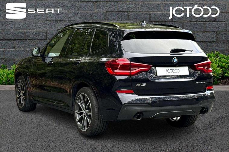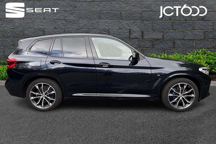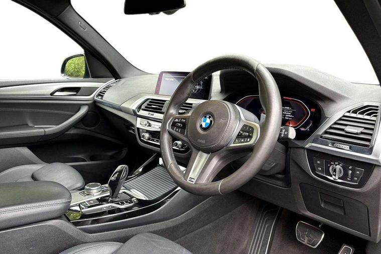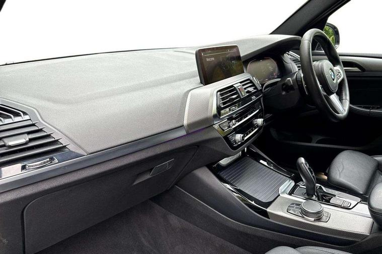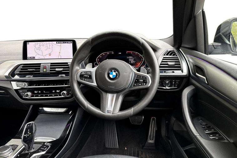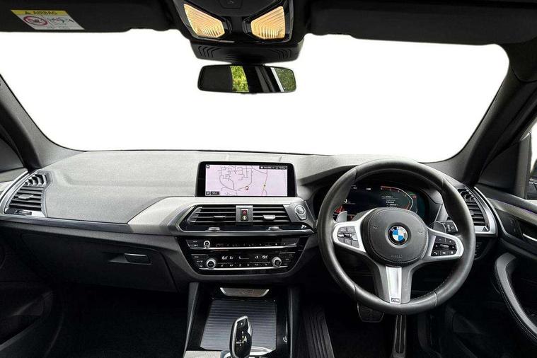 Active Guard incl speed limiting and lane departure functions with auto steering, and front collision warning with brake intervention, Attentiveness assist, Automatic tailgate operation, BMW Live Cockpit Professional sat nav system including 10.25" high resolution display and Intelligent Voice Assistant, BMW Online services, BMW Teleservices, Brake pad wear indicator in front and rear, Check Control warning system for monitoring of lights and door/luggage compartment open warning, Control display - 6.5" colour display screen, Electric Power Steering (EPS) with Servotronic, Front/rear Parking distance control, iDrive Controller with 8 favourite buttons, Lights on warning by audio warning signal when ignition is switched off, Navigation system - BMW Professional multimedia with Hard disc drive (HDD) and 10.25" touch display, Oil sensor for level and grade, warning by check control system, On board computer - average speed+fuel consumption, service interval, clock/date, odometer/trip meter, outside temperature display and ice warning, Optimum shift indicator, Personal Profile - automatic lock when driving away selectable, Real time traffic information, Semi digital instrument cluster, Stop/start system, Automatic transmission with gearshift paddles, Diesel particulate filter, Incorrect fuelling protection, Larger capacity fuel tank, Multi-link rear suspension, Performance Control, Auxiliary socket for external MP3 player, BMW professional radio/CD/MP3, DAB Digital radio, Acoustic glazing, Black finish on B pillars, Body colour door handles, Body colour electric adjust heated aspherical door mirrors, Body colour roof mouldings, Body coloured bumpers, Chrome kidney grille with high gloss black vertical slats, Direction indicator, side repeaters, integrated in exterior mirrors, Dual chrome exhaust, Dynamic brake lights, Exterior mirrors - electrically folding with anti-dazzle, Fingertip control / anti-trap function on electric window, Follow me home headlights, Front and rear bumper system with replaceable deformation elements, Front and rear electric windows, Green tinted heat insulating glass, Heated windscreen washer jets, Height adjustable headlamps, High gloss black door sill finishers, High gloss black shadow line roof rails, High gloss shadowline exterior trim in decorative moulding side frame/recess cover/guide rail/B, C pillars/mirror frame and triangle with mirror base, High level 3rd brake light incorporating LED Technology, Interior rear view electrochromatic mirror with automatic anti dazzle function, LED front fog lights, LED tail lights, Lightweight engineering, M aerodynamic bodystyling, Model designation, Rain sensor including auto headlights activation, Rear wiper, Shark fin antenna, Visible VIN plate, Welcome lighting, Windscreen wipers with adjustable interval, 12V socket in centre console and luggage area, 3 rear headrests, 3 zone automatic air conditioning, 4 lashing points to secure luggage, Ambient lighting, Anthracite headlining, Anthracite Velour floor mats, Driver/passenger sunvisors with ticket holders + illuminated vanity mirrors, Foldable boot floor with storage compartment, Four grab handles integrated in roof lining, Front and rear bottle holders integrated into door trim storage compartments, Front and rear side armrests integrated into door trim, Front centre armrest with storage compartment, Front footwell lights, Front sports seats, Front/rear courtesy lights with soft on/off dimming, Front/rear reading lights, Height adjustable front/rear head restraints, Isofix rear child seat preparation, Leather gear knob, Luggage area underfloor compartment, Luggage compartment lighting, M Sport multifunction leather steering wheel, Parcel shelf removeable and storable under boot floor, Reach and rake adjustable steering column, Rear centre armrest with 2 cupholders, Rear seat centre armrest with two cupholders, Removable / retractable luggage cover, Slope adjustable rear seats, Storage compartment in rear centre console and front/rear door trims, Through loading system with 40/20/40 split folding rear seat, Toolkit located in luggage compartment, Two front cupholders with removable oddments tray/lid, Vernasca leather upholstery, Connected pack professional - X3, ABS/EBD, ADB - Automatic Differential Brake, Automatic Stability Control (ASC), Battery safety cut-off, BMW emergency call, Brake assist, Brake assist function, Brake drying, Brake energy regeneration, Braking pre-tensioning, Child locks on rear doors, Cornering brake control (CBC), Crash Sensor - activation of central locking release, hazard warning light and interior lighting, Deactivation of fuel pump in the event of a crash, Driver and front passenger front and side airbags with passenger deactivation and ITS front and rear head airbags, DSC+, Dynamic brake control, Dynamic Traction Control - DTC, Electromechanical parking brake, Front seat belts warning, Hill descent control, Hill start assist, Seatbelt security check for front seats, Side impact protection, Three point seatbelts to all seats with front and outer rear pyrotechnic belt tensioners and seat belt force limiters, Two tone horn, Tyre pressure monitoring system, Ventilated front and rear disc brakes, Warning triangle and first aid kit, Central locking switch for all doors, fuel filler cap and luggage compartment, Electronic engine immobiliser, Locking wheel nuts, Remote control including two integrated key - one button for open/close all lockable content, windows and separate button for open luggage compartment, Remote control Thatcham category 1 alarm, Start/stop button with Comfort Go keyless engine start and auto Start/stop deactivation button, Low rolling resistance tyres,