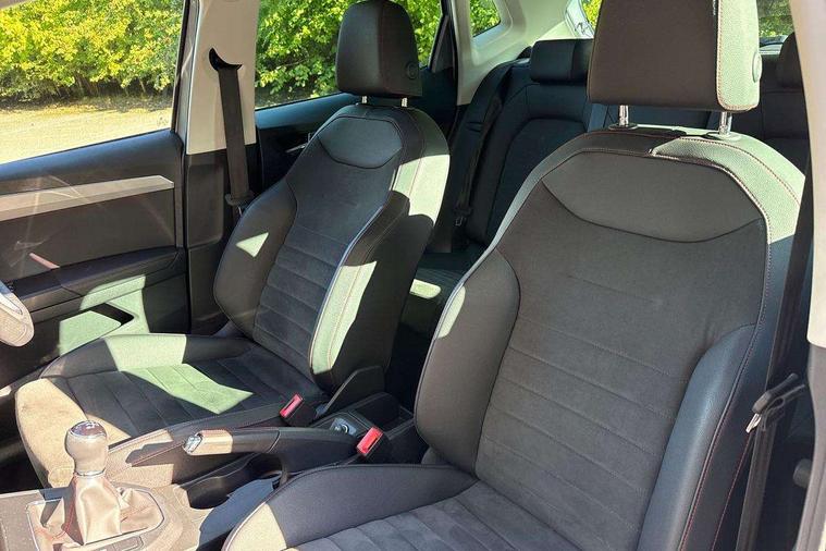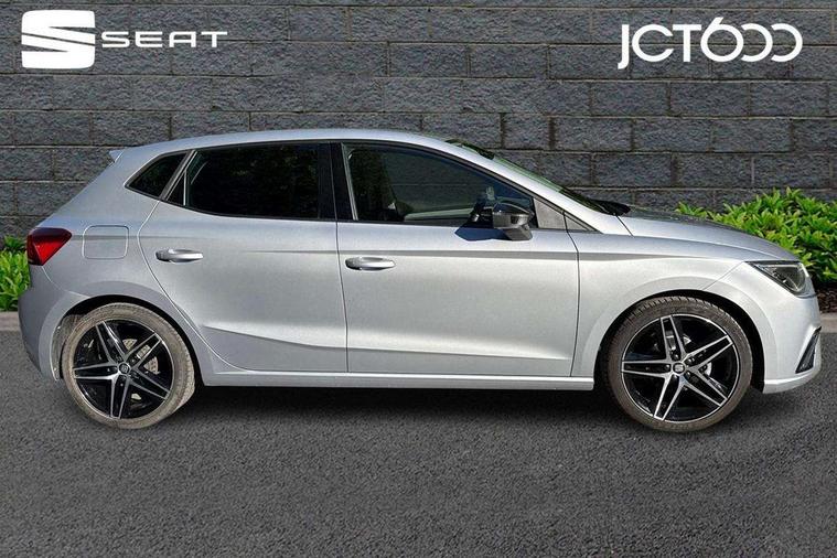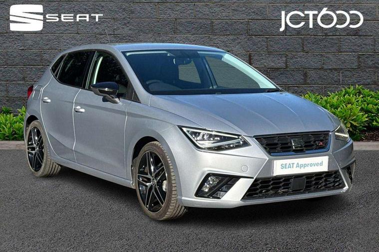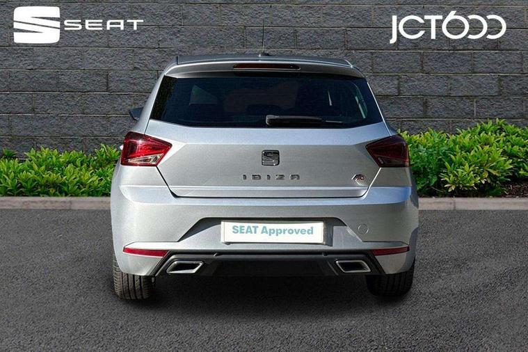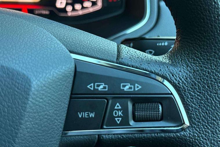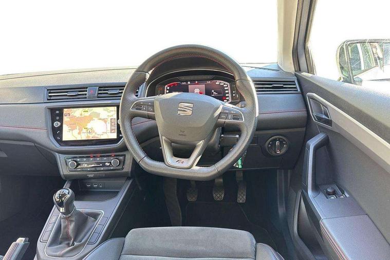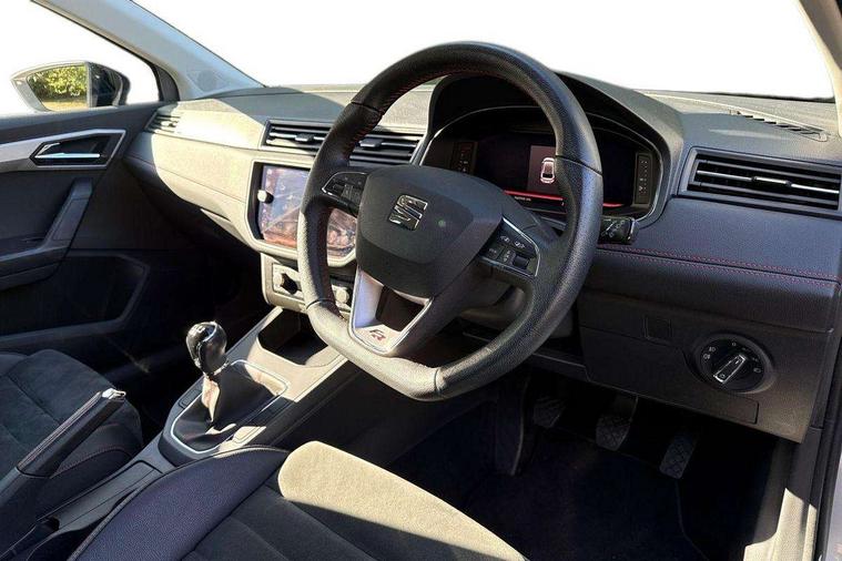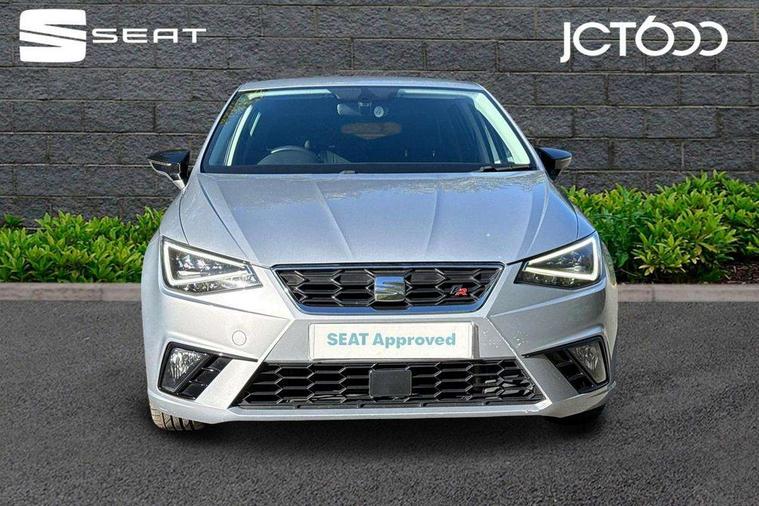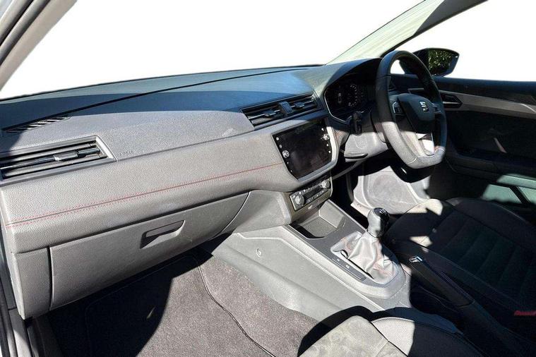 'Lights On' Reminder warning buzzer, Bluetooth Handsfree Phone Connection, Cruise control, Digital clock, Digital cockpit, Full Link Smartphone Integration with Mirror Link, Apple Car Play, Google Android Auto, Low fuel warning light, Outside temperature gauge, Power Steering, Satellite navigation system with 3D mapping, 8" touch screen, voice control and additional USB port, SEAT Drive profile, SEAT logo boot release, Trip computer, Sports suspension, 6 speakers, Auxiliary input socket, CD player, Digital Audio Broadcast (DAB) Tuner, Radio/MP3 player, SD card slot, SEAT USB media cable, Steering wheel mounted controls, USB port, Anti theft roof antenna, Auto dimming rear view mirror, Automatic headlights, Automatic rain sensing wipers, Body colour bumpers, Body colour door handles, Brilliant black door mirrors, Chrome front grille frame, Chrome grille, Coming/leaving home lighting function, Cornering front fog lights, Dark tinted rear windows, Electric folding door mirrors, Electric front windows, Electric headlight adjustment, Electrically adjustable and heated door mirrors, Exclusive FR rear bumper, Full LED headlights, LED daytime running lights, LED tail lights, Rear fog lights, Twin exhaust pipes, 3 rear headrests, 60/40 split folding rear seat, Door and steering wheel ice metal decorative inserts, Driver's sunvisor with ticket holder/vanity mirror, Dual zone climate control, Dust/pollen filter, Flat bottomed perforated leather steering wheel with red stitching and FR logo, Front courtesy lights, Front cupholders x 2, Front reading lights, Gear shift indicator, Glovebox, Height adjustable driver's seat, Height adjustable front/rear head restraints, Height adjustable passenger seat, Height/reach adjust steering wheel, Illuminated boot, Instrument lighting with brightness control, Leather dashboard, Leather handbrake, Microsuede cloth upholstery, Multi-colour ambient interior lighting, Passenger sunvisor, Rear top tether child seat ISOFIX attachment, Sports seats, Full LED headlight pack - Ibiza, 3 point seatbelts on all 3 rear seats, ABS, Active front headrests, Child locks on rear doors, Curtain airbags, Driver/Front Passenger airbags, ESP+EBA, Front assist (AEB), Front passenger airbag deactivation, Front side airbags, Hill hold control, Multi-Collision braking, Seatbelt warning, Tiredness recognition system, Tyre pressure monitoring system, Electronic engine immobiliser, Locking wheel bolts, Remote central locking + deadlocks, Volumetric alarm with back up horn, 18" Performance machined bi-colour alloy wheels,