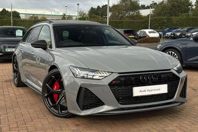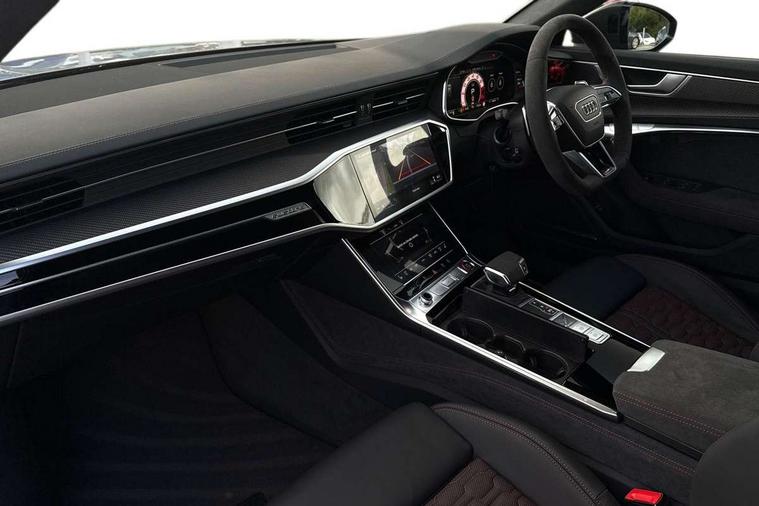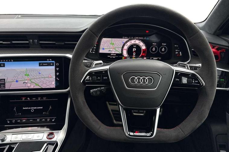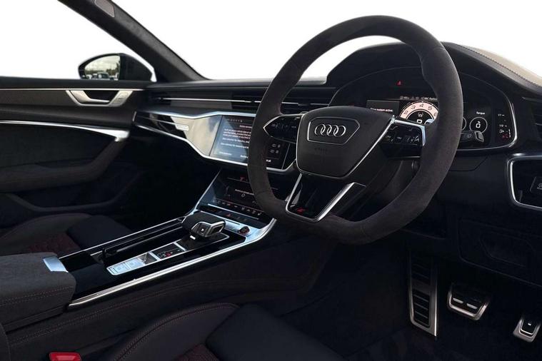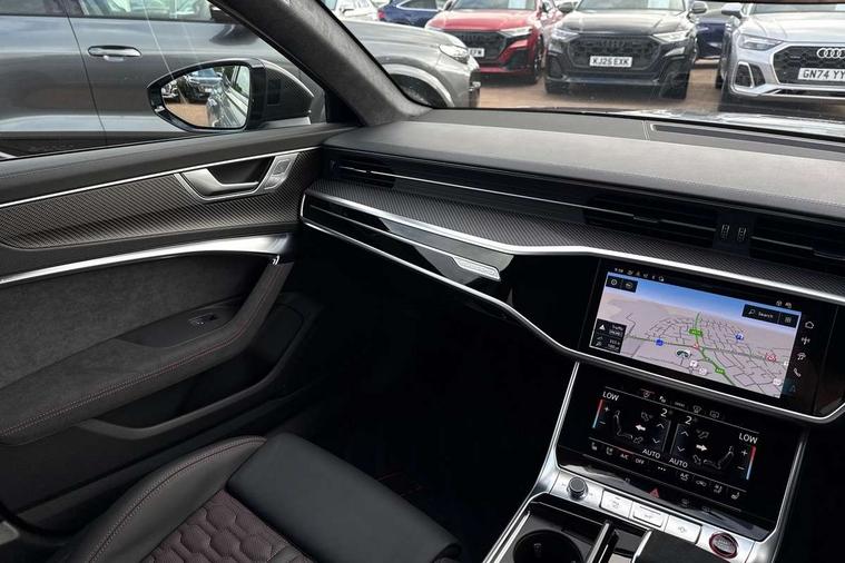 Audi connect safety and service (e-call), Audi connect with Amazon Alexa Integration, Audi drive select with 2 configurable RS modes, Audi smartphone interface with app store includes wireless Apple carplay, Android auto and Amazon alexa integration, Audi virtual cockpit plus with RS specific design and 12.3" display with additional graphic display options, Automatic start/stop system, Bluetooth interface, Dynamic all wheel steering, Head up Display, Lane departure warning system, MMI navigation with MMI touch + twin touch screens 10.1" and 8.6" with haptic and acoustic feedback, Night vision assistant, Operating buttons in black, glass look with haptic feedback including extended aluminium look, Power door closure, Power operated tailgate, Service interval indicator, Surround view camera system, Voice control system, 48V Mild hybrid technology, 73 litre fuel tank, Increased top speed to 174mph, Quattro sports differential, RS Sports suspension plus with dynamic ride control, 2 USB-C ports with charging functionality in the rear, Audi music interface, Bang & Olufsen 3D Premium Sound System, DAB Digital radio, 3rd brake light, Adaptive windscreen wipers with integrated washer jets, Black window trims, Electric front/rear windows, Electrically adjustable, heated and folding door mirrors with integrated LED indicators and kerb view function for passenger side, Frameless auto dimming interior rear view mirror, HD Matrix LED headlights with Audi laser light with dynamic light design and dynamic turn signal, Headlight washers, Heat insulating darkened glass in side and rear windows, LED daytime running lights, LED rear combination lamps with dynamic light design and dynamic turn signal, Panoramic glass sunroof, Privacy glass with rear/side windows and acoustic glazing side windows, Radiator grille in honeycomb structure, large front air inlets and rear diffuser in gloss black, Rain and light sensors, Rear side wing doors, Rear wiper, RS front bumper with air inlets on both side, RS rear spoiler in body colour, RS sports exhaust system with high gloss black oval tailpipe trims, Without tow bar preparation, 3 seat bench in 2nd row, 4 way electric lumbar support for driver and front passenger, 4 zone deluxe automatic climate control, Audi phone box light, Electric steering wheel adjustment, Electrically adjustable front seats with driver memory, Entry LED with RS Performance projection (Audi Beam) in front and rear, Front and rear headrests, Front centre armrest, Front seat ventilation, Heated front and rear seats, Illuminated front and rear door sill trims with aluminium inlays and RS6 logo, ISOFIX and Top Tether child seat mounting for the outer rear seats, ISOFIX child seat mounting and Top Tether with front passenger airbag deactivation, RS sports seat plus, Single passenger seat, Stainless steel pedals and foot rest, Air quality pack - RS6, Ambient lighting pack plus - RS6, City assist pack - RS6 Performance/carbon/vorsprung, Park assist pack with park assist plus - RS6, Storage pack - RS6, Tour pack - RS6 Performance/carbon/vorsprung, 3 point rear seatbelts, Direct tyre pressure monitoring system, EBD - Electronic brakeforce distribution, Electromechanical parking brake, Electronic Stability Control (ESC) including ABS, ASR and EDL, Extended pedestrian protection measures, Manual child lock in rear doors, Side airbags, front and rear including head airbag system and illuminated belt buckles, Warning triangle and first aid kit, Anti theft alarm with tow away protection, Immobiliser, Keyless Go, Performance tyres, Tyre repair kit,