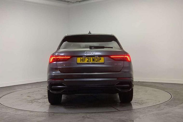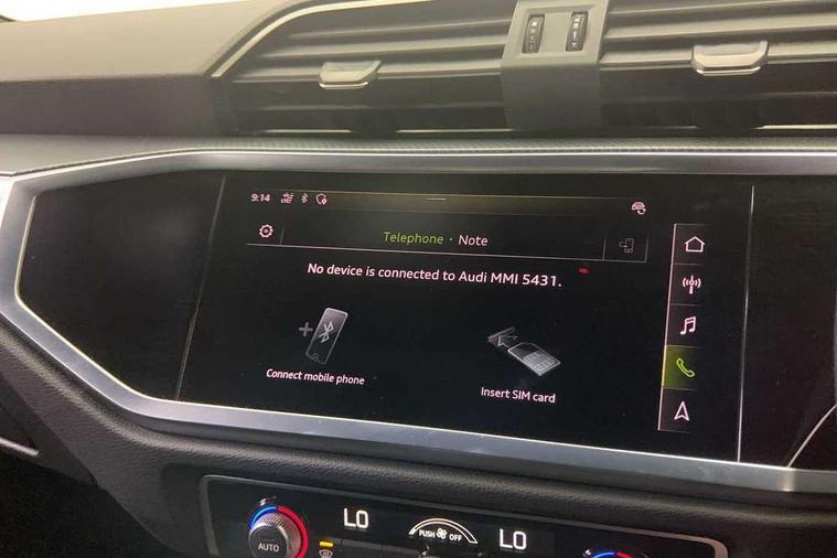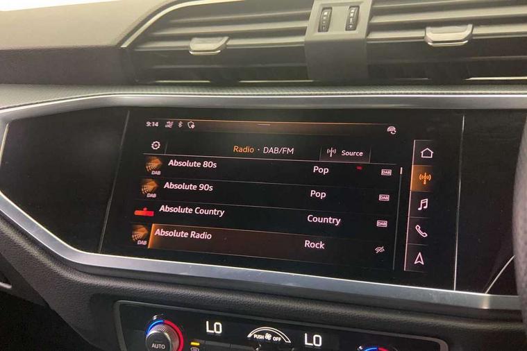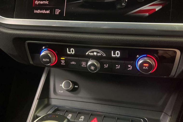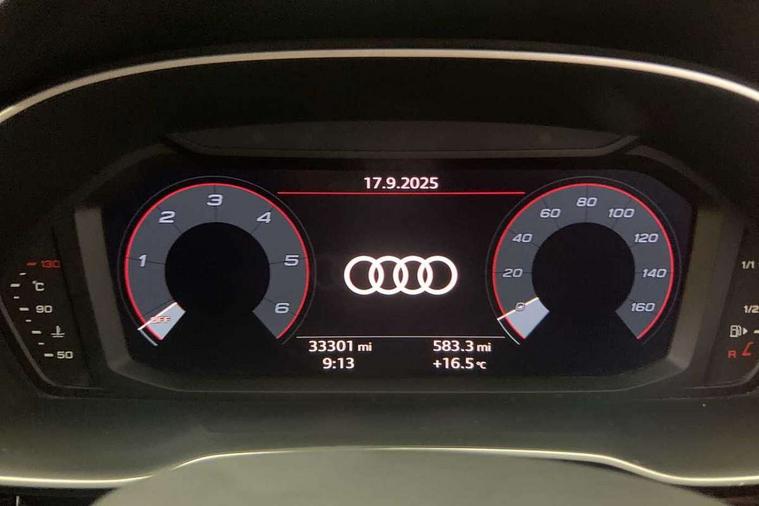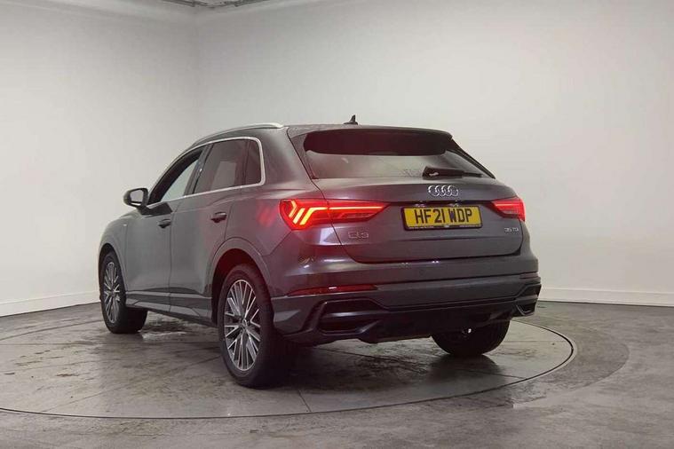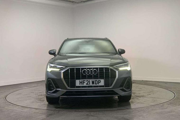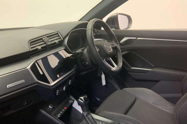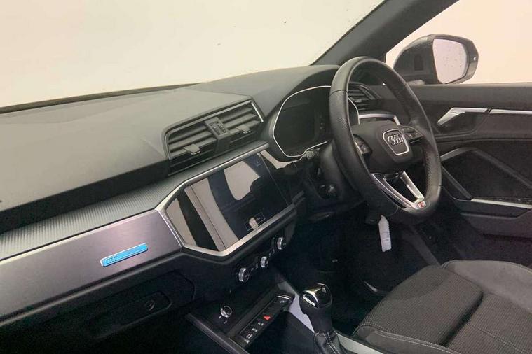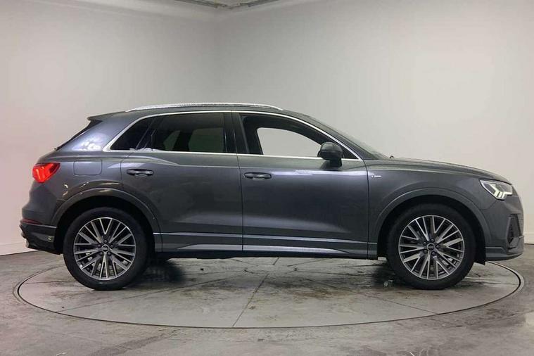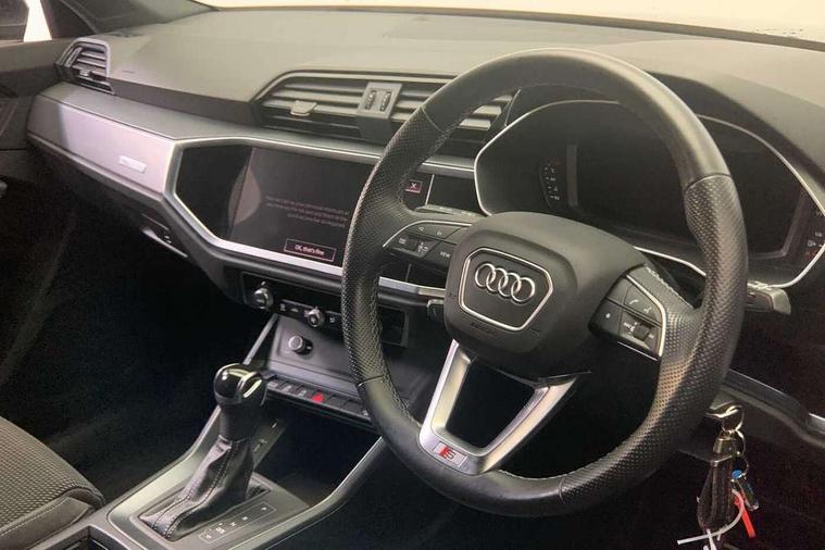 Audi connect safety and service (e-call), Audi drive select, Audi lane departure warning, Audi smartphone interface includes wireless Apple carplay/Android Auto, Audi Virtual Cockpit - 10.25" display, Bluetooth interface, Camera based traffic sign recognition, MMI Navigation Plus with high resolution 10.1 inch touchscreen colour display, Power operated tailgate, Progressive steering, Service interval indicator, Start stop system with recuperation, Voice control system with natural language interaction, Diesel particulate filter, Sports suspension, 2 USB-C ports with charge and data functions, 6 passive loudspeakers, DAB digital radio module, Acoustic windscreen, Aluminium roof rails, Aluminium window trim, Auto dimming frameless rear view mirror, Body coloured bumpers, Electrically folding, adjustable and heated door mirrors with integrated LED side indicators and kerb view function for passenger side, Front and rear electric windows, Front fog lights, Front side air inlets in matt platinum grey, Front spoiler blade in matt platinum grey, Grille vertical bars in aluminium silver/Matt, High gloss black finish B and C pillars, LED headlights with LED daytime running lights and dynamic rear indicator, LED rear lights, Privacy glass dark tinted rear and rear-side windows (from B-pillar backwards), Rain and light sensors, Rear diffuser strip in matt titanium black, S line badges on front wings, S Line front and rear bumpers, Side skirt insert in matt Platinium grey, Silver chrome grille surround, Titanium black radiator grille, 12V socket in rear centre console, 40:20:40 folding with manual adjustment for 60:40 forwards/backwards position and backrest angle, Adjustable rear seat bench/backrest with centre armrest and cupholder, Black cloth headlining, Dual zone electronic climate control, Front and rear black floor mats with contrast stitching in rock grey, Front and rear headrests, Front and rear roof module including reading lights, Front centre armrest, Glove compartment lighting, Height and reach adjustable steering wheel, Illuminated door sill trims with S logo, ISOFIX child seat mounting for front passenger with airbag deactivation and outer rear seat including top tether attachment point for outer rear seats, Luggage compartment light, Manual front seats with height adjustment, Perforated leather gearknob, Stainless steel luggage compartment sill finisher, Stainless steel pedals, Non smoking pack - Q3, 3x3 point rear seatbelts, 6 airbags - Driver, front passenger, curtain and side windows, Electrically operated child locks on rear doors, Electromechanical parking brake, Electronic stabilisation control including ABS, ASR and EDL, Hill descent control, Hill hold assist, Pre sense basic, Seatbelt monitoring, Tyre pressure warning, Warning triangle and first aid kit, Anti theft alarm, Anti theft wheel bolts, Audi pre-sense front with pedestrain and cyclist recognition, Remote central locking, Dark matt brushed aluminium inlay, Leatherette door armrest, MMI touch colour display in glass look, black with surround in aluminium look,