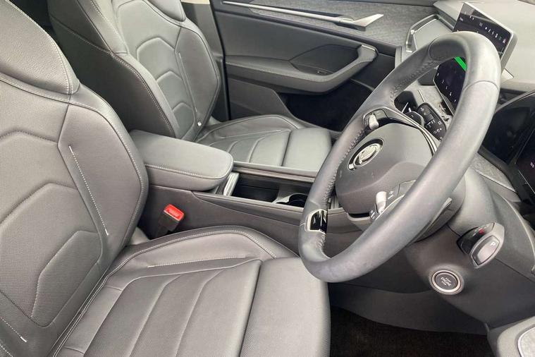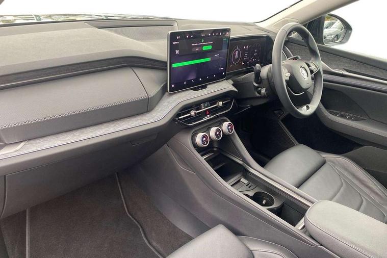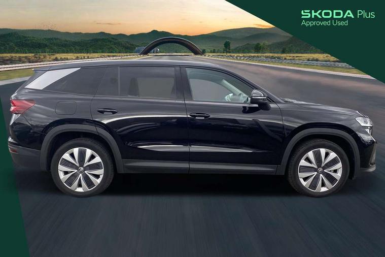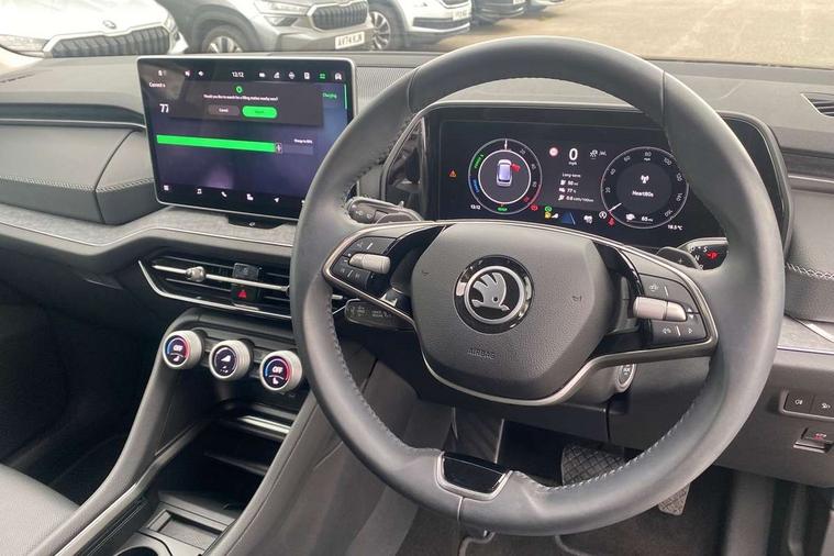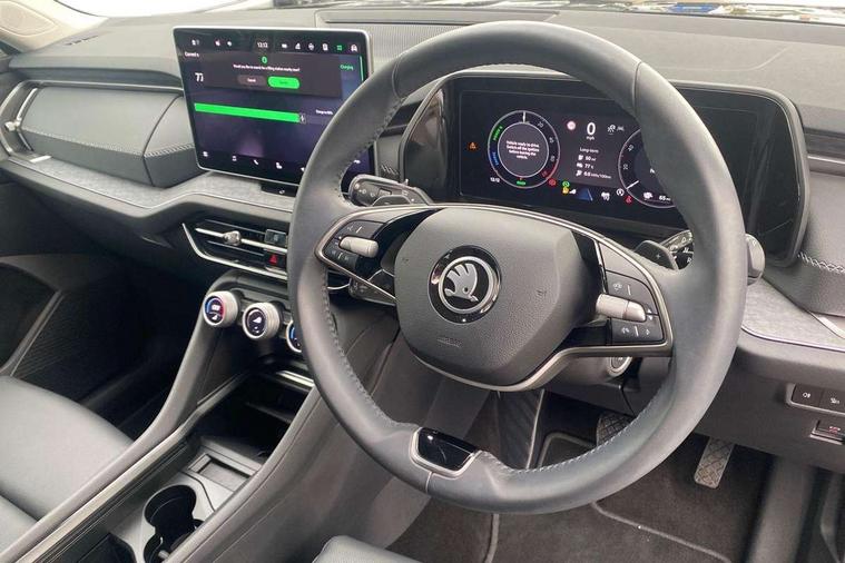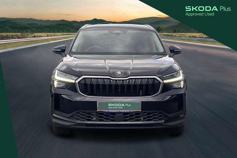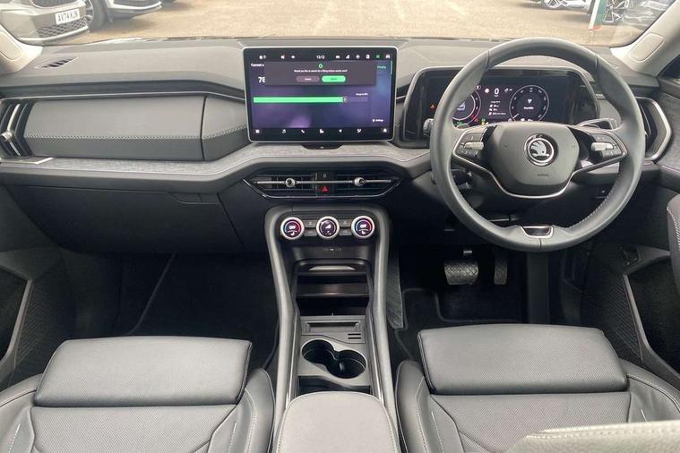 13" satellite navigation touchscreen display, Blind spot detection with door exit warning, Bluetooth system, ChatGPT functionality, Drive mode selector, Driver alert with fatigue sensor, Driver drowsiness alert system, Dry display cleaner, e call+, Front cross traffic assist, Lane assist, PAS, Rear traffic assist, Tailgate unlocking from outside, Traffic sign recognition, USB C Port x 2 in front centre console, Virtual Cockpit - 10.25" digital display, Voice control system, Wireless charging for two smartphones (15W) with cooling function, Wireless SmartLink for Apple CarPlay and Android Auto, 32A charging cable, Stop/start function, 2x USB-C in the rear, DAB Digital radio, Aero front windscreen wipers with intermittent function, Auto dimming rear view mirror, AWL (all weather lighting) and all weather light with cornering function, Black wheel arch surrounds, Body colour bumpers, Body colour door mirrors and handles, Cornering light and poor weather light, Electric folding /adjustable/separted heated/folding door mirrors, auto dimming with boarding sports and memory function, Electric front and rear windows, Exterior black decorative trims, Heat insulating glass in windshield, Heated rear window, Ice scraper in fuel tank cap, Invisible tailpipe, LED daytime running lights, LED rear fog light, LED third brake light in rear spoiler, Light assistant with automatic headlight control and coming home feature, Logo projection in door mirrors, Privacy glass, Rear side wing doors, Rear spoiler, Rear window wiper, Red decorative strip between rear LED lights, Safety reflectors on front and rear doors, Window control switches with black trim, Windscreen wipers with rain sensor, Without engine designation, 1.5l bottle holder points in all door, 12V socket in boot, 1x centre rear reading light, 3 configurable smart dials with 32mm coloured display, 3 seat bench in 2nd row, 4 foldable roof handles with rear coat hooks, Ambient interior lighting - Dashboard, front-door stowage compartments, front and rear door panels and footwell lighting, Automatic gear selector on steering wheel, Chrome interior door handles, Driver/front passenger reading lights, Fabric headlining, Fixed bench 40:60:40 split folding backrests, Front and rear floor mats, Front centre armrest with jumbo box storage compartment, cup holder and 12V socket, Front courtesy lights, Height adjustable front headrests, Isofix child seat fittings in outer rear seats and front passenger with top tether, iV badging on boot, Manually adjustable steering column, Pollen filter, Rear centre armrest with cupholders, Rear seat boot backrest release, Retractable luggage compartment cover, Single front passenger seat, Sliding trunk cover, Small Bags on the inner sides of the front backrests, Storage pocket including mobile phone pockets on the backs of the front seats, Sunvisors with illuminated vanity mirrors, Three rear height adjustable headrests, Ticket holder on A Pillar, Tri zone climate control, Umbrella in door panel x1 made from sustainable materials, Upper and lower glovebox with card holder and coin compartment, USB C port by rear view mirror for charging only (15W), Exterior styling pack - Kodiaq, Auto door release and activation of warning lights in the event of an accident, Driver and front passenger airbag with knee airbag and front passenger airbag deactivation, Electric child locks, Electronic parking brake, ESC (incl. ABS+EMD+MSR+ASR+EDL+HBA+DSR+RBS+ESBS+MCB+TSA+XDS), Front assist with braking reaction to vehicles, pedestrians and cyclists, Front disc brakes, Fuel cut off safety device, Height adjustable front 3 point seatbelts + pretensioners, Hill hold control, Junction assist with automatic emergency braking, Rear disc brakes, Safety vest holder in door, Seat belt reminder for all seats, Three point rear seat belts, Two tone horn, Tyre pressure monitor, Anti-theft wheel bolts, Immobiliser, Remote central locking with 2 keys, Breakdown kit,