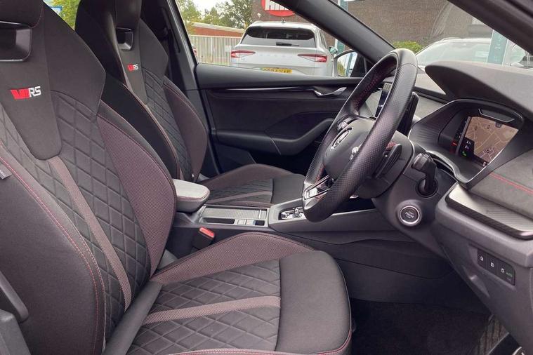 1x USB Type C port in rear view mirror (charging only), 2x USB Type C ports in rear of front centre armrest (charging only), Bluetooth system, Columbus satellite navigation with 10" touchscreen display, Driver fatigue sensor, E mode button for electric/hybrid drive, eCall emergency system, Front and rear parking sensors with manoeuvre assist, Front assist system, Progressive dynamic steering, Smartlink (includes android auto and mirrorlink), Speed limiter, Turn Assist, Unique iV instrument panel, Virtual Cockpit - 10.25" digital display, Voice control system, Wireless SmartLink for Apple Car Play, 10 amp mains UK 3 pin charge cable mode 2, 16 amp AC charge cable for wallbox/charge points mode 3, E-noise generator for electric drive with noise emitted upto speed of 50km/h, Front and rear stabilizers, 2x USB Type C ports (for charging and data transfer), 8 Speakers, DAB Digital radio, Aero front windscreen wipers with intermittent function, Auto dimming rear view mirror, Black roof rails, Body colour door handles, Chrome exhaust tailpipes, Door sills with vRS logo, Electric front and rear windows, Exterior gloss black sports styling including front grille, side strip, window surrounds, door mirror and badging, Full LED Matrix headlights with AFS and cornering front fog lights, Headlight washers, Heated rear windscreen, High level third brake light, Ice scraper in fuel cap, LED daytime running lights, Rain and light sensors, Rear fog light on one side, Rear privacy glass, Rear side wing doors, Rear spoiler, Rear window wiper, Unique iV badge on tailgate, 3 seat bench in 2nd row, 4 foldable roof handles, Aluminium pedals, Black headlining, Black microsuede padded dash panel with red contrast stitching, Charging socket cover on front left fender, Chrome inner door handles, Front centre armrest, Front head restraints, Heated front seats, Illuminated glovebox, Leather trimmed gearshift lever, Luggage compartment lighting with two side lamps, Mechanical rear seat release, Parcel shelf - rolling, Single front passenger seat, Sport button for hybrid drive delivering maximum system performance, Storage compartment for charging cables under the luggage compartment mat, Sunglasses storage, Textile floor mat set, Three spoke leather sports multifunction steering wheel with paddles, Ticket holder, Umbrella in door panel, Unsplit rear bench seat and split folding backrest, LED interior light pack - Octavia, 3 point front/outer rear seatbelts+pre-tensioners, Alarm with interior monitoring, tilt sensor and back up horn, Automatic door unlocking in case of crash, Automatic fuel cut off in case of crash, Automatic warning lights in case of emergency braking, Curtain airbags and front side airbags, Driver and front passenger airbags, Drivers knee airbag, Electronic parking brake, Emergency call and proactive services, ESC including ABS, EBV, MSR, ASR, EDS, HBA, DSR, Front and rear disc brakes, Front central airbag, Hill hold control, Hill start assist, ISOFIX on front passenger seat and outer rear seats, Manual rear child locks, Passenger airbag deactivate switch, Red brake calipers, Two tone horn, Tyre pressure monitor, Visual and acoustic seat belt reminder, Warning reflectors in front door, Door locks with immobiliser, Keyless entry and start/stop including rear doors, Remote central locking, Carbon optic decorative inserts, Gloss black air vent surrounds, Unique decorative door sills front and rear, 19" Altair anthracite alloy wheels, Tyre repair kit,