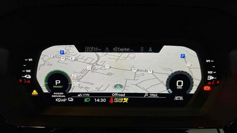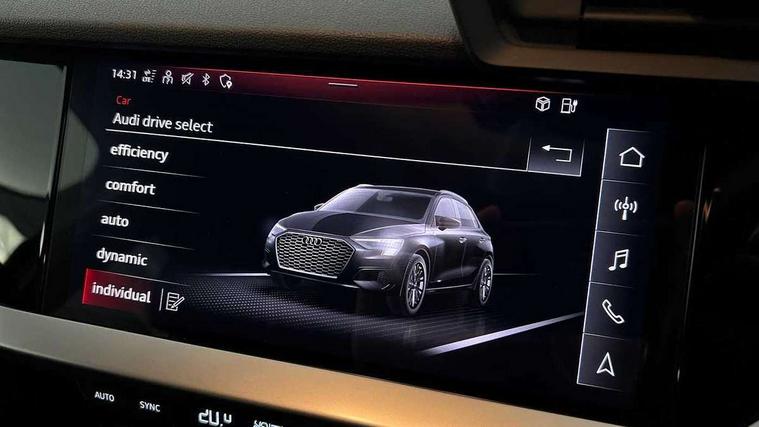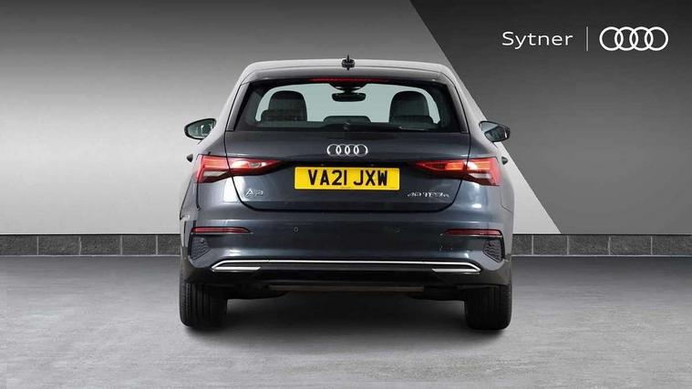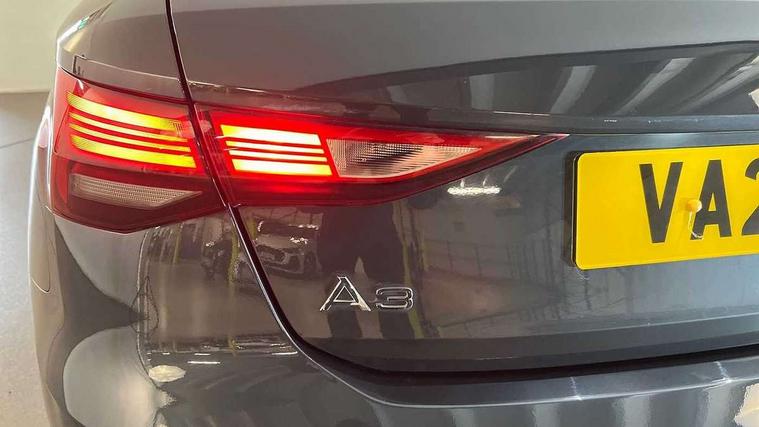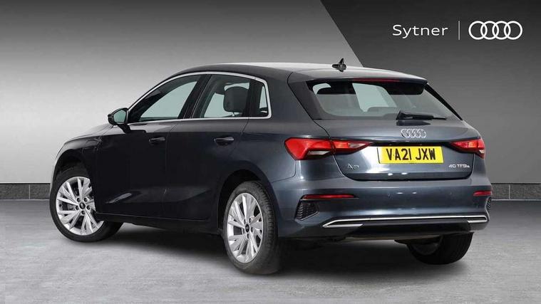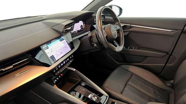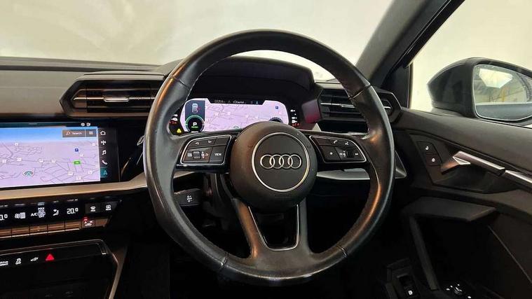 Audi connect emergency call and service, Audi drive select (Auto, Comfort, Dynamic, Efficiency and Individual), Audi smartphone interface, Audi Virtual Cockpit - 10.25" digital and colour instrument cluster, Automatic start/stop system with recuperation, Bluetooth interface, Collision avoidance assistant, Electromechanical power speed sensitive steering, Lane departure warning system, MMI Navigation Plus with high resolution 10.1" colour touch screen display, Service indicator, Trip computer, Voice control system with natural language interaction, 3 pin 10 amp domestic charging cable, Standard suspension, Type 2 mode 3 32 amp charging cable, Type 2 socket for AC charging, 2xUSB-C connection with data and charging functions, 6 passive loudspeakers, DAB Digital radio, Acoustic glass windscreen, Aluminium window trim, Auto dimming frameless rear view mirror, Body colour exterior mirrors, Body colour roof spoiler, Electrically adjustable/heated/folding/dimming door mirrors with kerb view includes integrated LED indications + kerb view function for passenger side, Front electric windows, LED daytime running lights, LED headlights and halogen rear lights, Light and rain sensors, Rear electric windows, Rear window, rear door windows and rear side windows in clear glass, Rear wiper, 12V socket and storage compartment in front centre console, 40/20/40 split folding rear seat bench with cupholder, Dual zone electronic climate control, Front and rear centre armrest, Front and rear headrests, Front door sill trims with aluminium inlay, Front/rear floor mats, Height and reach adjustable steering wheel, Interior lighting - Front and rear roof module including reading lights, glove compartment light and right hand side, Luggage compartment floor covering, Manual boot compartment lid, Manually adjustable front seats, Seat side bolsters, Steel grey cloth headlining, Tool kit, Twin leather upholstery, Aluminium interior elements pack - A3 Sportback, Sport styling pack - A3 Sportback, 3x3 point rear seat belts, Driver and front passenger airbag with passenger airbag deactivation, Electronic Stabilisation Control (ESC) including ABS, ASR and EDL, First aid kit with warning triangle and 2 safety vests, Front side airbags with head airbags and interaction airbag, Hill hold assist, Pre-sense front with pedestrian and cyclist detection, Seatbelt monitoring, Tyre pressure loss indicator, Anti theft alarm, Anti-theft wheel bolts, Electronically operated child lock, Immobiliser, Remote control central locking, Inlays with silk effect paint in platinum grey, Tyre repair kit,