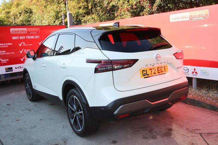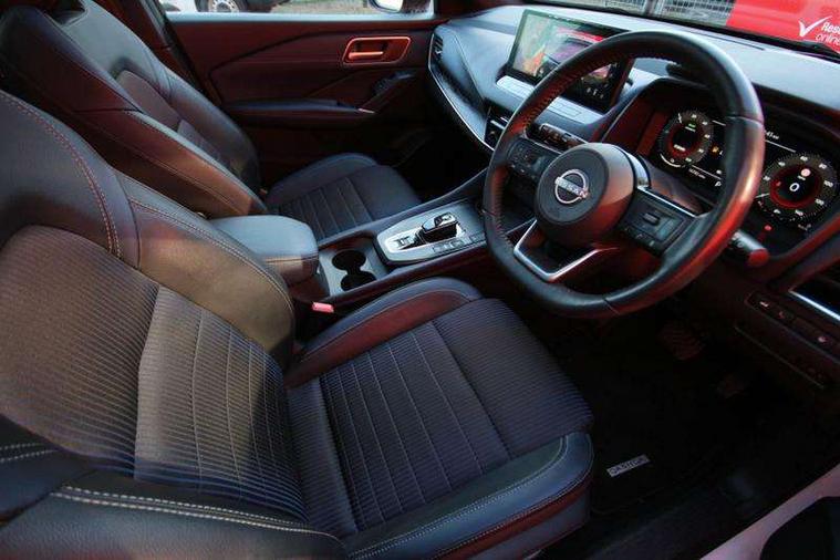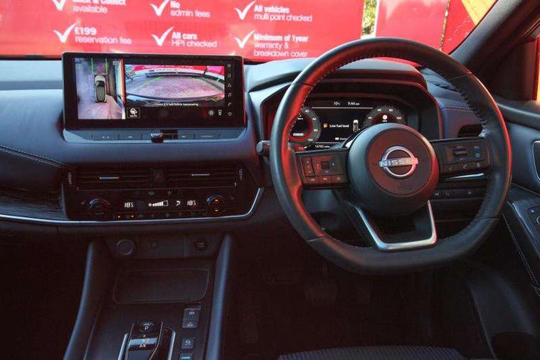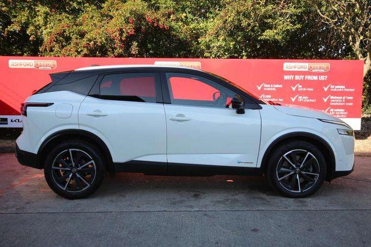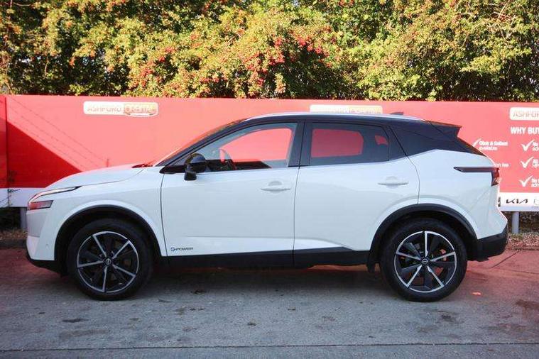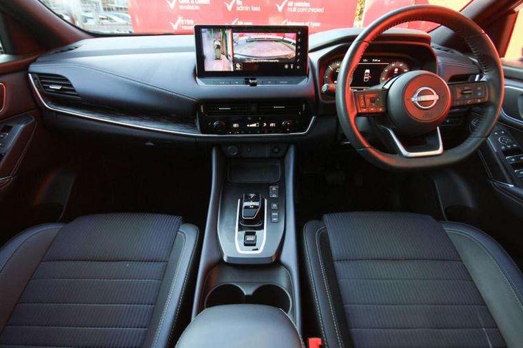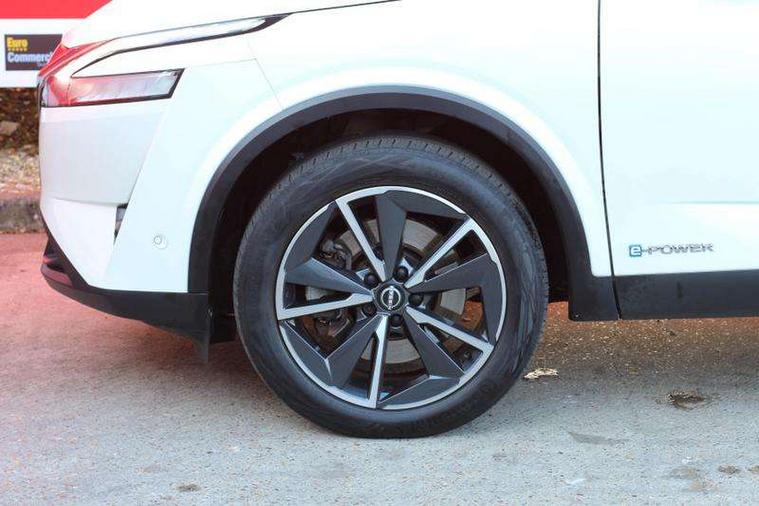 Advanced windscreen head up display, Android auto/Apple CarPlay (Wired), Blind spot warning, Drive modes (sport, normal, eco), Electric speed sensitive power steering, Emergency and breakdown call, Front and rear parking sensors, Full Digital 12.3" TFT Digital Combimeter, Google maps services - search, weather, 3D maps and Google street view, Hands free power tailgate, Idle stop/start system, Intelligent around view monitor, Intelligent Cruise control (ICC), Intelligent driver alert system, Intelligent forward collision warning, Intelligent lane intervention, Lane departure prevention, Lane departure warning system, Lane keep assist, Moving object detection, Nissan connect 12.3 inch touchscreen infotainment system, Nissan connect navigation, ProPILOT with Navi-Link, Push button starter, Rear cross traffic alert, Rear view camera, Remote control services - door locks, lights, horn and car locator, Telematics - notifications and connectivity services, TomTom live traffic services, Traffic sign recognition with legal speed adjustment, Trip computer, Virtual personal assistant and firmware over the air capability, Wireless apple carplay, Wireless charging pad, 6 speakers, AM/FM audio system with DAB, Bluetooth audio streaming, Front USB connections (Type-A and Type-C), Rear USB charging only ports (Type-A and Type-C), Auto dimming rear view mirror, Auto rear wiper when reversing, Automatic hazard signal with emergency stop signal, Body colour mirror caps, Body coloured door handles, Bodyside mouldings, Chrome side window finisher, Door handle with button, e-POWER badging, Electric auto folding door mirrors, Electrically adjustable and heated door mirrors with LED turn indicator, Follow me home headlights, Front and rear LED turning signals, Headlights auto levelling system, Intelligent auto headlights, LED daytime running lights, LED headlights with adaptive driving beam, LED rear lights, One touch front and rear electric windows with remote opening and closing, Partially body coloured bumpers, Privacy glass, Rear bumper with graphite insert, Rear reversing light (bulb lighting), Rear roof spoiler, Rear side wing doors, Rear styling plate, Shark fin antenna, Splash free rain sensing wipers, Super UV and infrared cut glass, Thermaclear heated windscreen, Three blink turn signal, 12v power socket in dashboard and luggage, 2x Rear coat hooks, 3 bench rear seats in 2nd row, 3 rear headrests, 4 folding assist grip, 6 Luggage hooks - 4 on floor, 2 on side, 60/40 split folding rear seat bench, Ambient lighting around centre console, Ambient lighting in front doors, Centre console storage tray, Chrome interior door handles, Cloth/syntech leather monoform upholstery, Dark black/blueish PVC wrapping, Dark headlining, Driver and front passenger sunvisors with illuminated vanity mirrors, Driver seat back pocket, Dual zone automatic climate control with pollen filter, e-POWER shifter, Electrically adjustable driver seat, Electrically adjustable lumbar support for driver, Front and rear door storage, Front centre console and armrest, Front cupholders x 2, Front door with bottle holders, Glovebox with light, Hard trunk cover, Heated front seats, Heated steering wheel, Height adjustable driver's seat, Height adjustable front headrests, Height adjustable passenger seat, Leather steering wheel, Luggage board system, Luggage space lighting, Manual lumbar support on passenger seat, Manually adjustable passenger (slide recline + lifter), Multifunction steering wheel, Passenger seat back pocket, Rear armrest with 2 cupholders, Rear door bottle holders, Single front passenger seat, Soft PVC kneepad, Steering wheel switches, Tilt/telescopic adjustable steering wheel, Two rear isofix child seat anchorage points with top tether, Welcome light and doors with console tray ambient lighting, Glass roof pack with roof rails - Qashqai, 3x3 point rear seatbelt pretensioners + load limiters, ABS with EBD and brake assist, Active brake limited slip, Auto hold function, Child locks on rear doors, Curtain and front side, far side airbags, Driver and passenger airbags, Driver, passenger and 2nd row rear seat belt reminder, Electronic parking brake, Front seatbelt pretensioners + load limiters, Height adjustable front seatbelts, Hill start assist, Intelligent blind spot intervention, Intelligent front emergency braking with pedestrian, cyclist recognition and junction assist, Intelligent rear automatic braking, Tyre pressure monitoring system, Vehicle dynamic control, Capless fuel filler, Engine immobiliser, Intelligent Key, Remote central door locking with deadlocking, Thatcham Cat.1 alarm, Interior instrumental panel C finisher, 19" Diamond cut alloy wheels, Tyre puncture repair kit,