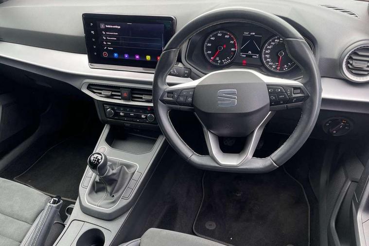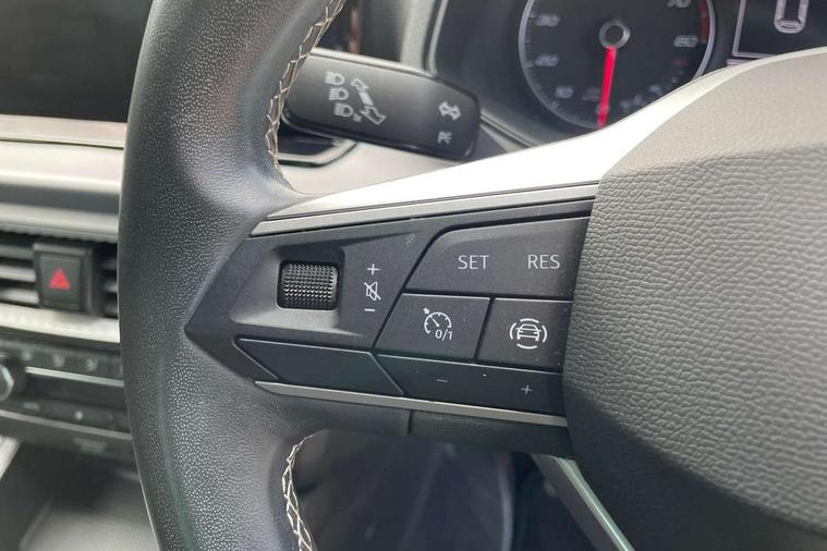 'Lights On' Reminder warning buzzer, 8" Digital cockpit, 9.2" touchscreen navigation system with type C USB socket, Voice control and DAB/AM/FM radio, Auto start and stop system, Bluetooth audio streaming with handsfree system, Digital clock, E-call, Full link smartphone integration with mirror link, wireless apple carplay, Google android auto + USB Type C cable for apple and android devices, Lane assist, Low fuel warning light, Outside temperature gauge, Power Steering, Rear parking sensor, Seat connect with safety, service, remote and online, SEAT logo boot release, Speed limiter, Trip computer, Comfort suspension, Auxiliary input socket, Radio/MP3 player, SD card slot, Steering wheel mounted controls, Anti theft roof antenna, Atom grey door mirrors, Auto dimming rear view mirror, Automatic rain sensing wipers, Body colour bumpers, Body colour door handles, Chrome window surround and upper grille surround, Dark tinted rear windows, Electric adjustable/heated/folding door mirrors, Electric front windows, Electric headlight adjustment, Electric rear windows, Front/rear fog lights, FULL LED automatic headlights with dynamic headlight range control, coming and leaving home, LED daytime running lights, LED tail lights, Rear side wing doors, Rear wiper, Third brake light, 3 seat bench in 2nd row, 60/40 split folding rear seat, Ambient interior lighting, Chrome detailing and black headlining, Comfort seats, Dual zone climate control with combination filter, Front centre armrest, Front courtesy lights, Front cupholders x 2, Front reading lights, Gear shift indicator, Glovebox, Height adjustable front and rear headrests (five), Height adjustable front seats, Height/reach adjust steering wheel, Illuminated air vent surrounds, Illuminated boot, Instrument lighting with brightness control, Isofix, Leather multifunction flat bottomed sports steering wheel, Microsuede cloth upholstery, Passenger sunvisor, Single front passenger seat, Storage pockets on back of front seats, Sunvisors with mirror and driver side card holder, 3 point seatbelts on all 3 rear seats, ABS, Active front headrests, Child locks on rear doors, Electronic stability control, Energy recovery system, Front assist forward collision warning and autonomous emergency braking, Front driver and passenger side airbags with curtain airbag and front passenger airbag deactivation, Hill hold control, Multi-Collision braking, Seat belt reminder for front and rear seats, Tiredness recognition system, Tyre pressure monitoring system, Electronic engine immobiliser, KESSY Keyless entry and go, Locking wheel bolts, Perimeter alarm and interior monitoring with backup horn and tow away protection, Remote central locking + deadlocks, 17" Dynamic machined alloy wheels in Nuclear grey,