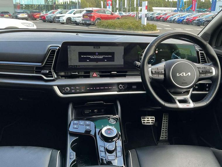 12.3" Display with navigation, 12.3" supervision colour cluster display, 360 degree around view monitor, Apple car play/Android Auto with voice control, Blind spot collision avoidance assist, Blind spot view monitor, Drive mode selector, E-call, Forward collision avoidance assist (FCA) - city/pedestrian/cyclist/junction covering, Front and rear parking sensors, Highway Driving Assist (HDA), Intelligent speed limit assist, Kia Connect (UVO), Lane Following Assist (LFA), Lane keep assist, Low washer fluid warning, Parking collision avoidance assist (PCA), Remote smart parking assist, Reversing camera system integrated into centre fascia screen, Smart cruise control with stop and go functionality, Smart power tailgate, Speed sensitive power steering, Trip computer, Windscreen washer level indicator, Wireless Smartphone charger, Intelligent Stop and Go, Bluetooth audio streaming, DAB Radio with MP3, Harman Kardon premium sound system, Rear USB port, Steering wheel mounted audio controls, USB C type charging ports on centre console, USB C type charging ports on side of front seats, USB port for connection of a media device, All round electric windows with drivers and front passenger auto up/down function, Automatic headlight control system, Automatic window defogger, Backlite glass heated with timer, Body colour and black bumper with silver accents, Body colour exterior door handles, Body colour radiator upper garnish and door garnish, Dual LED adaptive headlamps, Electric panoramic glass sunroof (Electric one touch with safety function), Electrically adjustable/heated/folding door mirrors with LED indicators, Front and rear chrome skid plates, Gloss black door mirrors, Gloss black radiator grille, Gloss black side sill and wheel arch body mouldings, Glossy black roof rack, High beam assist, Interior electrochromic mirror, LED daytime running lights, LED front fog lamps, LED High mounted stop light, LED rear combination lamp, Rain sensing wipers with aero blades, Rear fog lamp, Rear privacy glass, Rear side wing doors, Rear spoiler, Rear wiper, Satin finished beltline, Trailer stability assist, 10 way driver/8 way passenger electrically power adjustable seats, 12V power socket in front centre fascia and luggage compartment, 3 seat bench in 2nd row, 3 x passenger assist grips, 40/20/40 split folding rear seat, All-round height adjustable headrests, Ambient lighting, Black headlining, Centre console storage box, Cupholders in rear armrest, D-Shaped sports leather steering wheel and perforated inserts with GT-Line logo, Door courtesy lamps, Drink holder at centre armrest, Driver and front passenger side sunvisors with illuminated vanity mirrors, Driver seat memory function, Drivers seat power lumbar support, Front and rear door storage, Front seat and rear pockets, Front/rear centre armrests, Gear shift indicator, Glovebox illumination, Heated front and outer rear seats, Heated steering wheel, Interior door lock/unlock function, ISOFIX Child seat top tethers and anchor fixings outer rear seats, LED interior personal lamp, LED lighting in overhead console, Luggage area LED light, Luggage area load cover, Luggage net with hooks, Metal paint interior door handles, Paddle shift controls, Rear coat hooks, Single front passenger seat, Sports pedals, Suede leather upholstery, Three zone climate control, Tilt/telescopic adjustable steering wheel, Ventilated front seats, Ventilation ducts to rear compartment, Active front headrests, All round 3-point seatbelts, Anti-lock braking system (ABS), Dual front side airbags, Dual horn, Electronic parking brake, Electronic stability control with downhill brake control, Front passenger airbag cut-off switch, Front seatbelt pretensioners + load limiters, Height adjustable front seatbelts, Hill start assist control (HAC), Impact sensing auto door unlocking, Multi collision brake assist, Rear door child safety locks, Rear seat alert system, Traction control, Twin curtain airbags, Twin front airbags, Tyre pressure monitoring system, Advanced anti-theft system including immobiliser and alarm, Door deadlocks, Engine Start/Stop Button with Smart Entry System, Locking wheel nuts, Speed sensitive auto door locking, Visible vehicle identification number, Aluminium pattern finish centre fascia and door garnish, 18" Alloy wheels, Michelin tyres, Tyre mobility kit,
